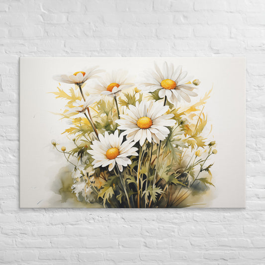 Daisy Dreams Watercolor Painting - Digital Floral Artwork Canvas Wall Art Print