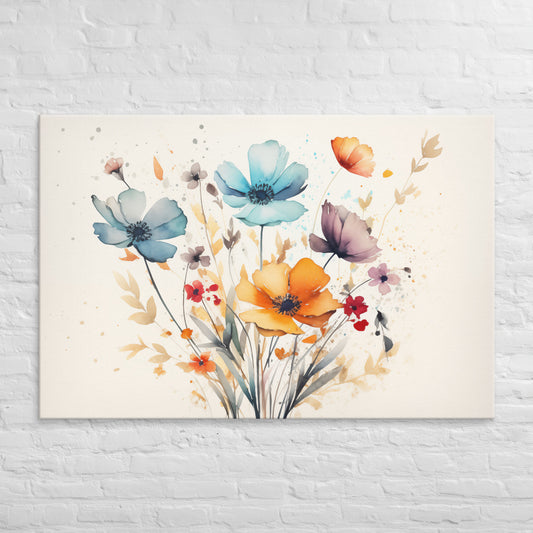 Floral Still Life Colorful Bouquet Watercolor Painting - Digital Artwork Canvas Wall Art Print