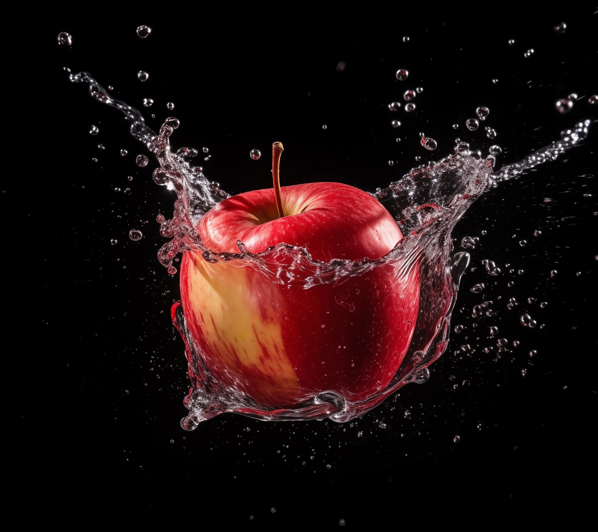 Invigorate your living spaces with the dynamic vibrancy of "Apple Immersion." This digitally created artwork captures the exhilarating moment a ripe, red apple plunges into water, sending a cascade of droplets dancing through the air. The contrasting colors and textures—the smooth, glistening skin of the apple against the dynamic, translucent water—create a visual symphony that is both refreshing and captivating. The image evokes a sense of movement and vitality, as if the apple has just broken the surface, leaving behind a mesmerizing splash that seems to defy gravity.