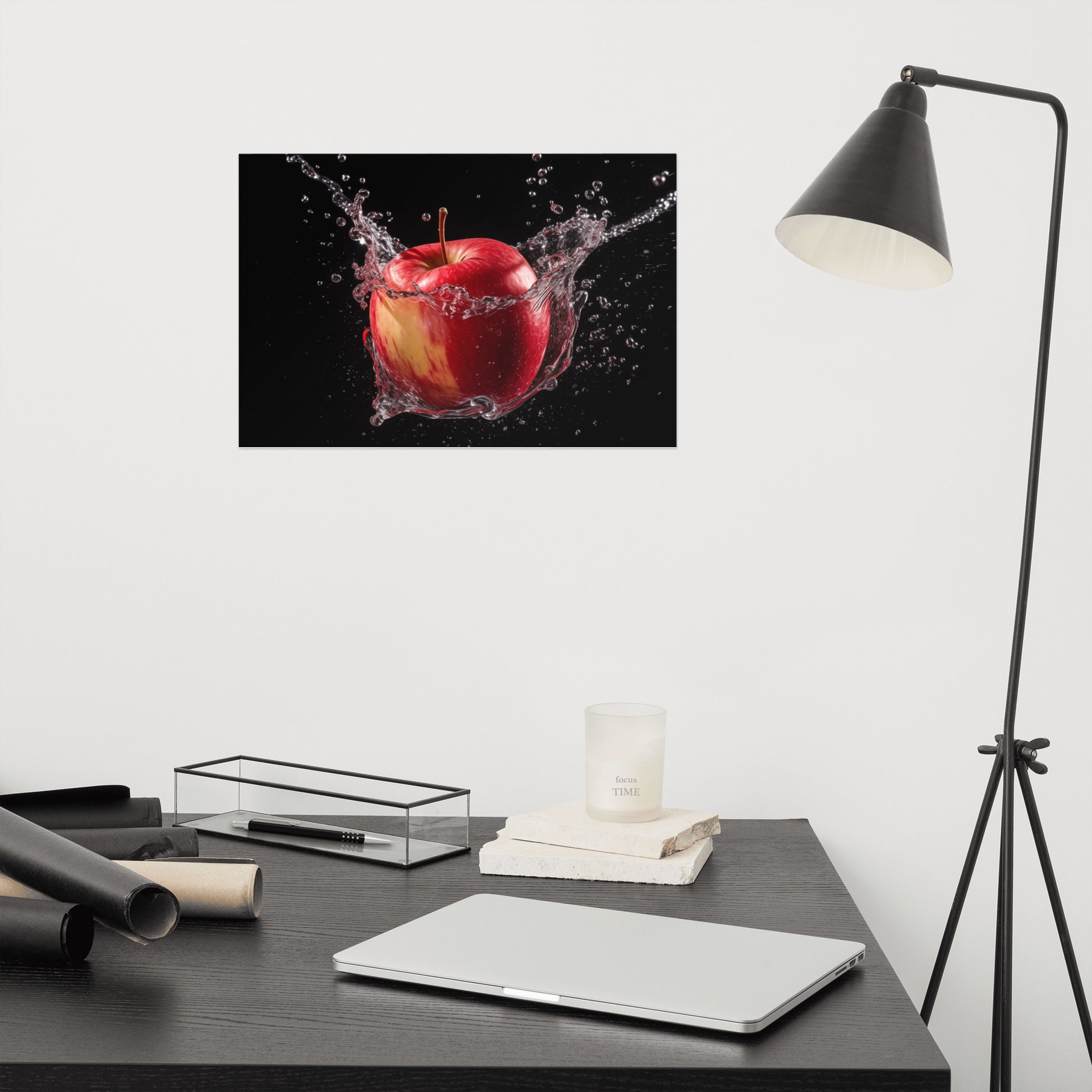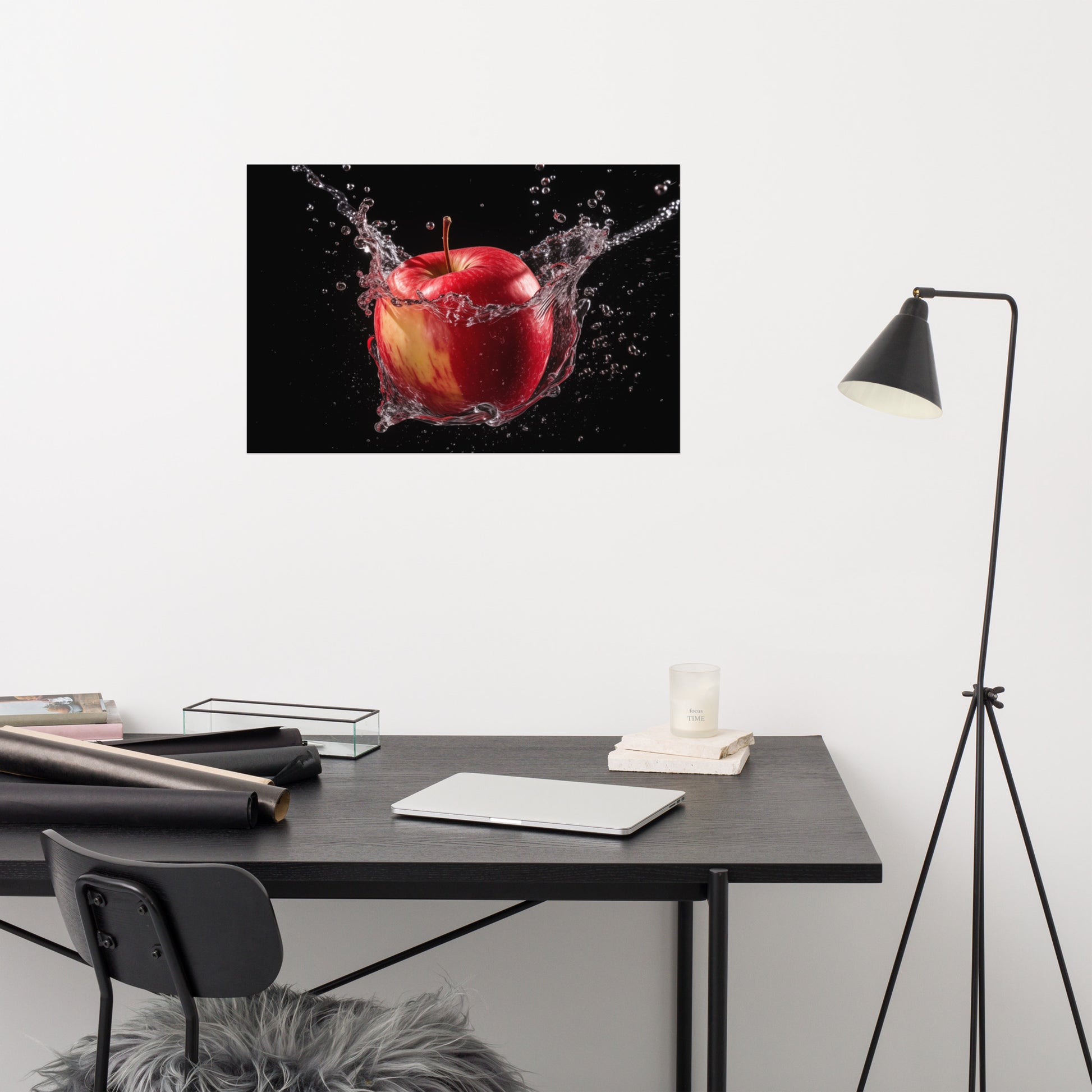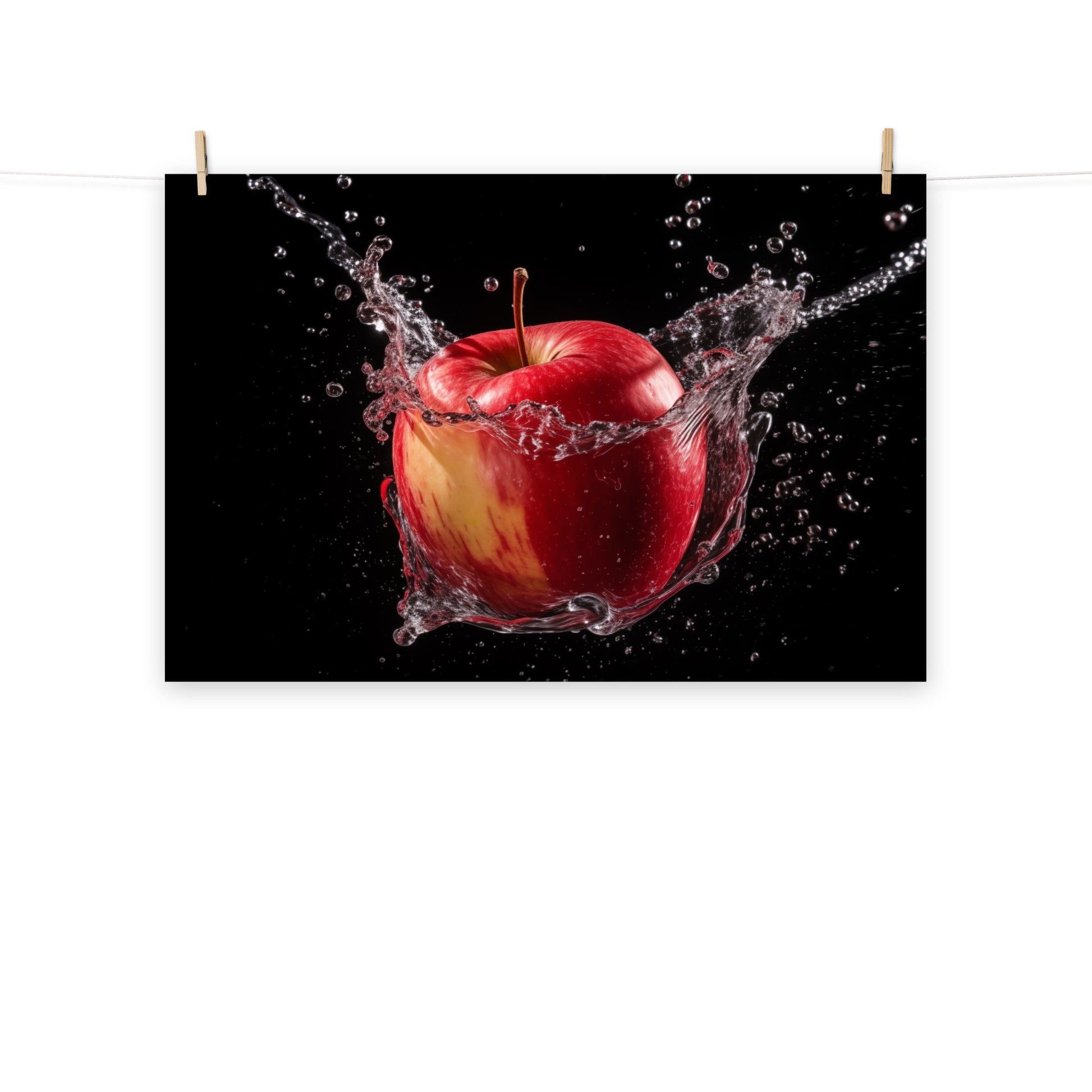 Printed on high-quality photo paper with premium inks, this artwork captures the exquisite detail of each water droplet and the vibrant hues of the apple, ensuring a lasting impression that will brighten any space. The crisp resolution and vivid colors will make it feel as though the apple is about to splash right out of the frame.