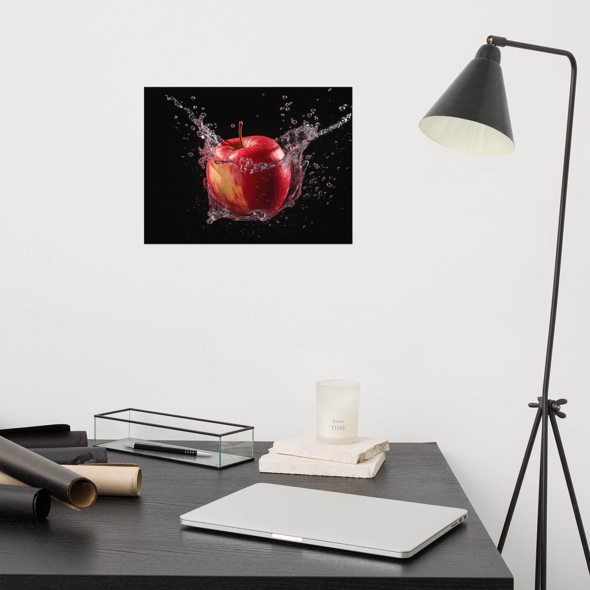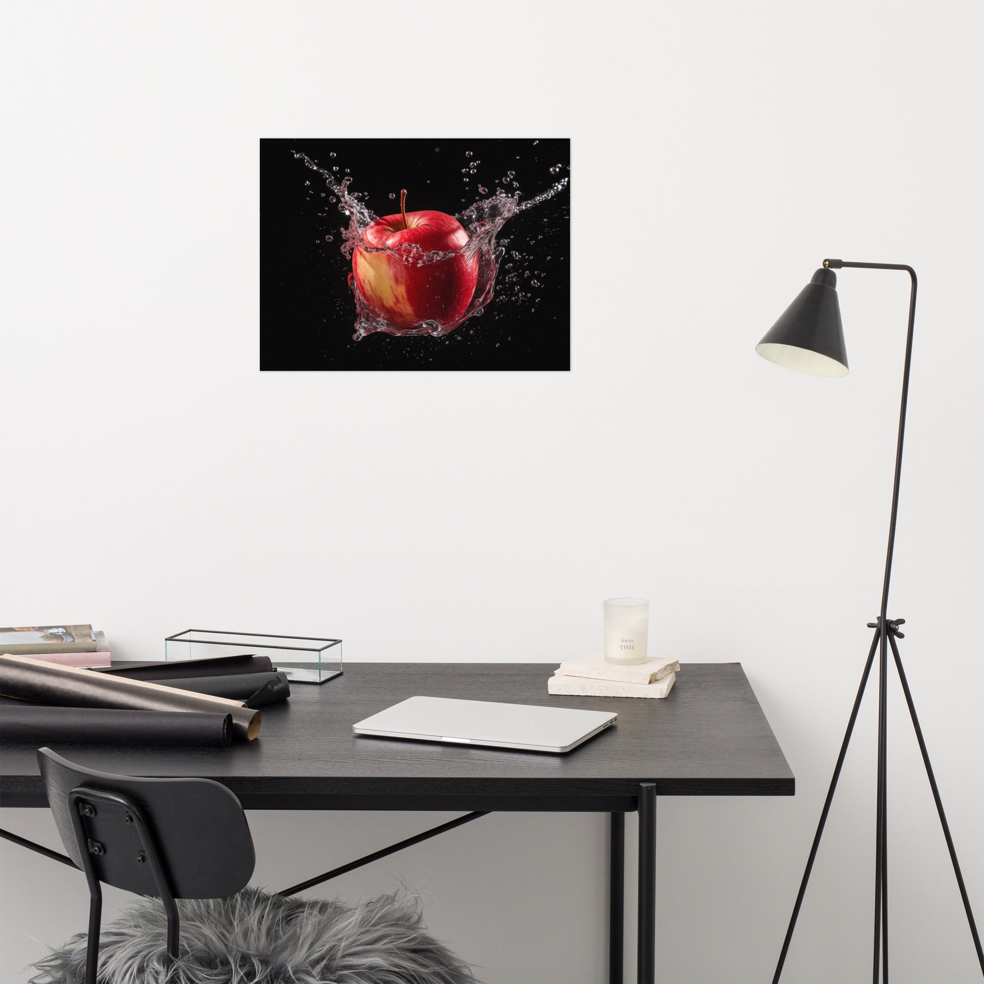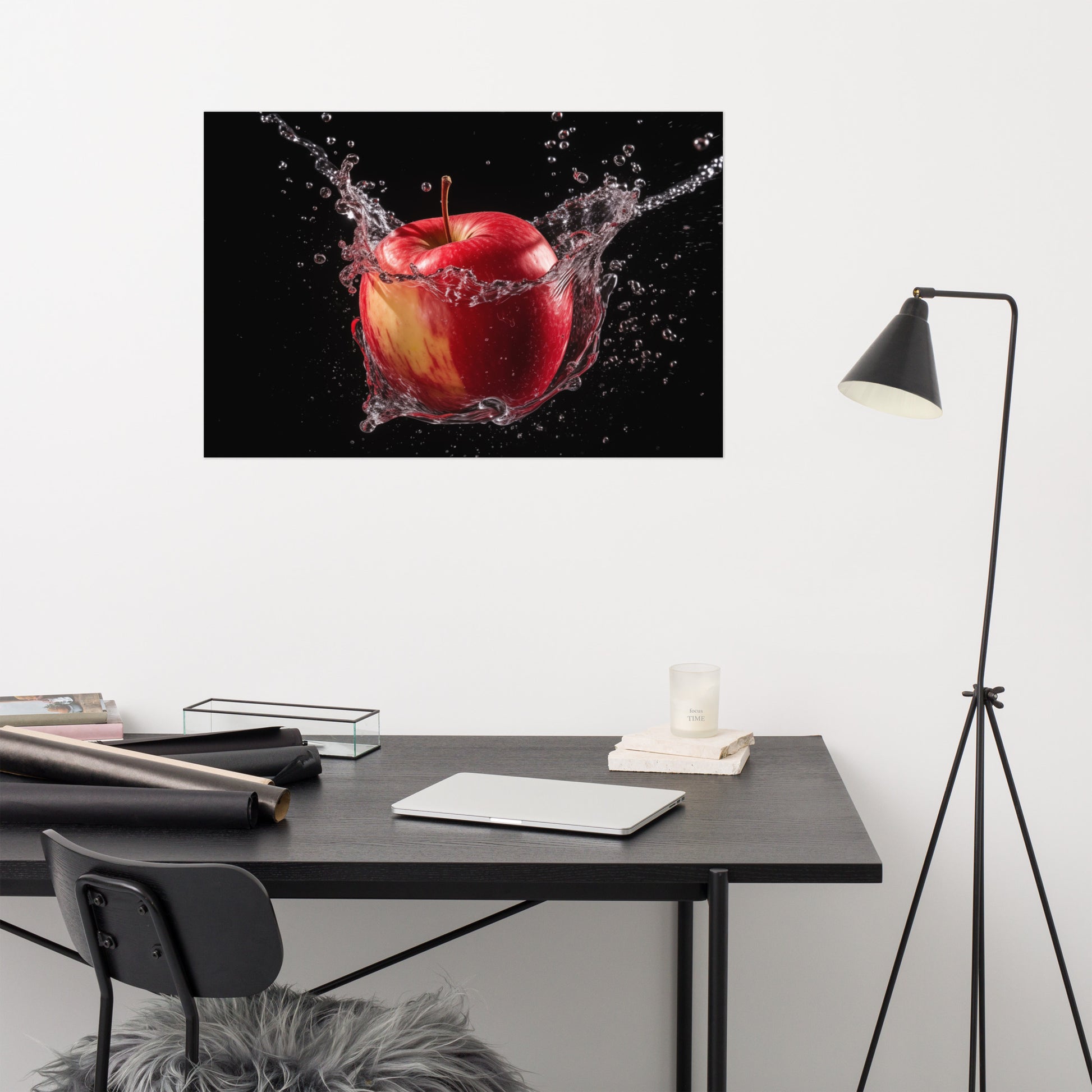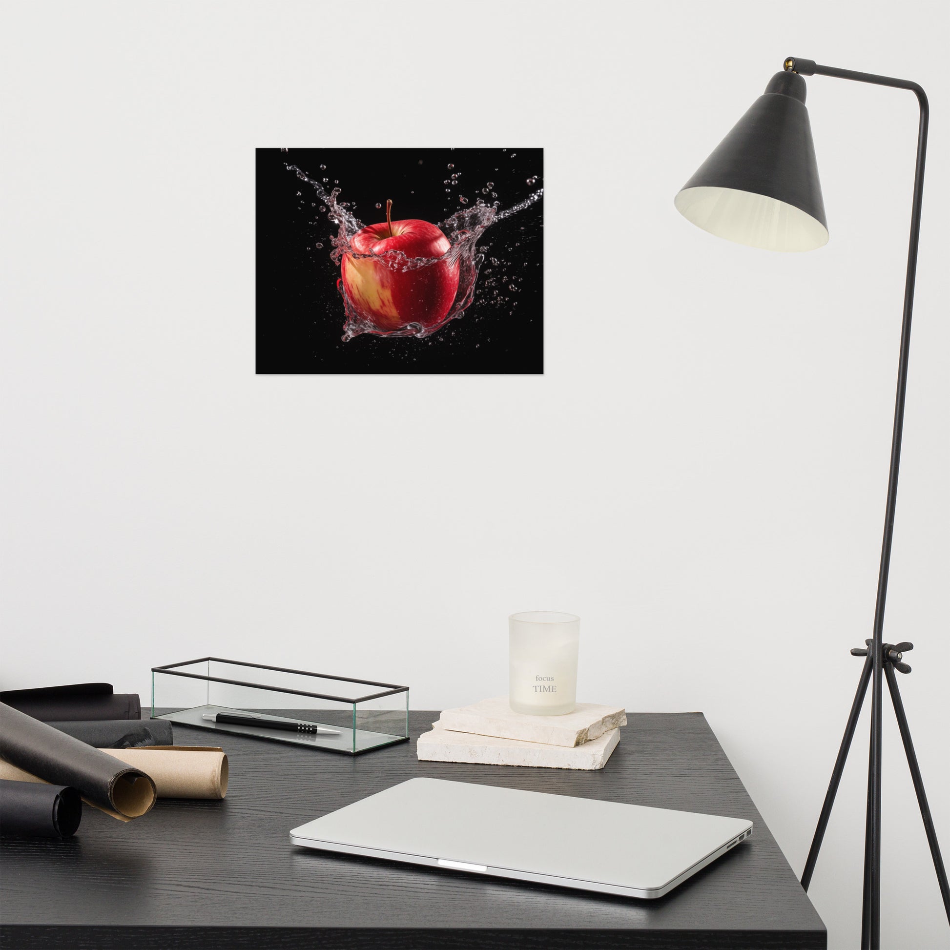Printed on high-quality photo paper with premium inks, this artwork captures the exquisite detail of each water droplet and the vibrant hues of the apple, ensuring a lasting impression that will brighten any space. The crisp resolution and vivid colors will make it feel as though the apple is about to splash right out of the frame.