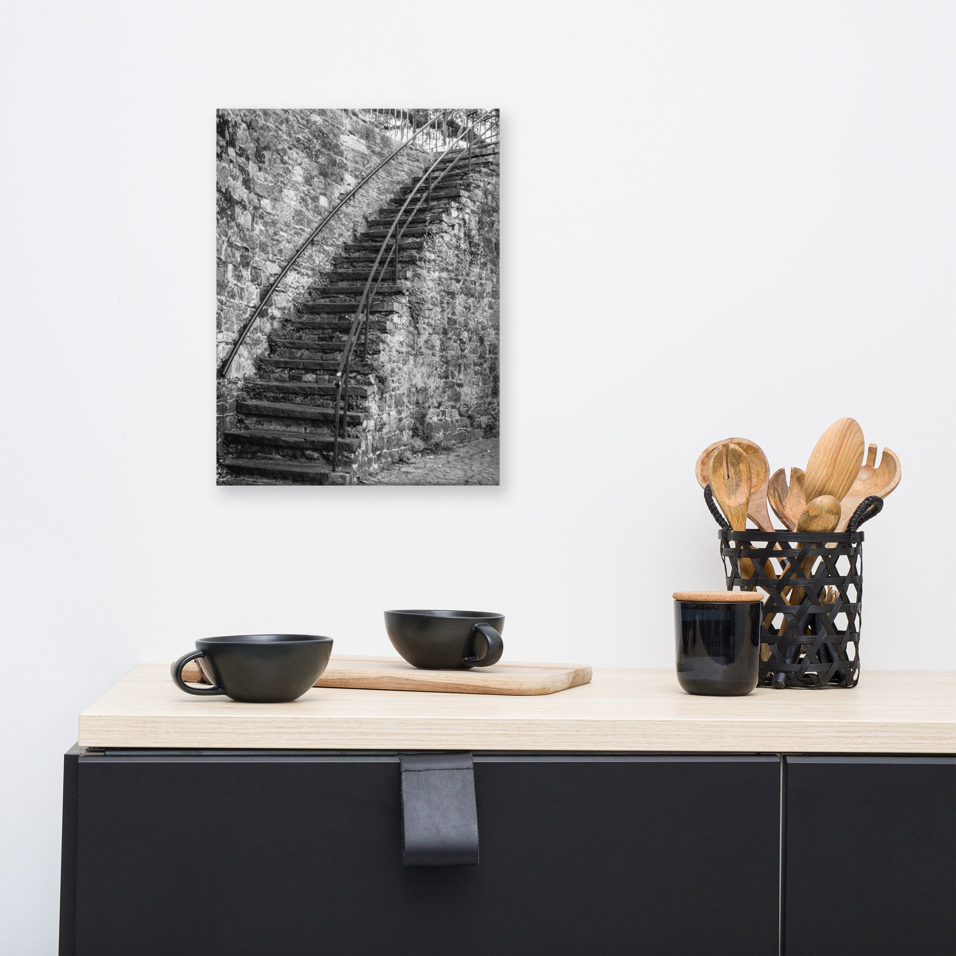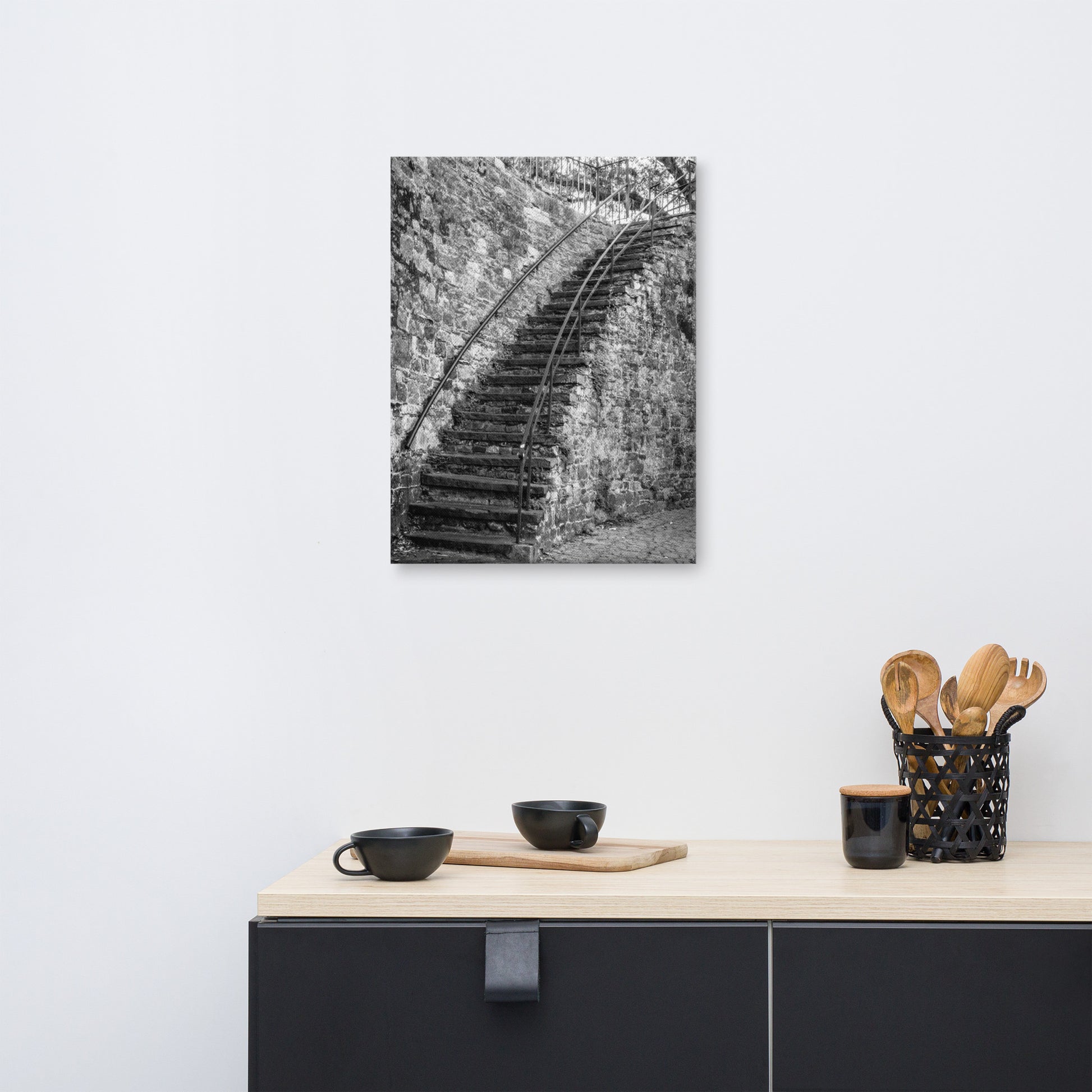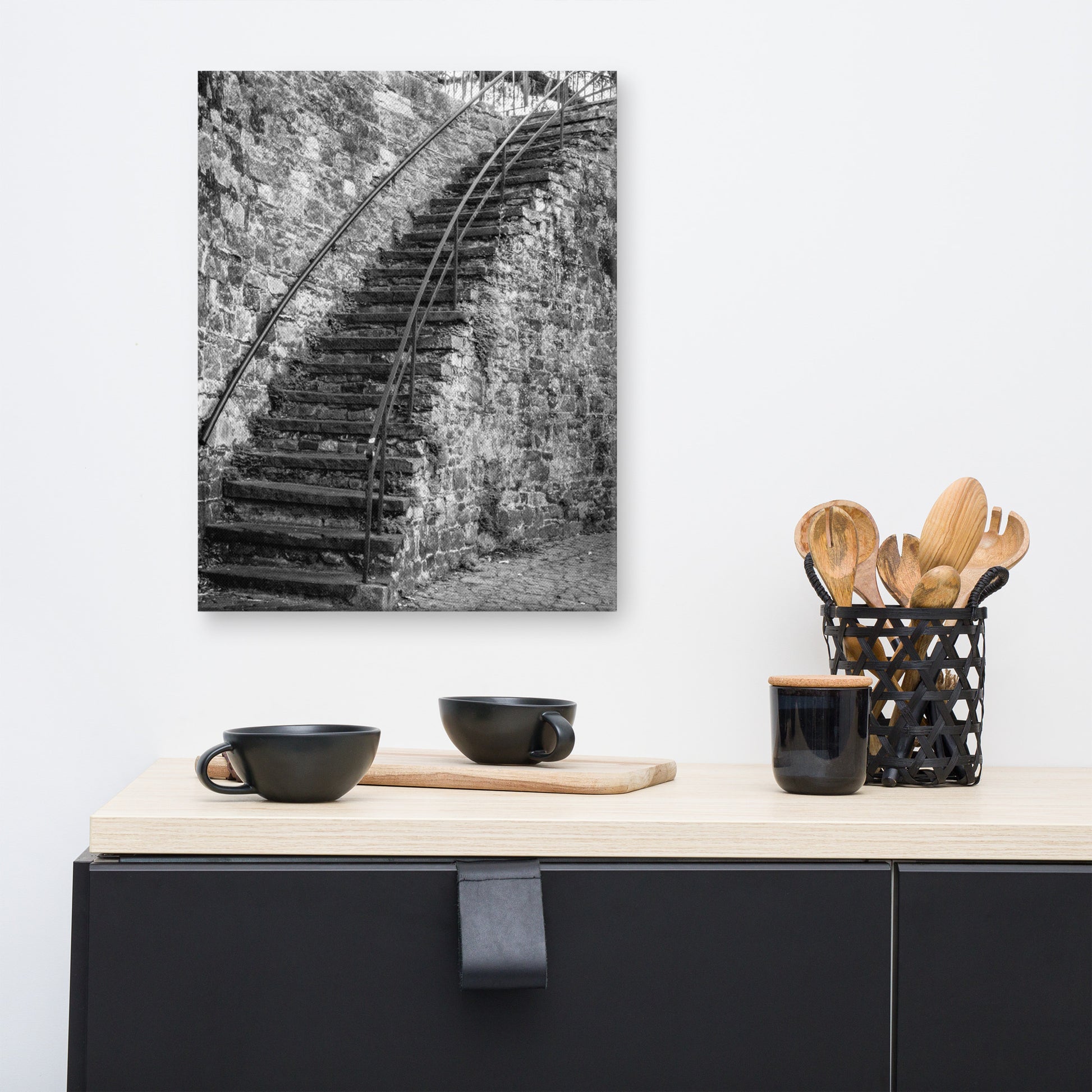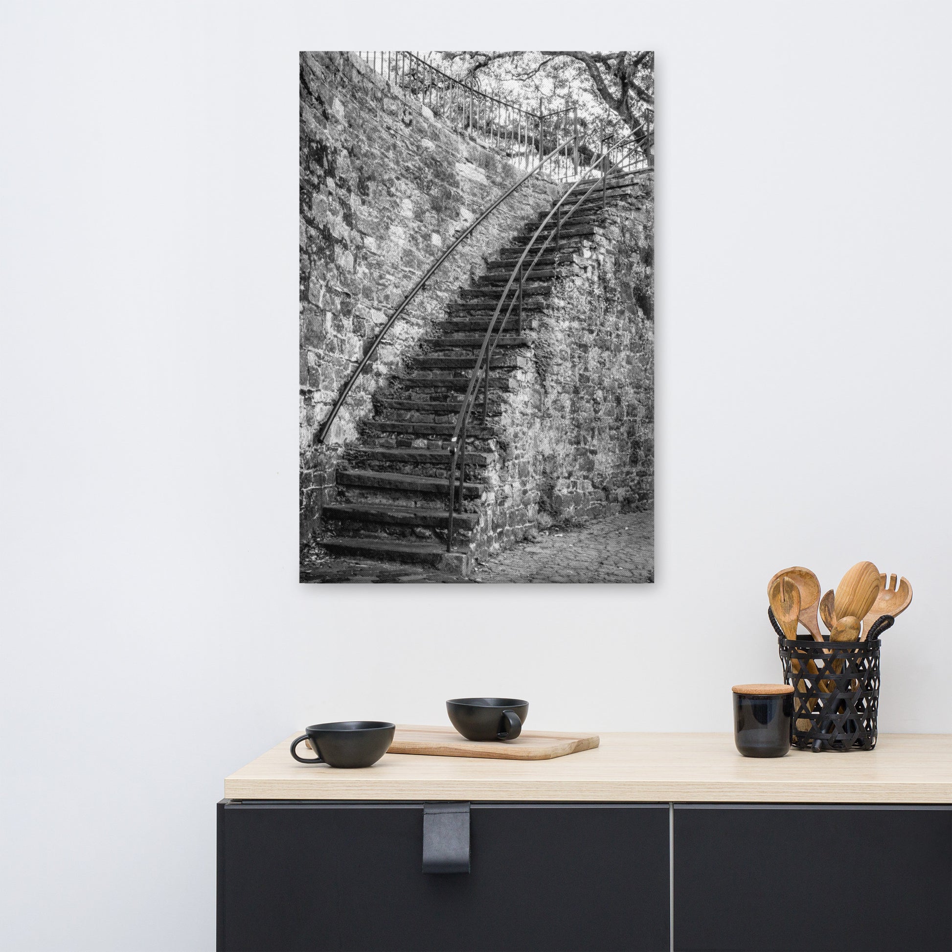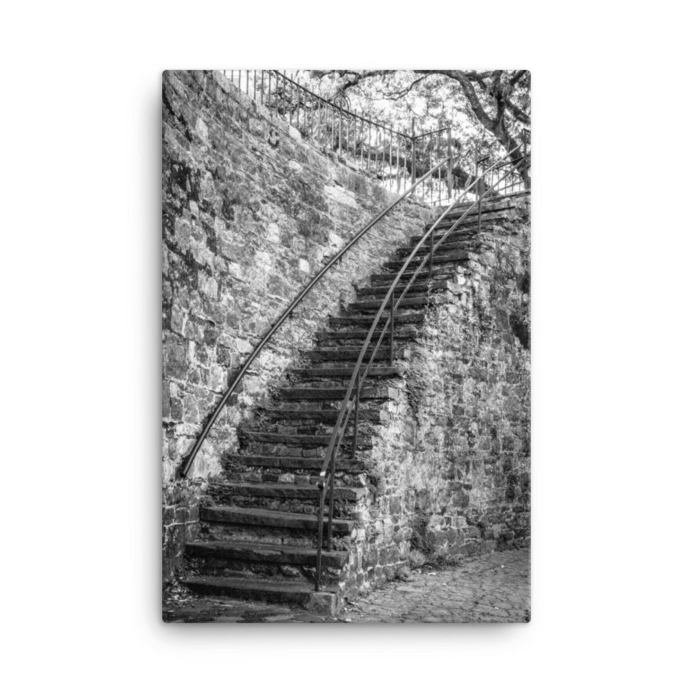 Black and White Old Stone Stairs River Street Savannah GA Canvas Wall Art Prints