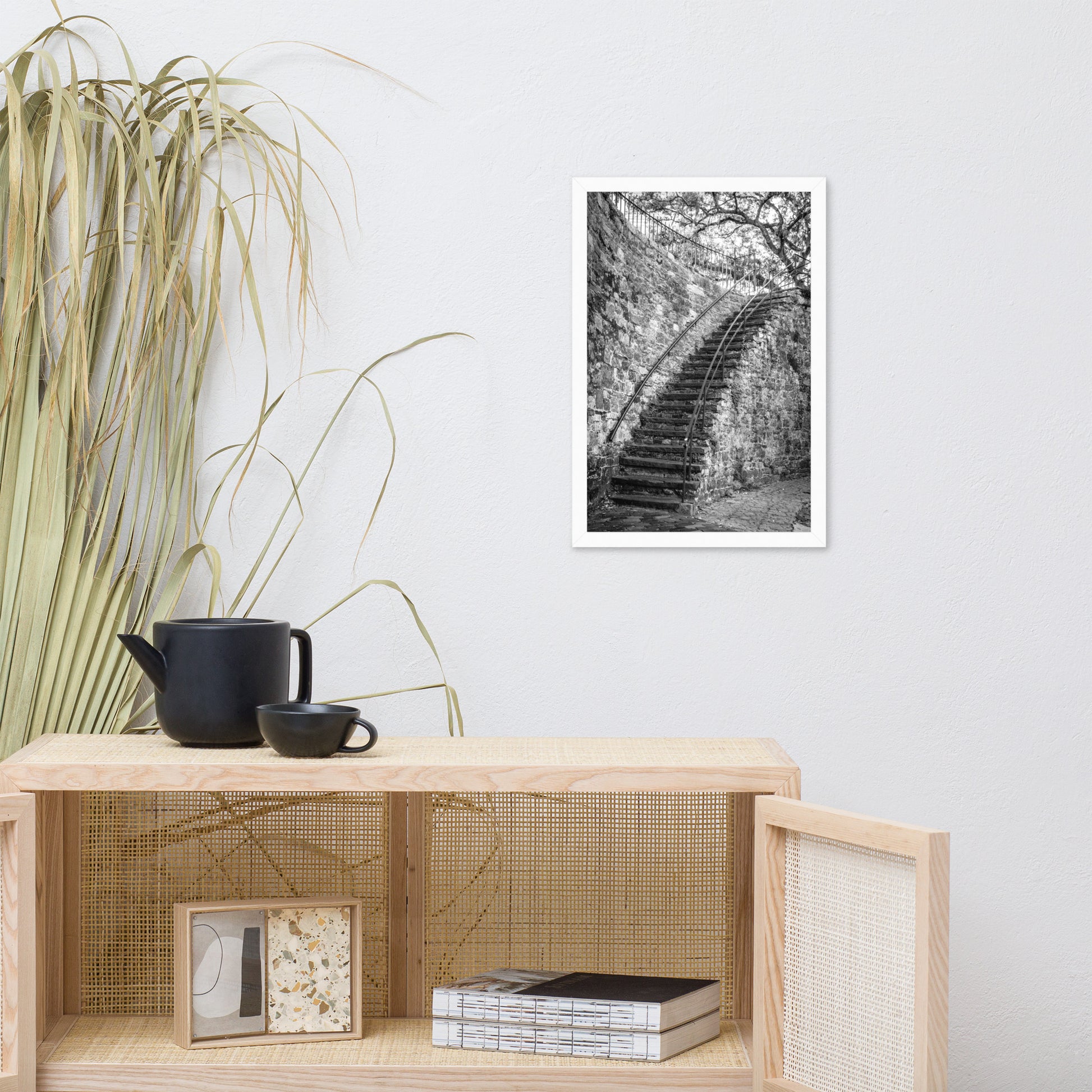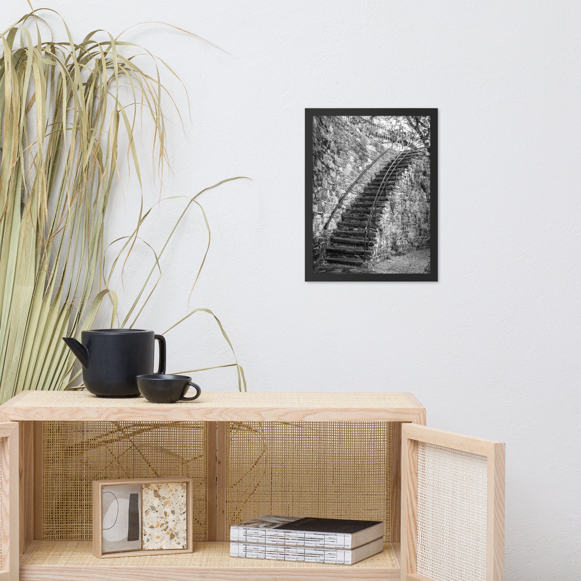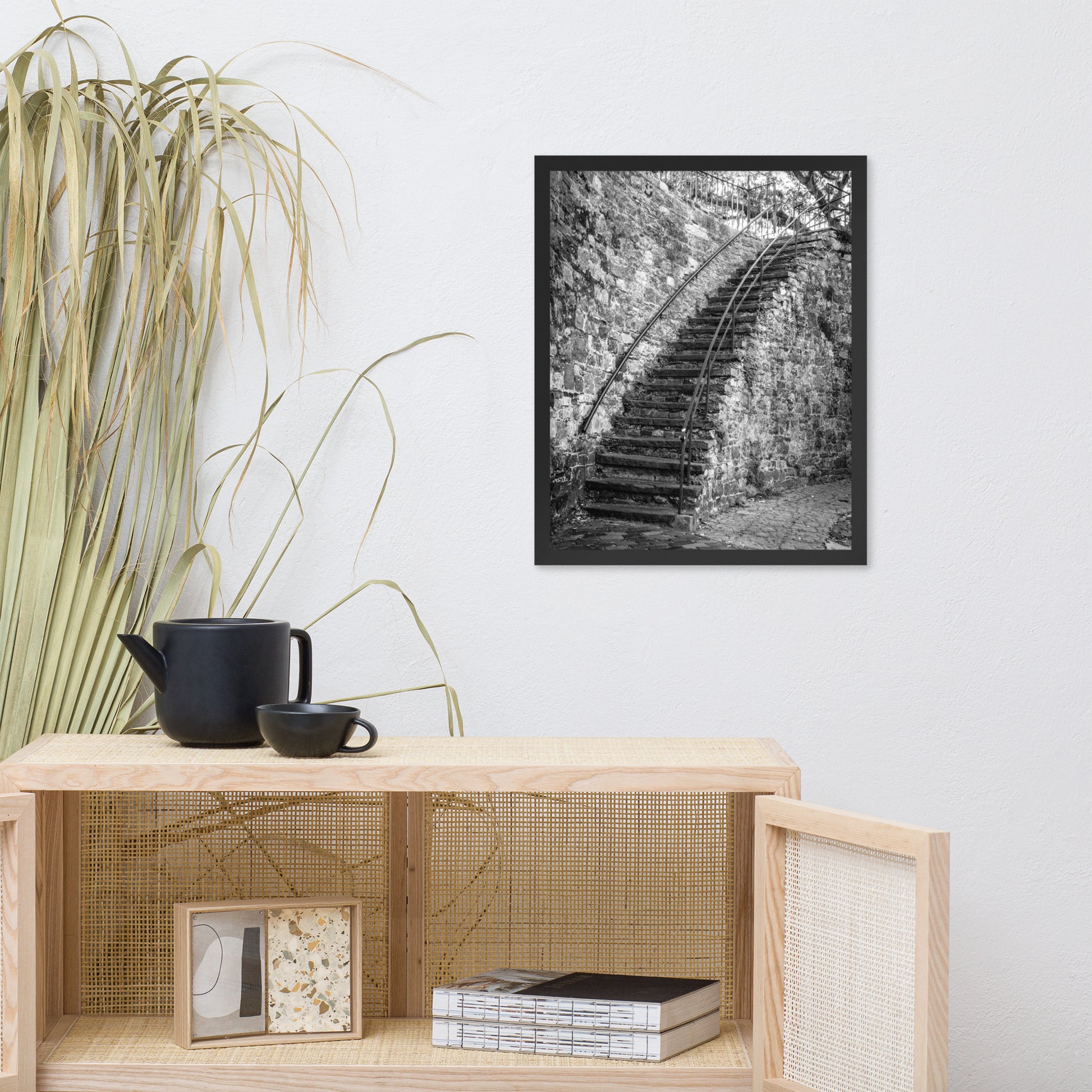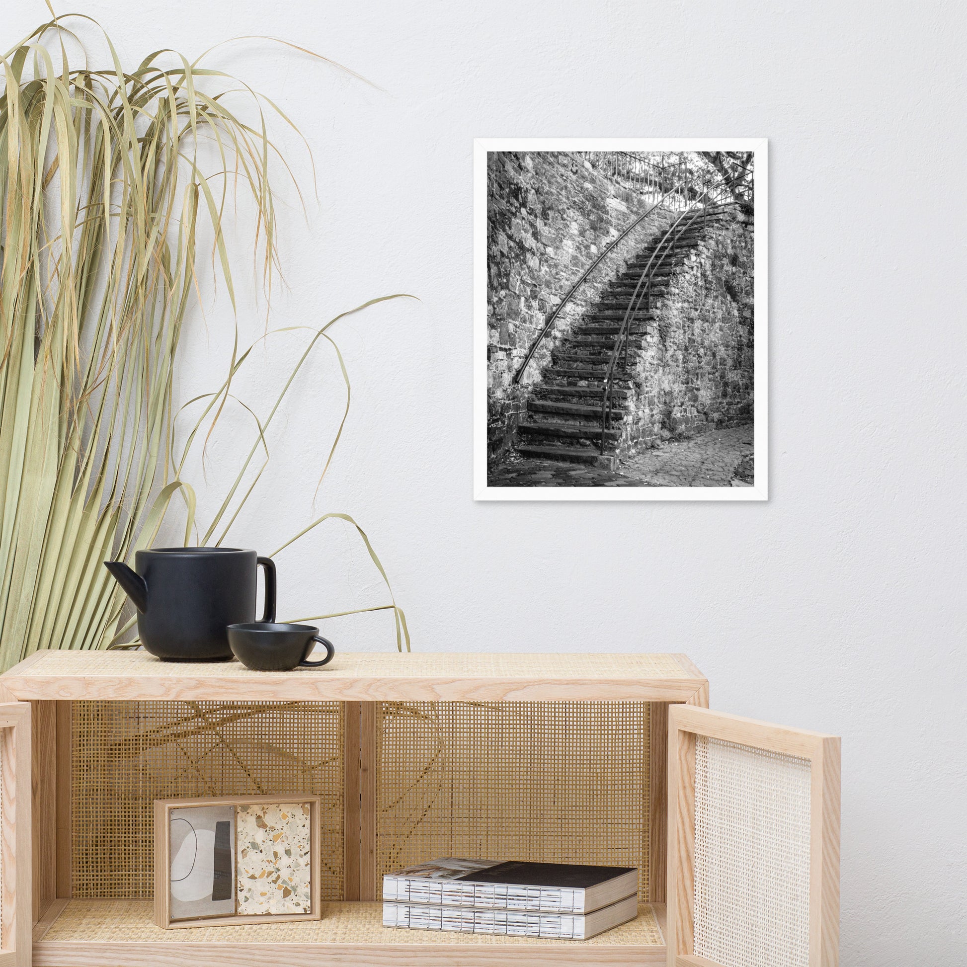 Black and White Photography Wall Art: Old Stone Staircase River Street - Architectural / Industrial / Modern / Urban / Street Photo - Framed Print - Artwork