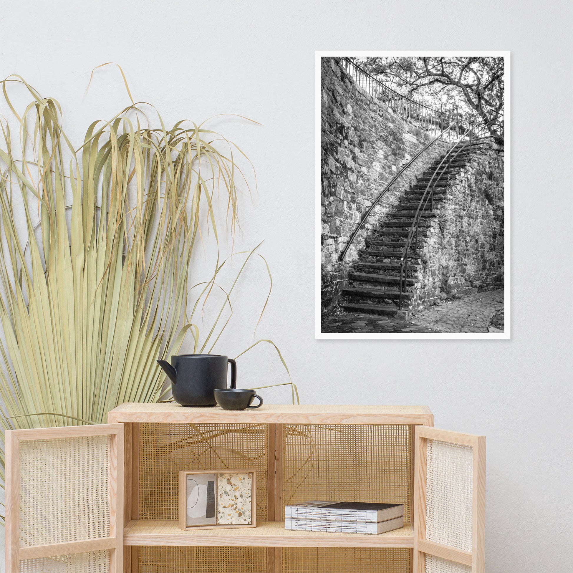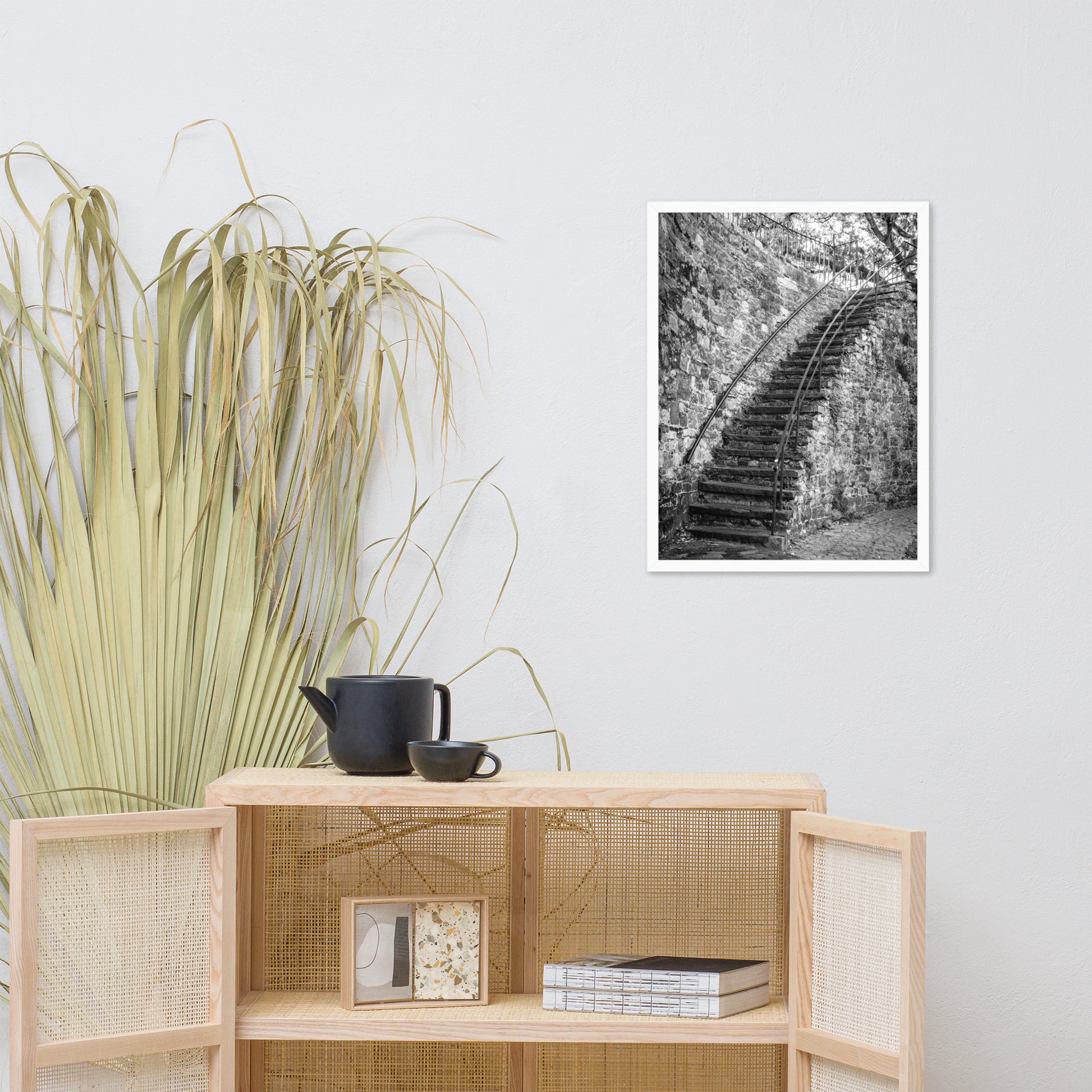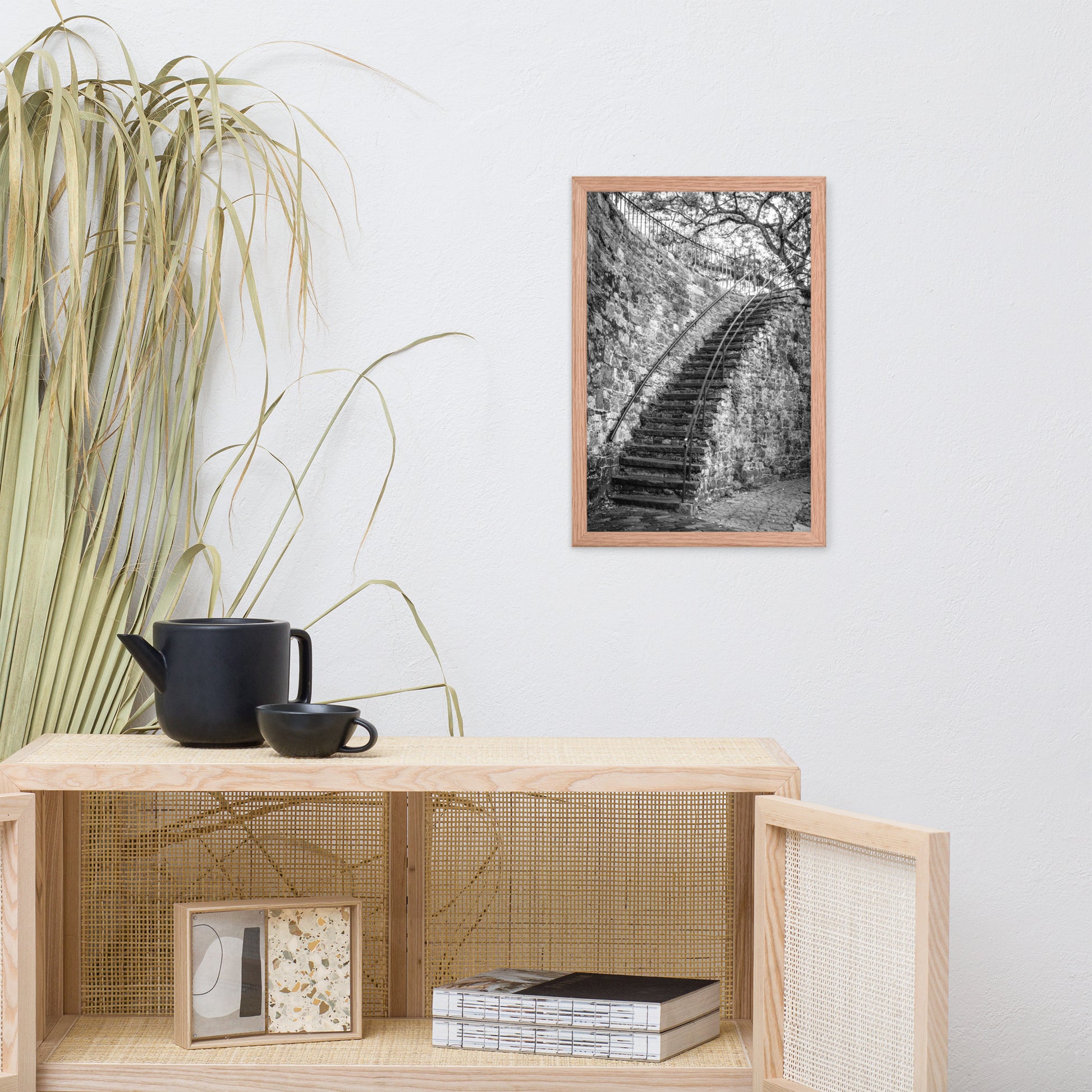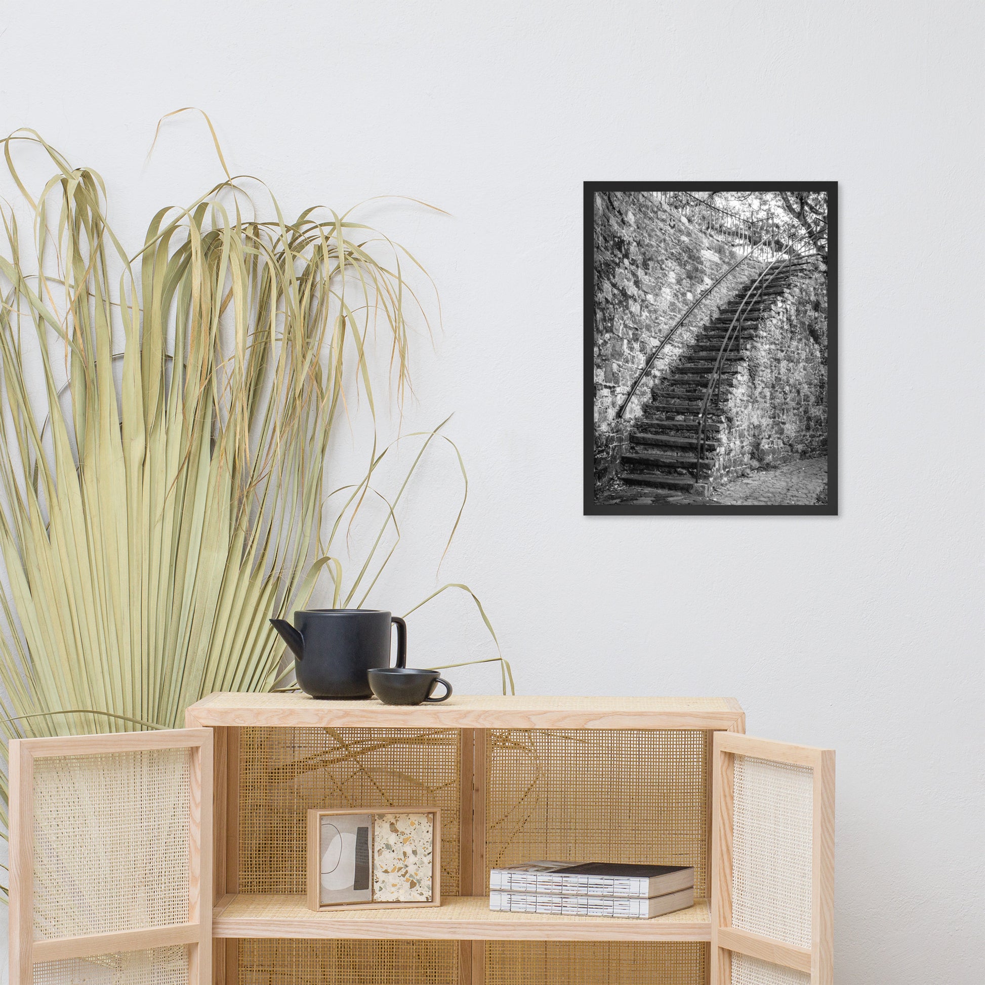 Black and White Photography Wall Art: Old Stone Staircase River Street - Architectural / Industrial / Modern / Urban / Street Photo - Framed Print - Artwork