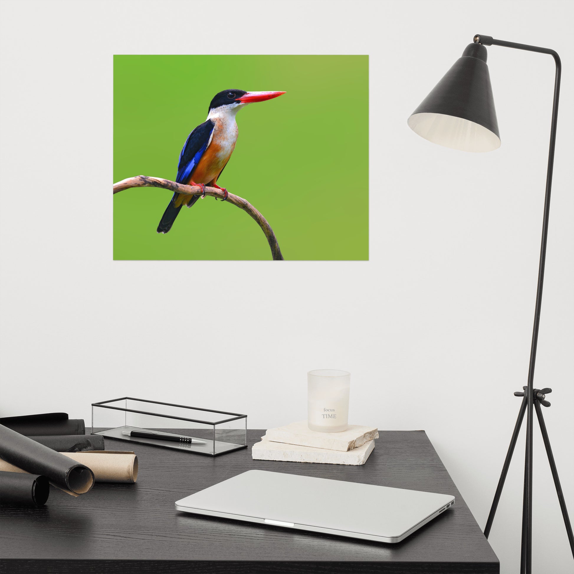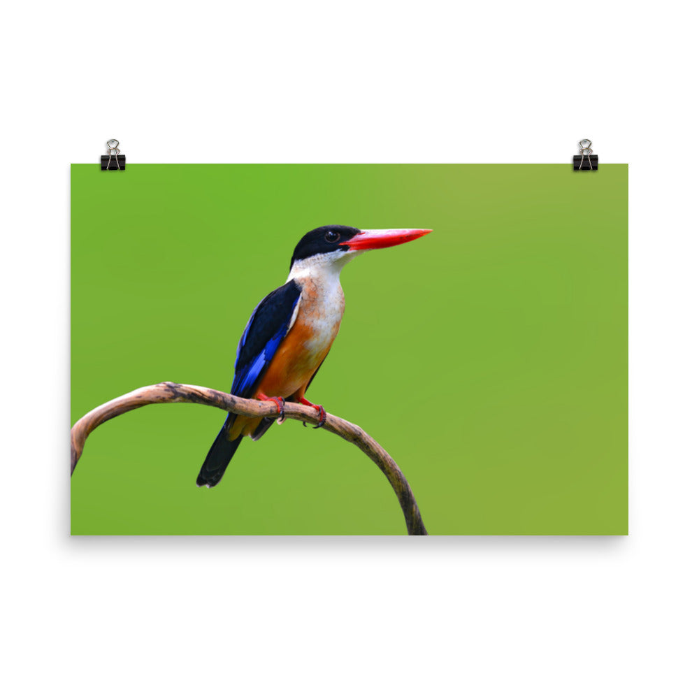 Black Capped Kingfisher Bird on Perch Loose Wall Art Print