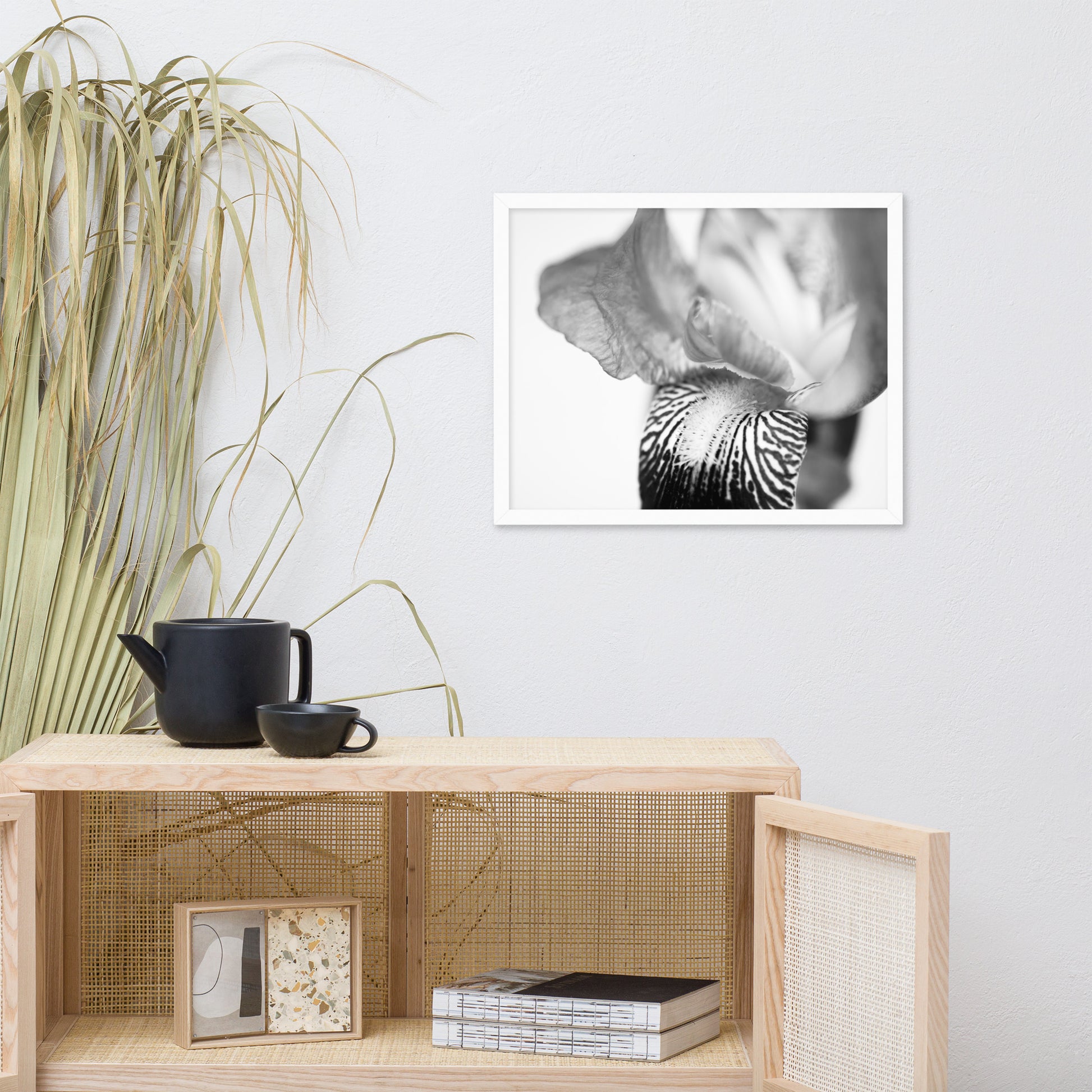Bold Iris on White Black and White Floral Nature Photo Framed Wall Art Print