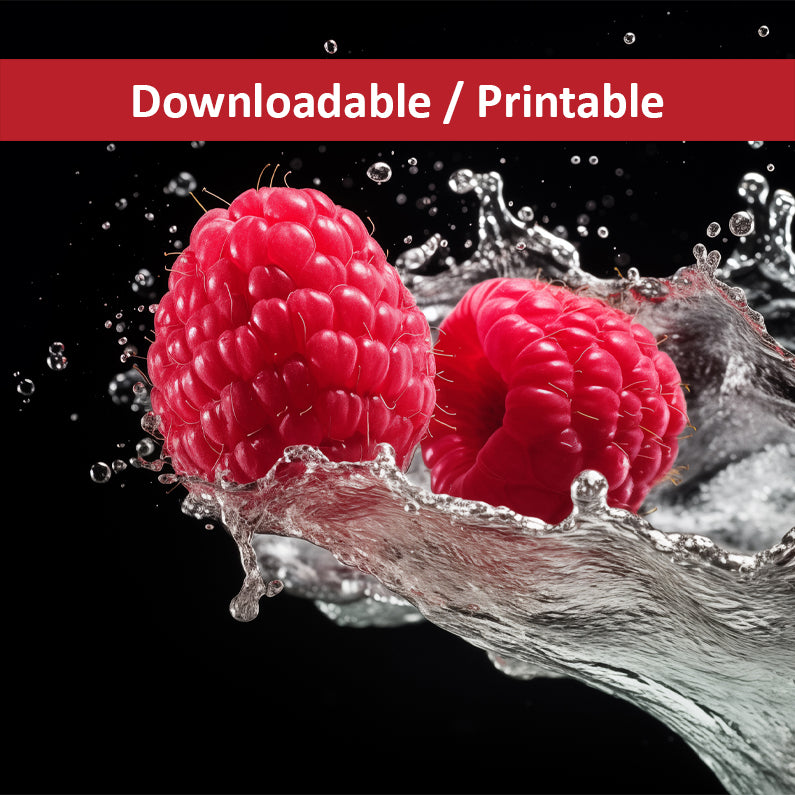 Burst of Freshness Raspberries in Water Photorealistic Digital Painting DIY Wall Decor Instant Download Print - Printable