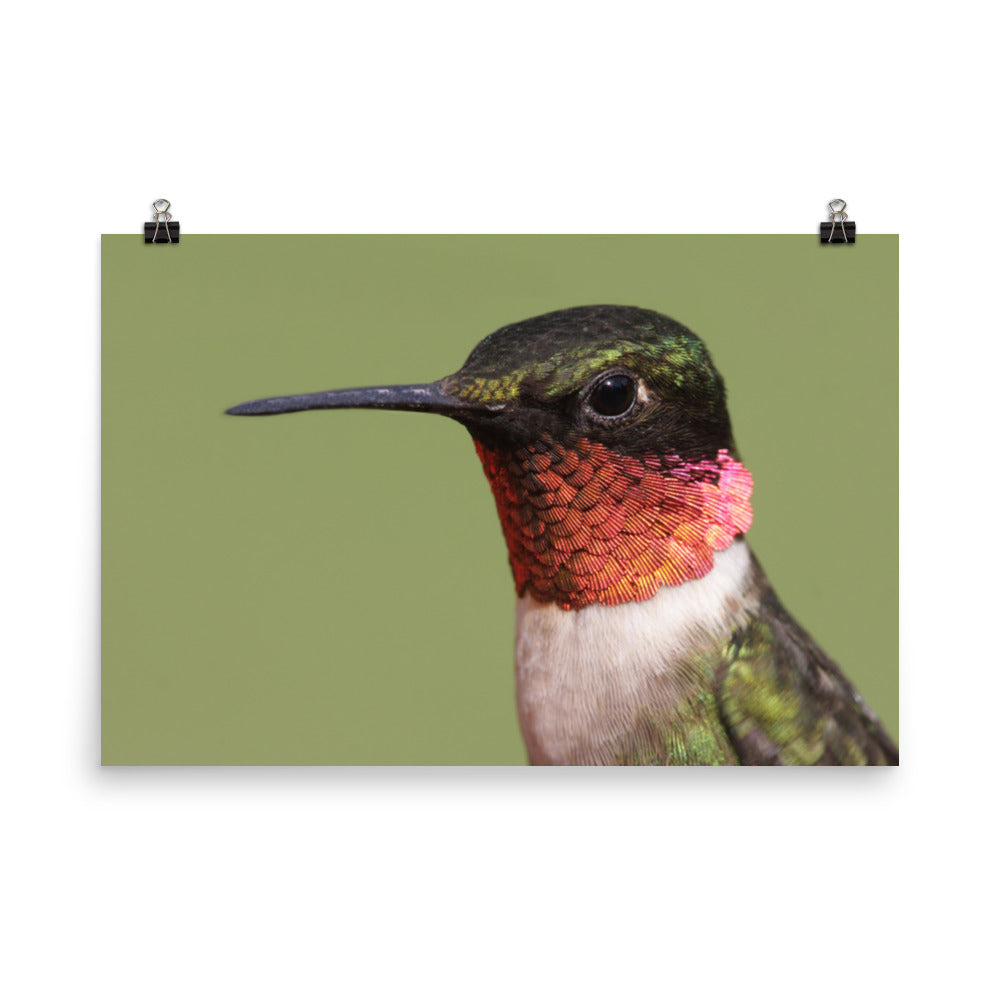 Hummingbird Prints: Close-up Ruby-throated Hummingbird - Animal / Wildlife / Nature Photo - Loose / Frameable / Unframed / Frameless Wall Art - Artwork
