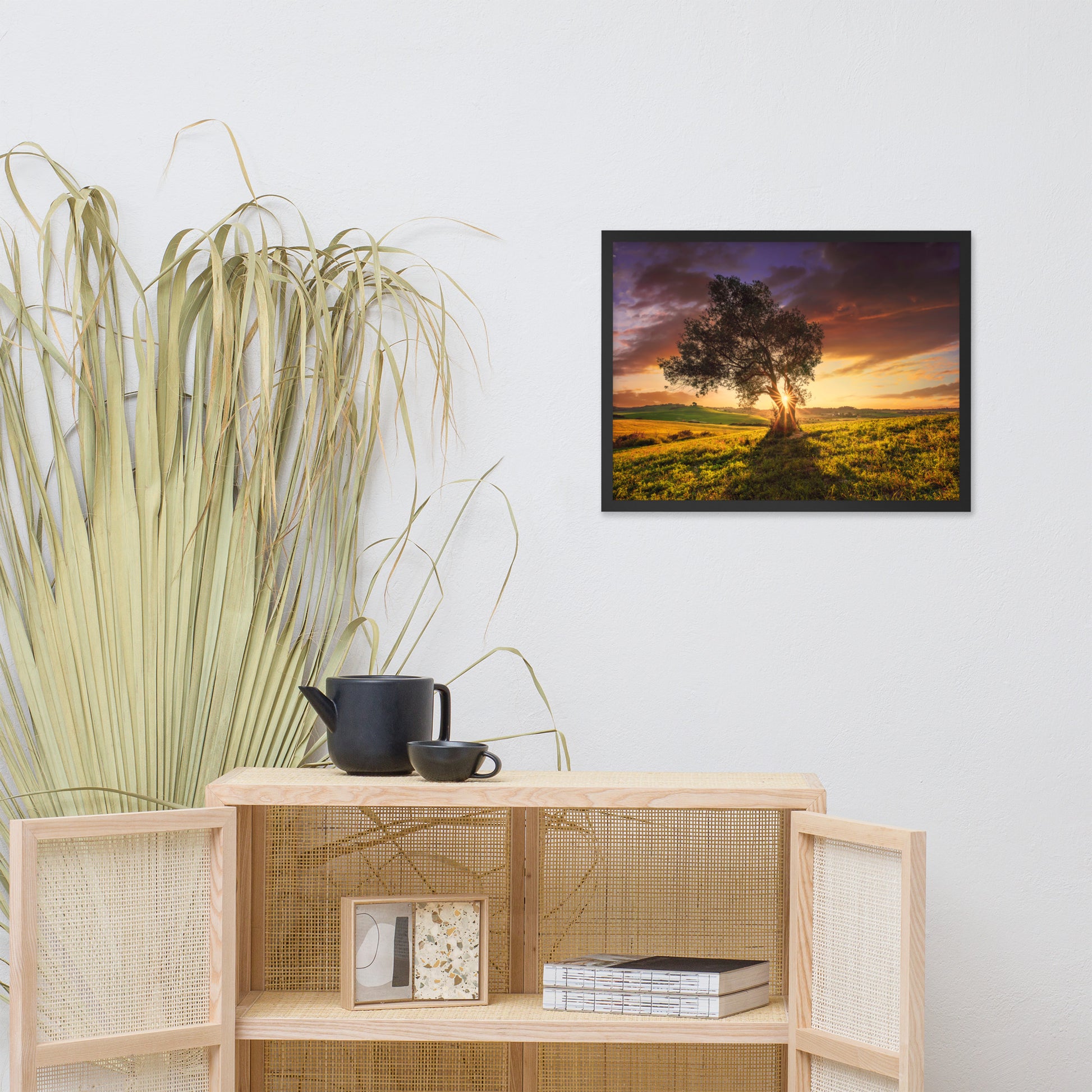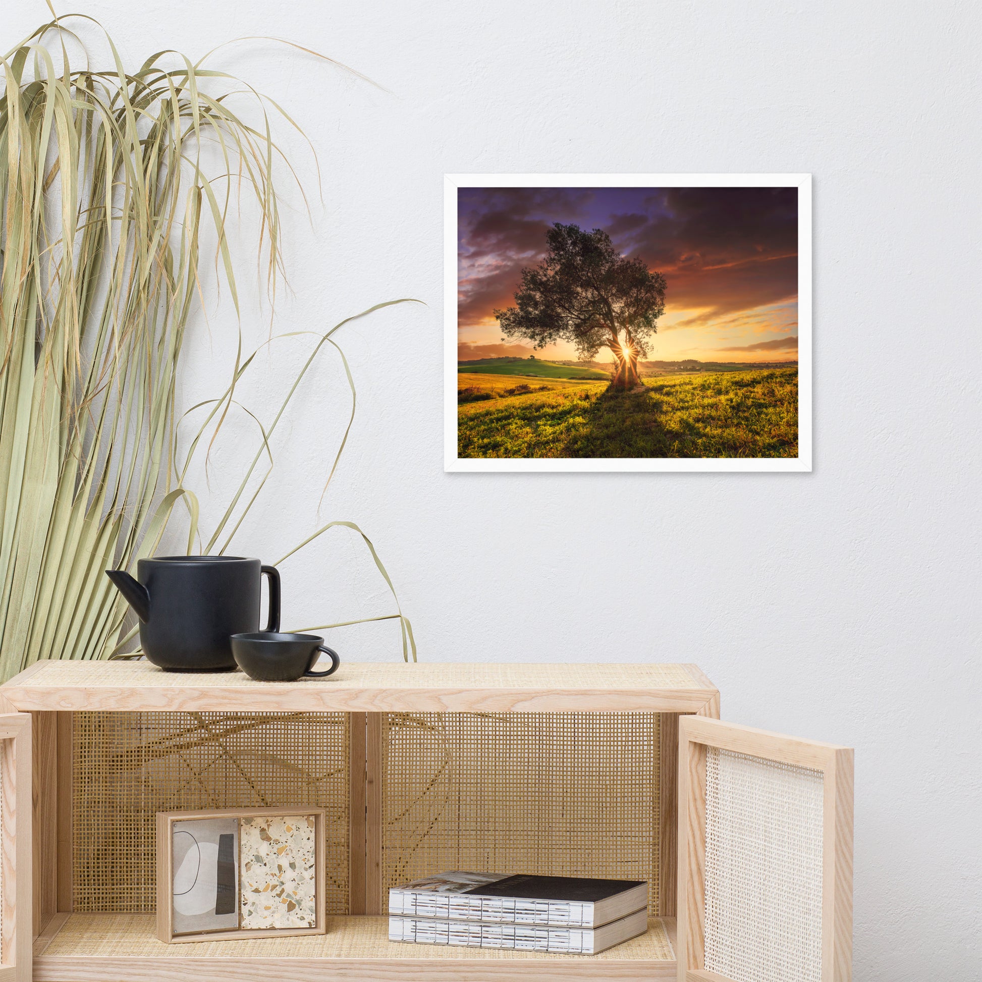 Framed Farmhouse Wall Art: Countryside Olive Tree Sunset - Rustic / Rural / Country Style / Landscape / Nature Photograph Print - Artwork - Wall Decor