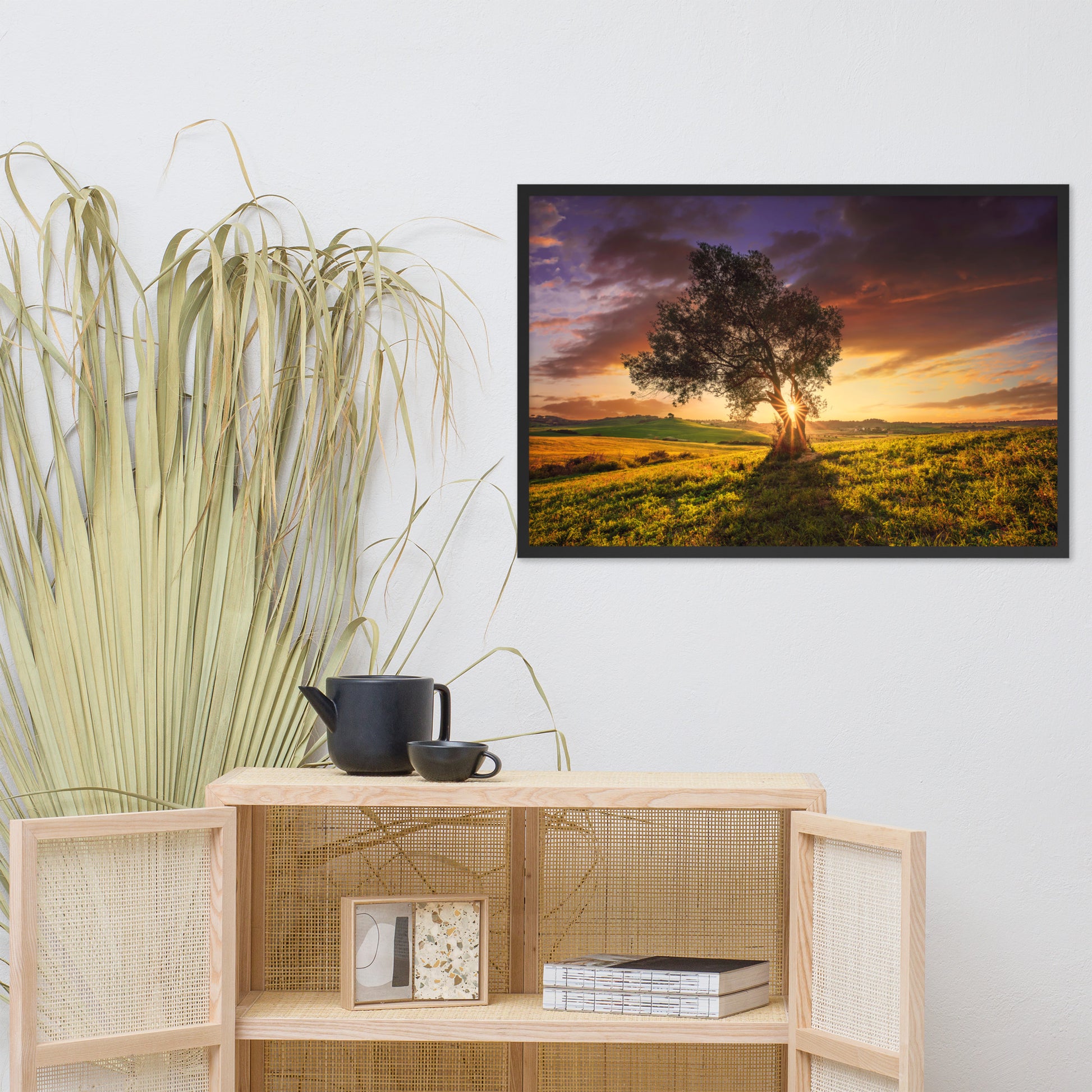 Countryside Olive Tree Sunset Landscape Photo Framed Wall Art Print