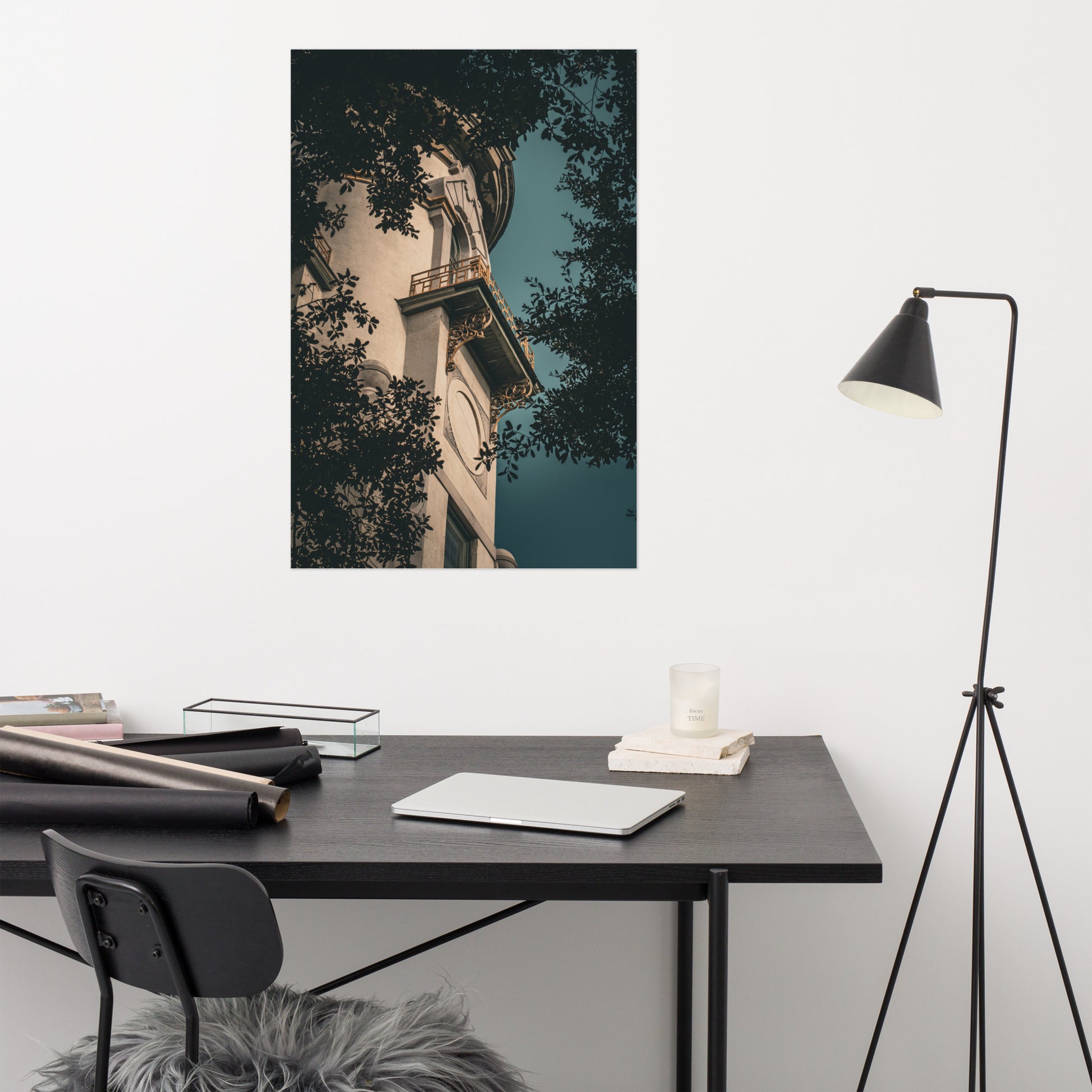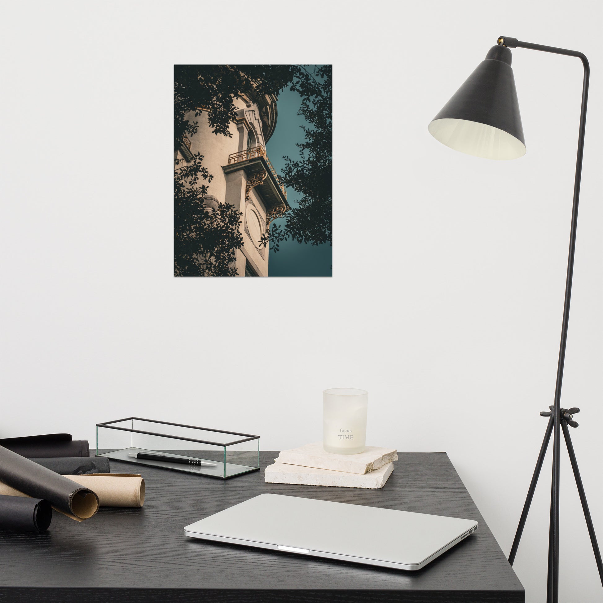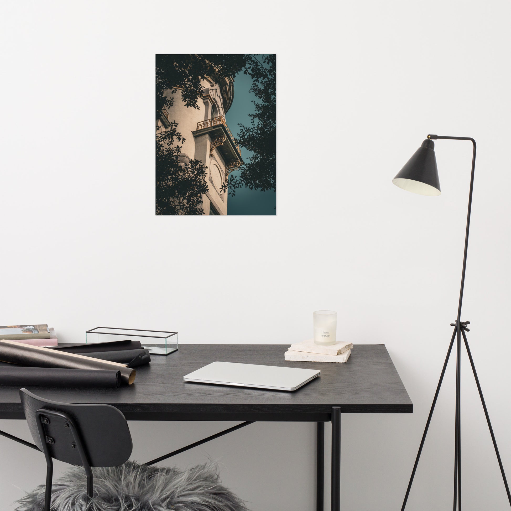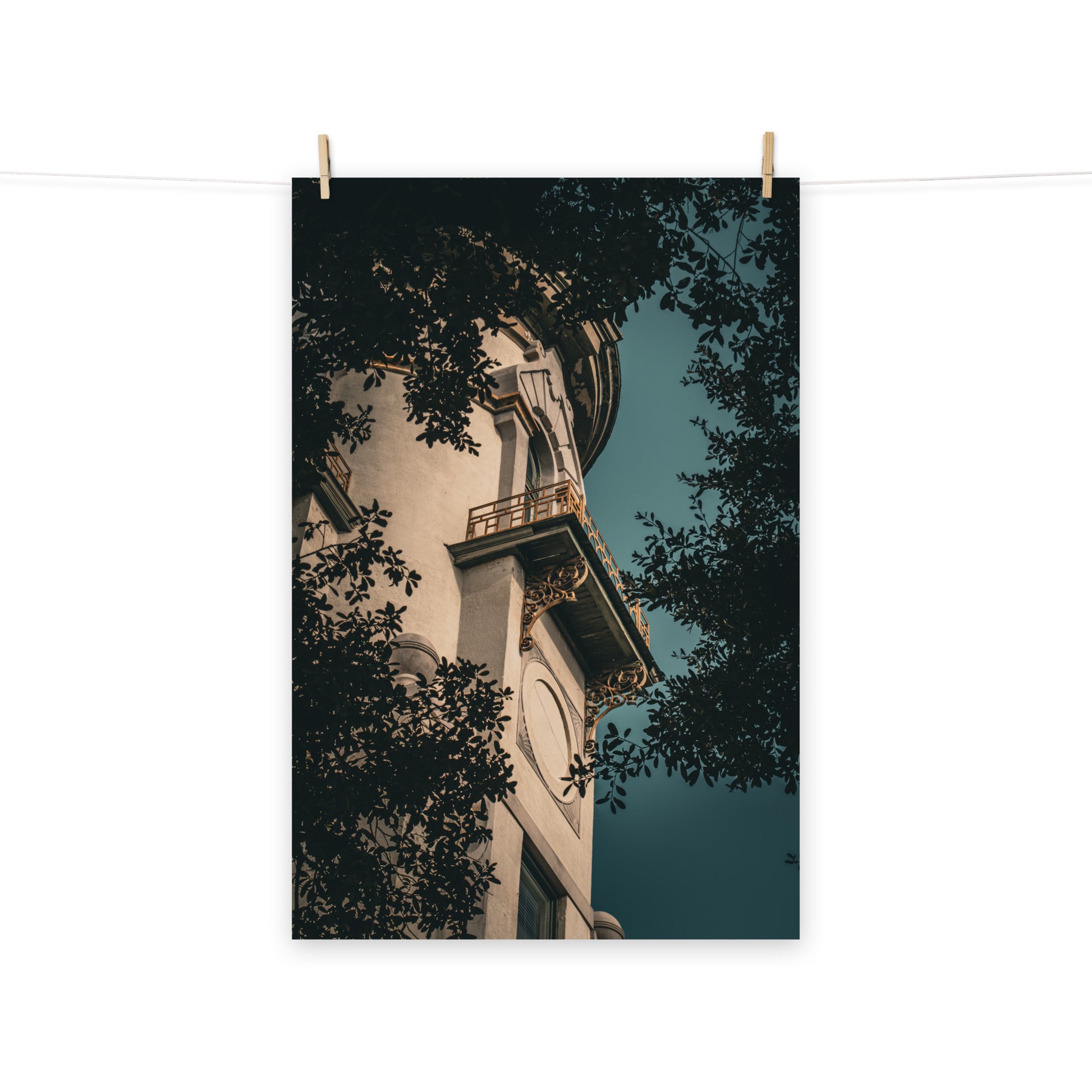 About this architectural art prints: Adorn your walls with the mysterious charm of hidden architecture. This unframed print unveils a glimpse of a forgotten tower, its elegant balcony peeking through a veil of lush foliage. The intricate details of the ironwork and the weathering facade whisper tales of a bygone era. The muted color palette and the play of light and shadow create a sense of depth and intrigue, drawing the viewer into a world of secrets and untold stories. This print is a perfect choice for those who appreciate architectural photography, urban exploration, or the timeless beauty of forgotten places.
