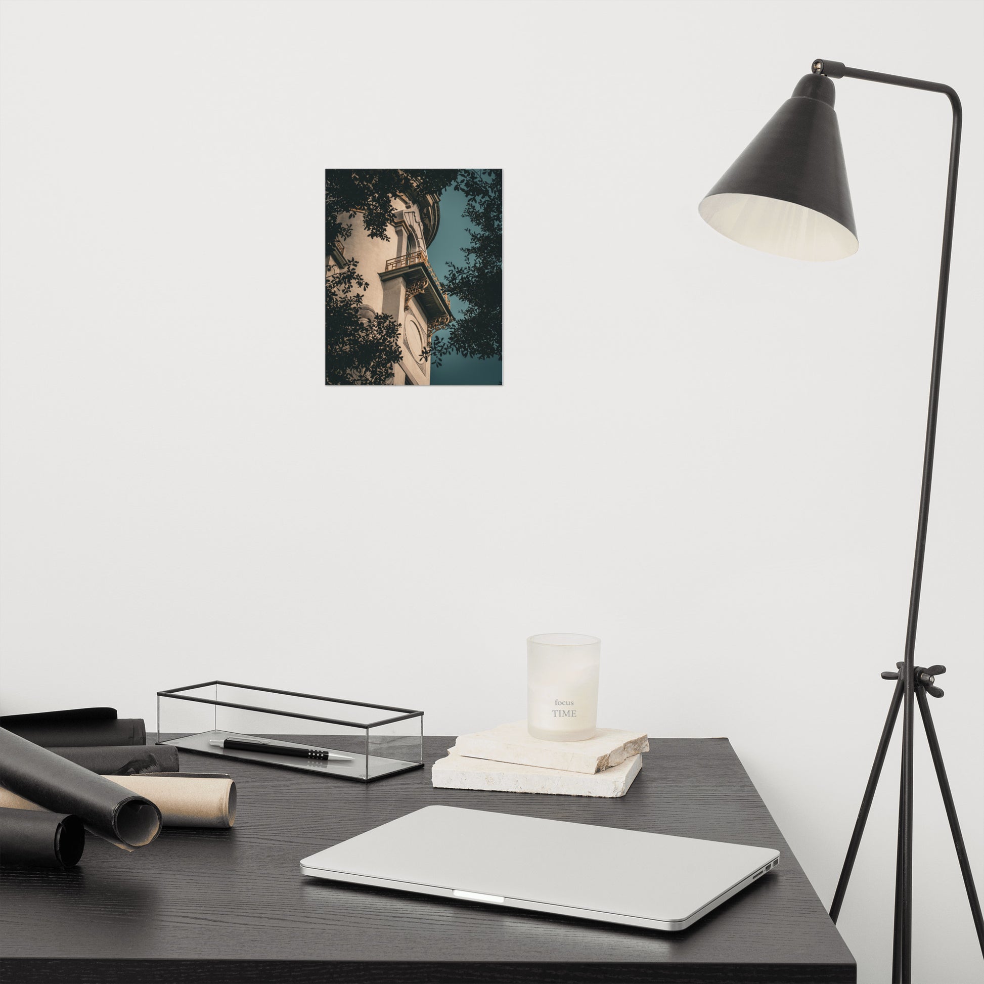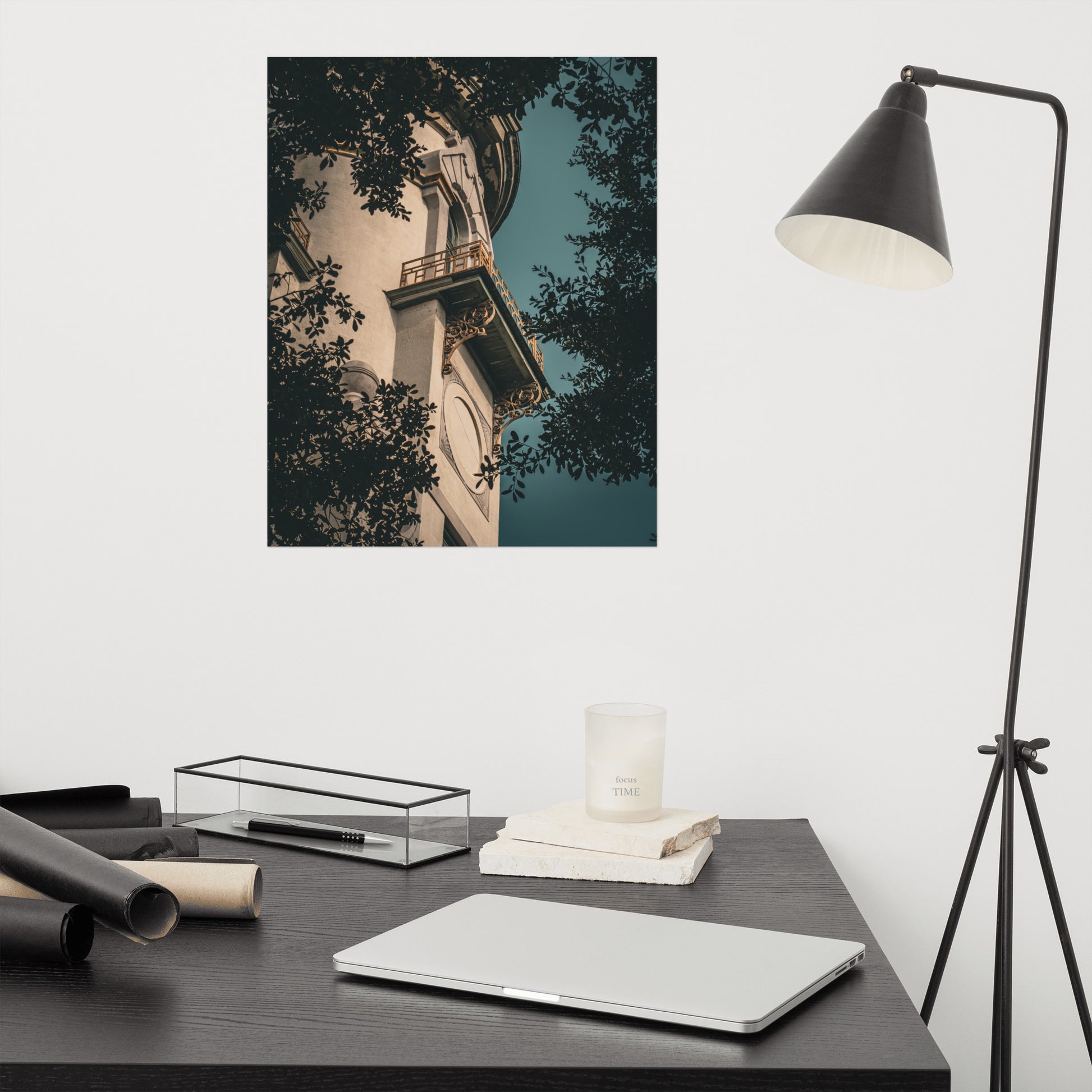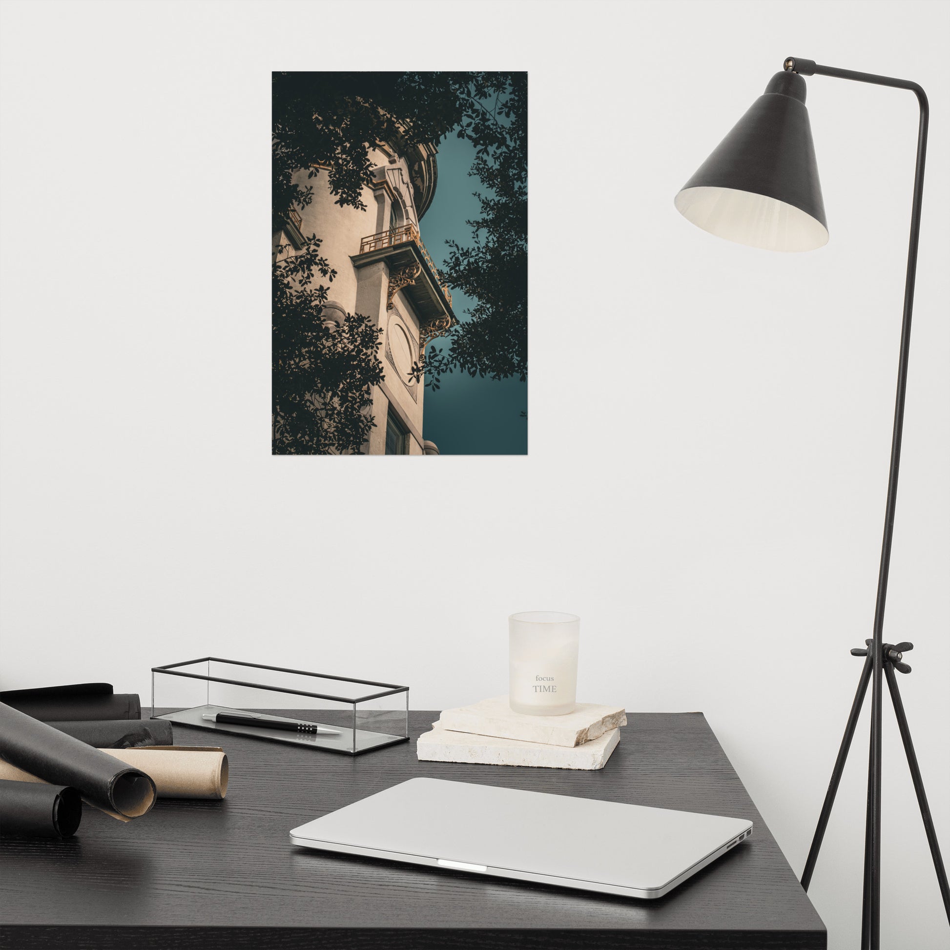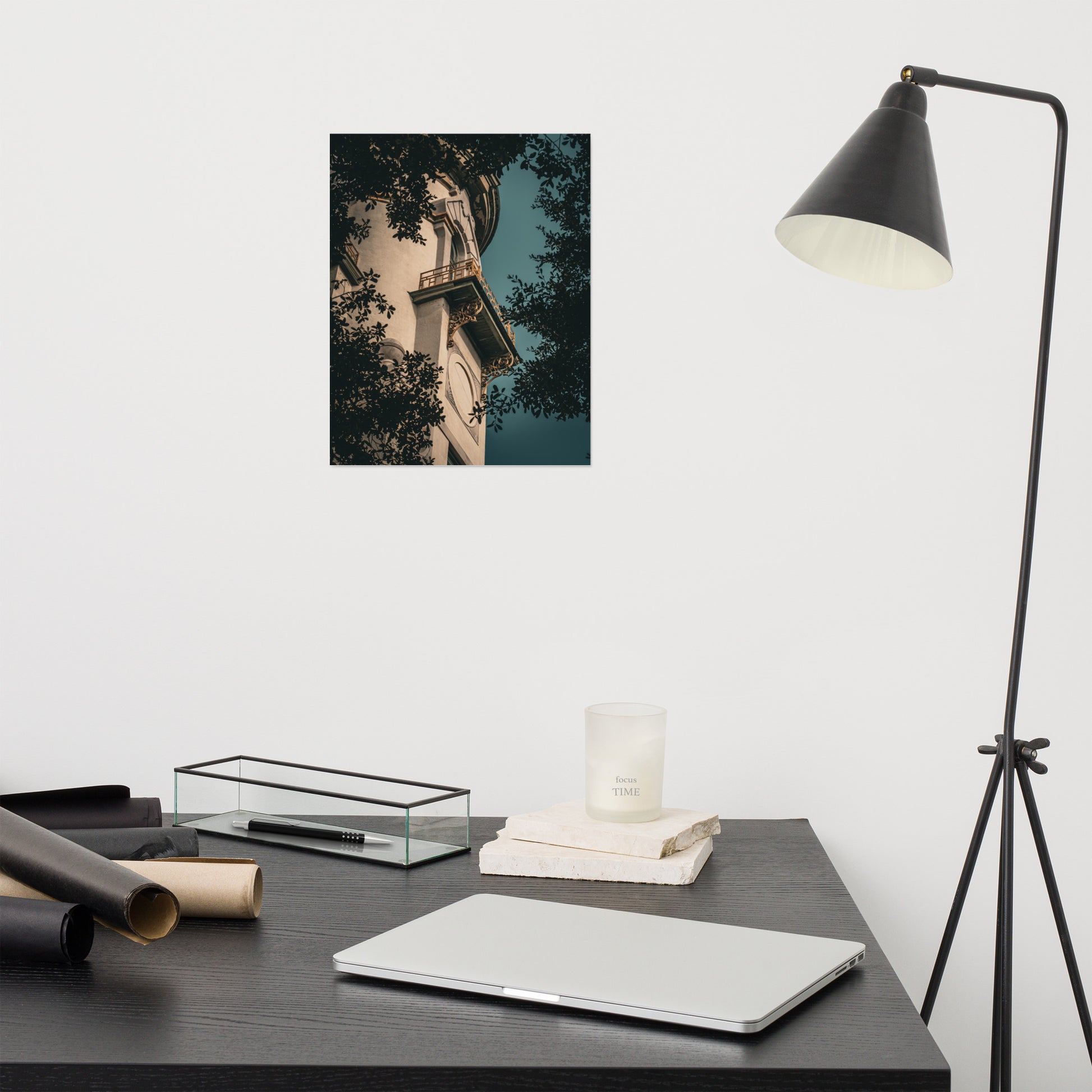 About this architectural art prints: Adorn your walls with the mysterious charm of hidden architecture. This unframed print unveils a glimpse of a forgotten tower, its elegant balcony peeking through a veil of lush foliage. The intricate details of the ironwork and the weathering facade whisper tales of a bygone era. The muted color palette and the play of light and shadow create a sense of depth and intrigue, drawing the viewer into a world of secrets and untold stories. This print is a perfect choice for those who appreciate architectural photography, urban exploration, or the timeless beauty of forgotten places.