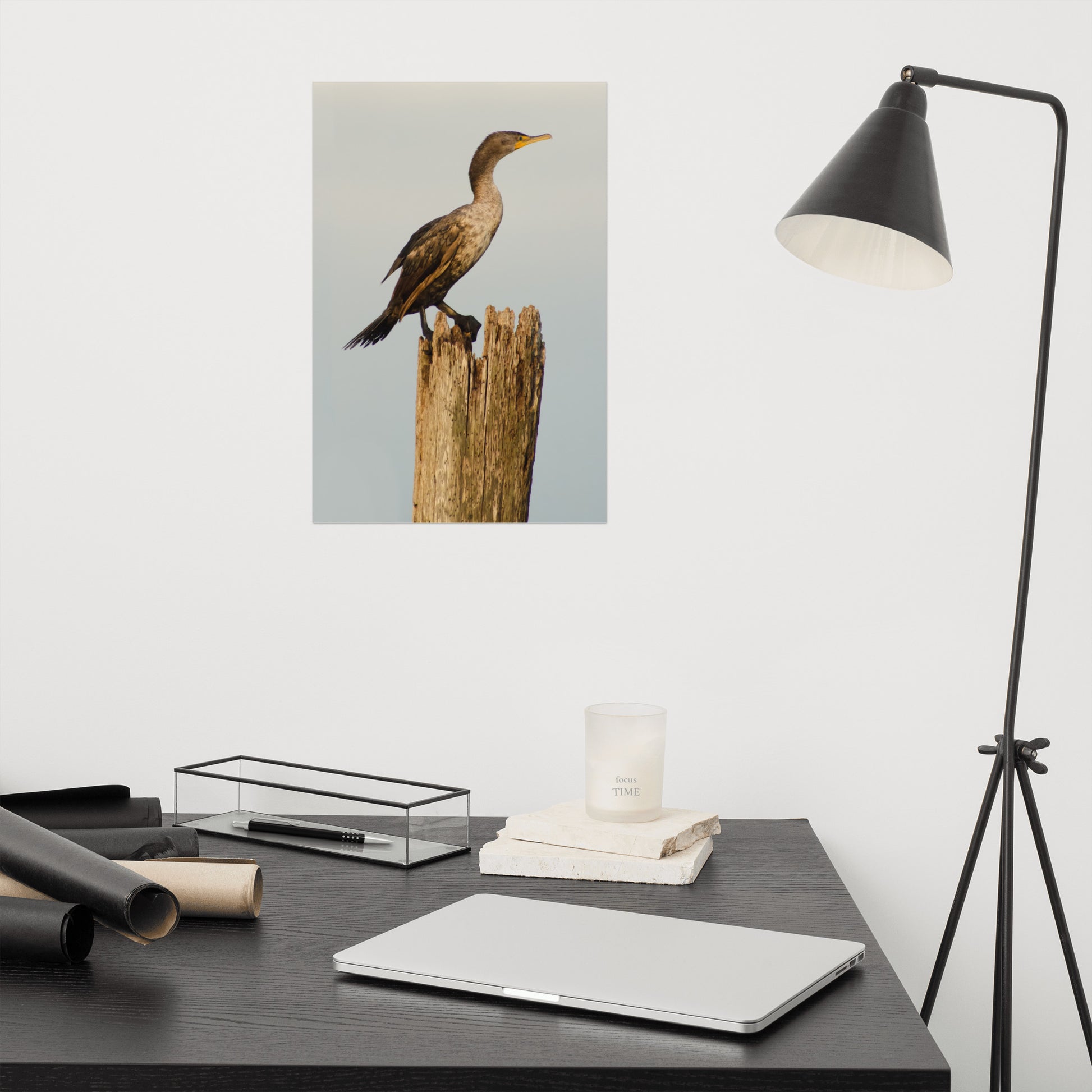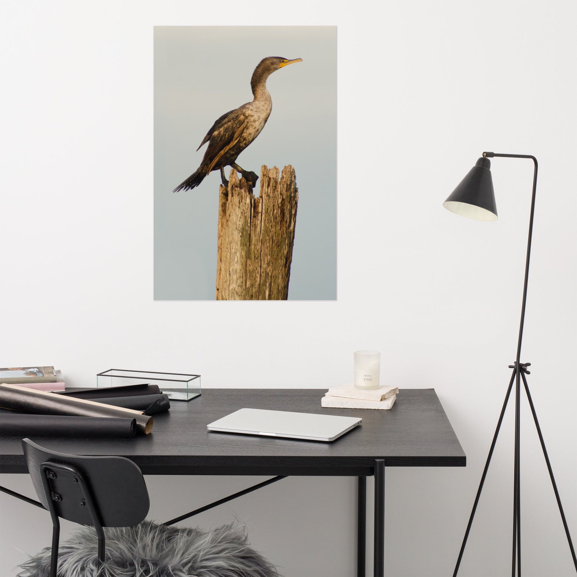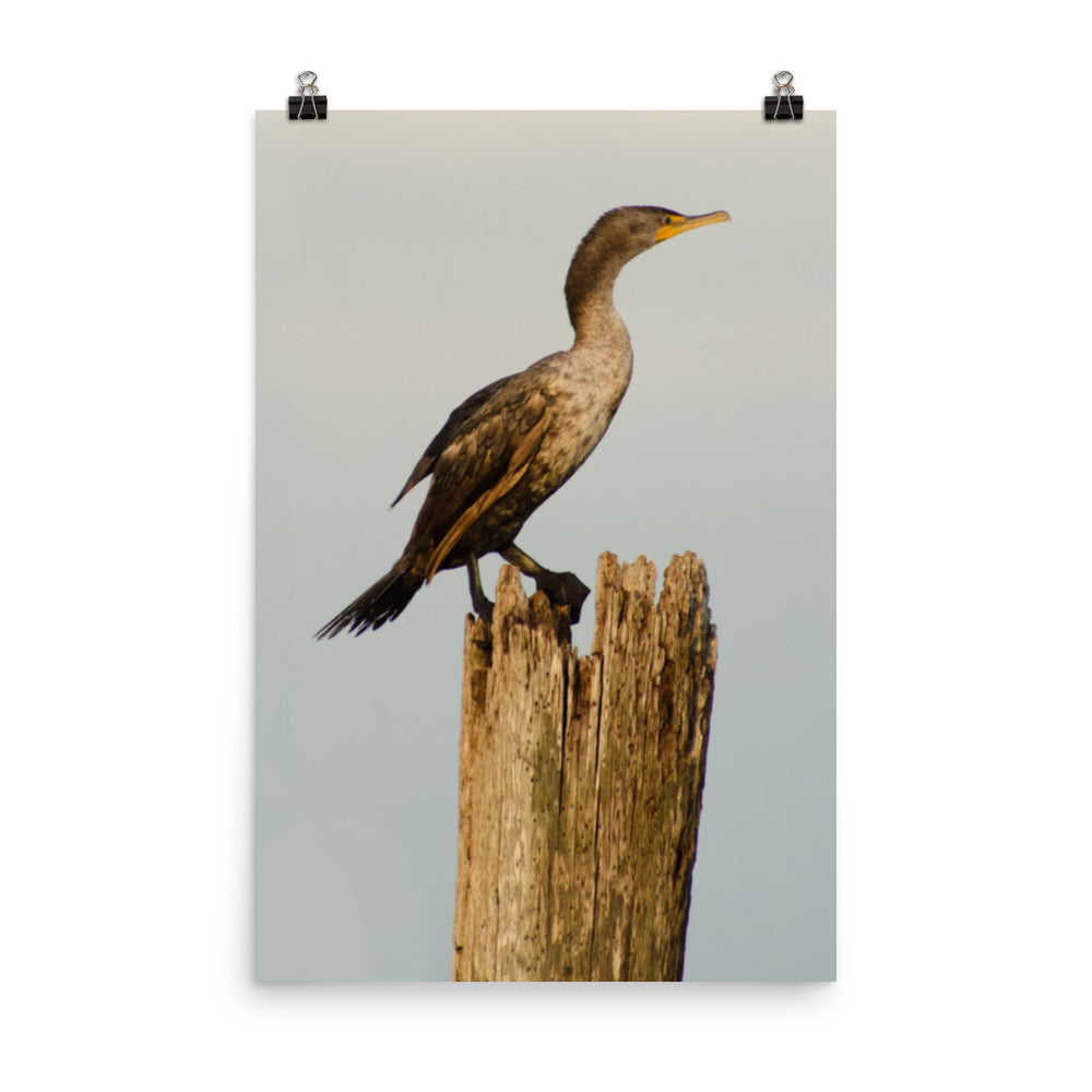 Coastal Artwork Prints: Brown Double Crested Cormorant On Perch - Bird / Animal / Wildlife / Nature Photograph - Loose / Frameable / Unframed / Frameless Wall Art Print - Artwork
