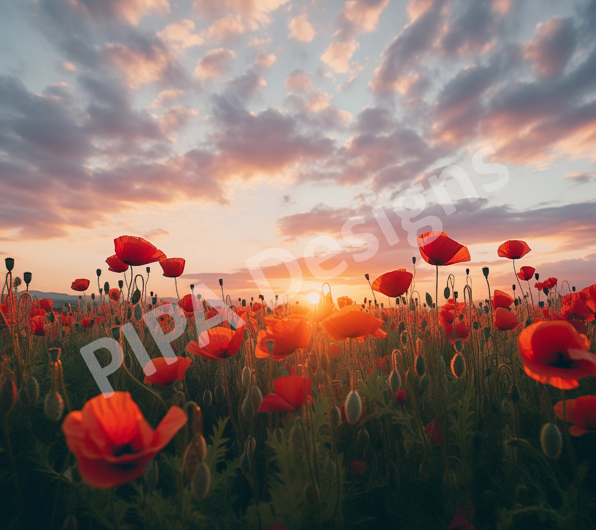 This framed photorealistic digital artwork, titled "A Field of Memories Poppy Sunset Photorealism" by Melissa Fague, captures the serene beauty of a poppy field at sunset. The vibrant red poppies stand out against the soft, warm hues of the setting sun and the cloudy sky, creating a visually stunning and emotionally evocative piece. The photorealistic style brings a sense of realism to the artwork, making you feel as though you're standing in the field yourself, surrounded by the beauty of nature.