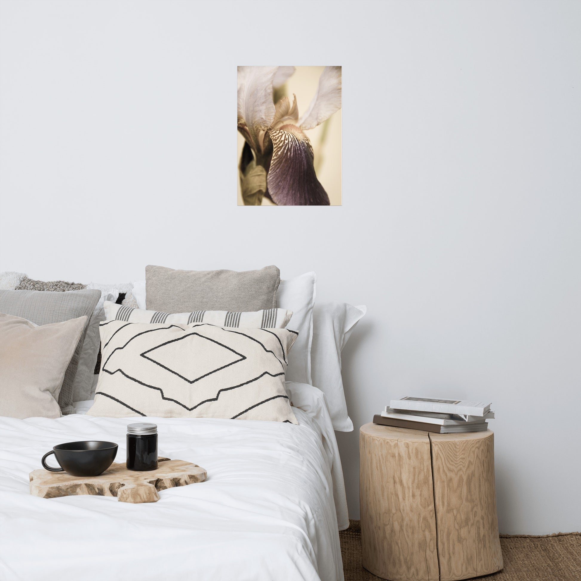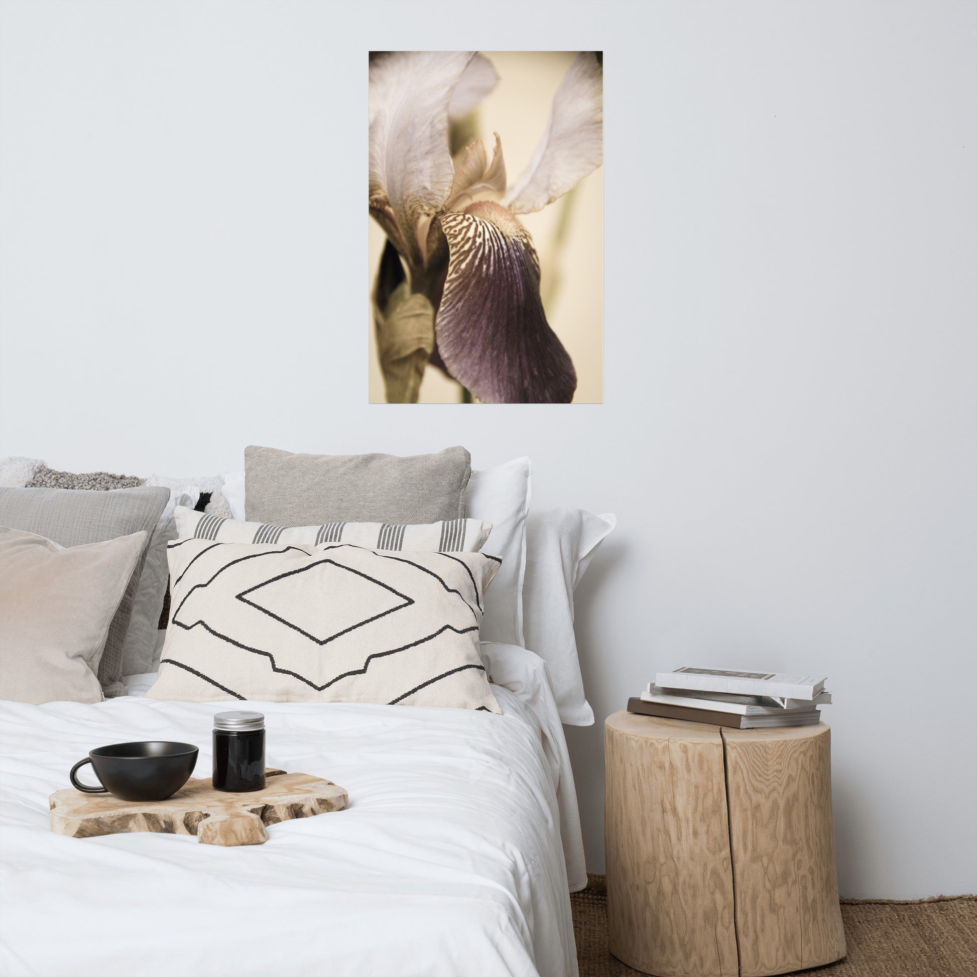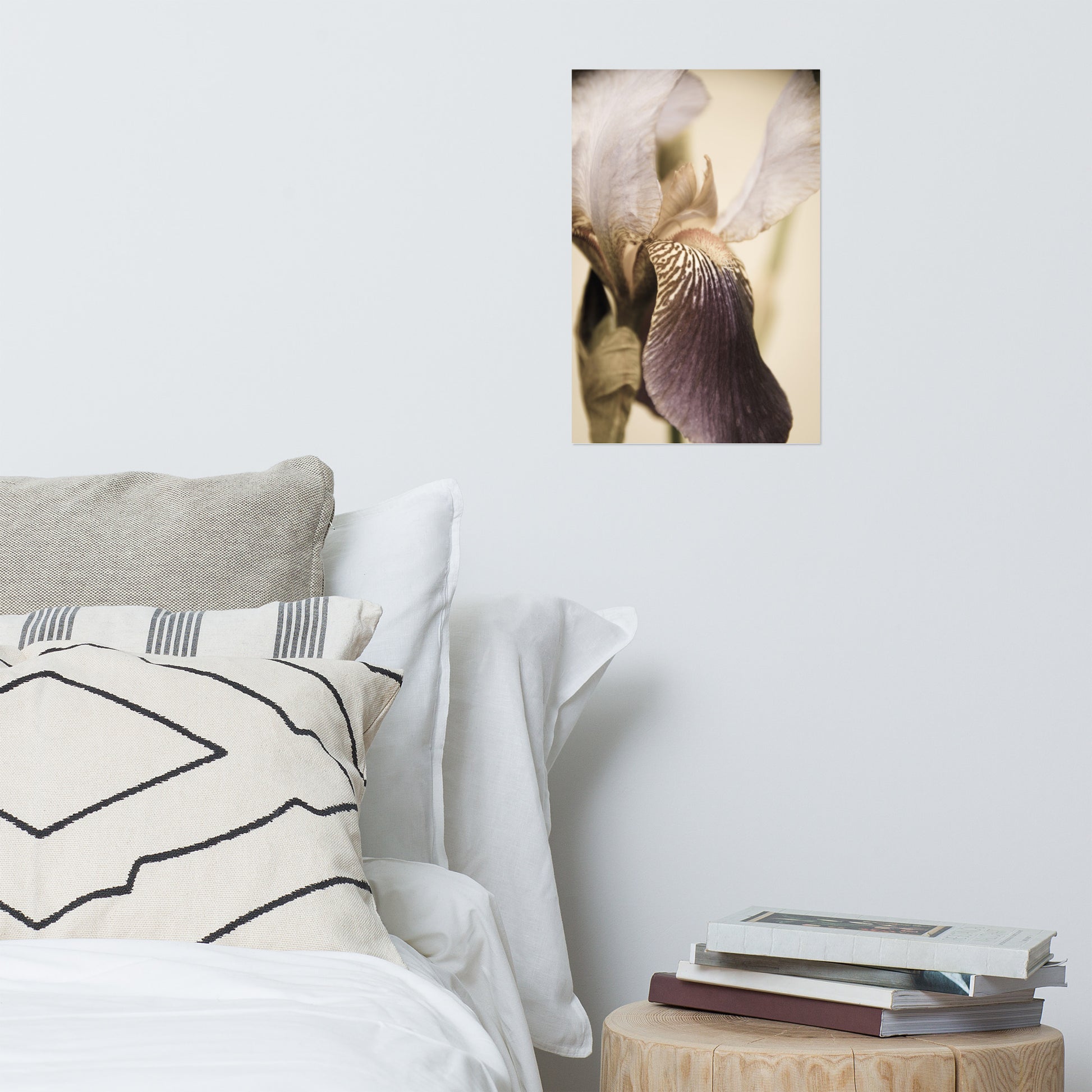 About these iris photography prints: Japanese Iris Delight is a frameable art print, capturing the timeless beauty of a fully bloomed Japanese Iris. Printed on high-quality photo paper, this close-up photograph reveals the intricate details of each delicate petal. The image has been subtly aged, adding a romantic touch and evoking a sense of nostalgia. Perfect for adding a touch of elegance and natural beauty to any space, this unframed print allows for versatile display options.