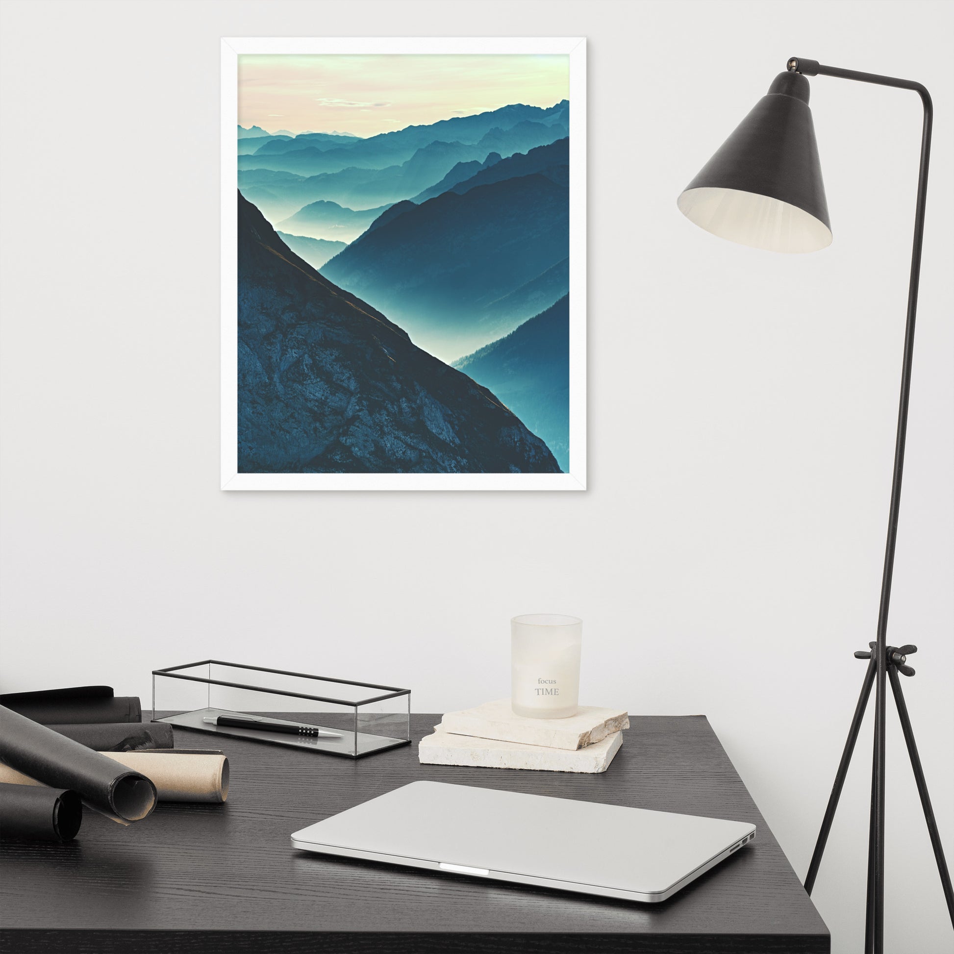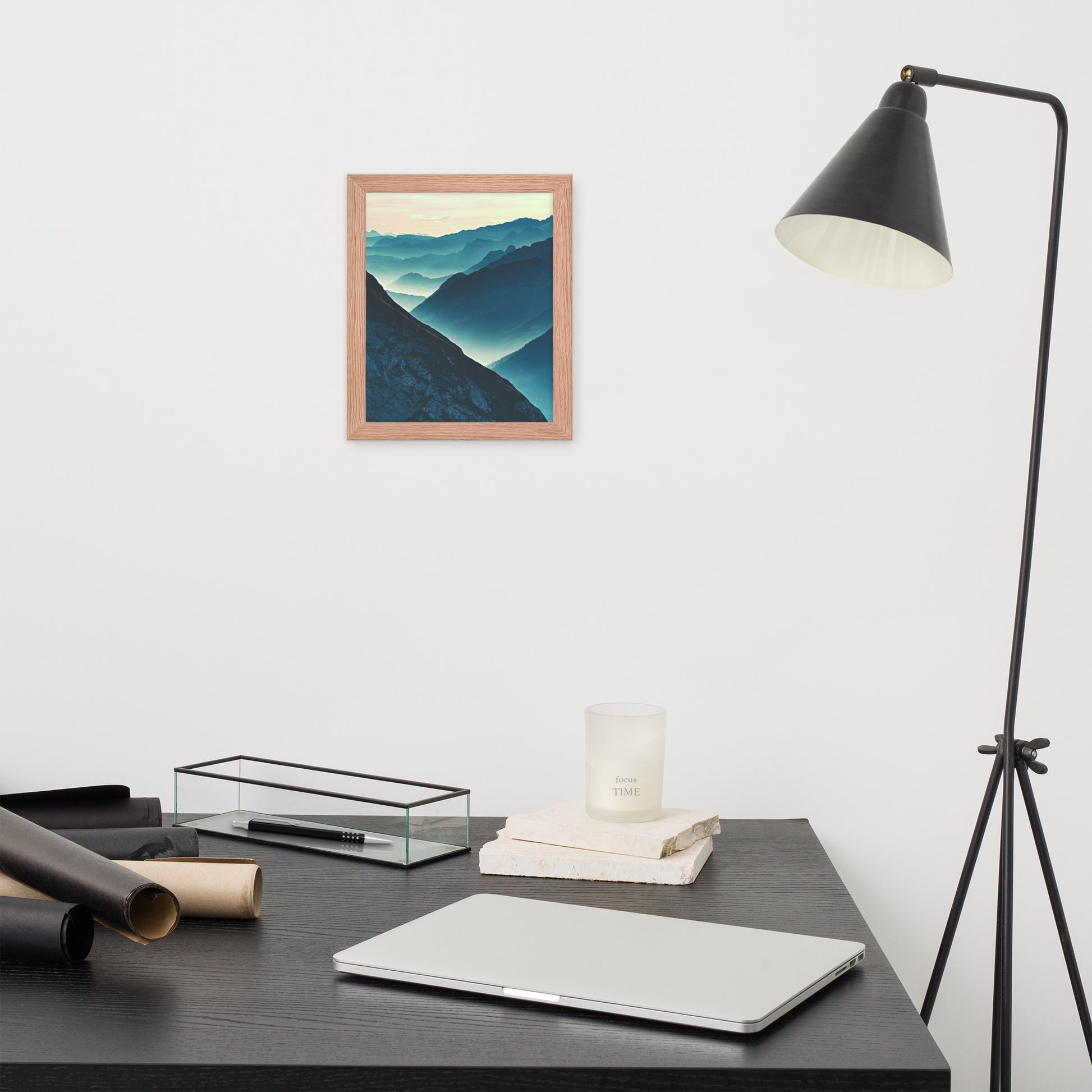 Misty Blue Silhouette Mountain Range Framed Photo Paper Wall Art Prints