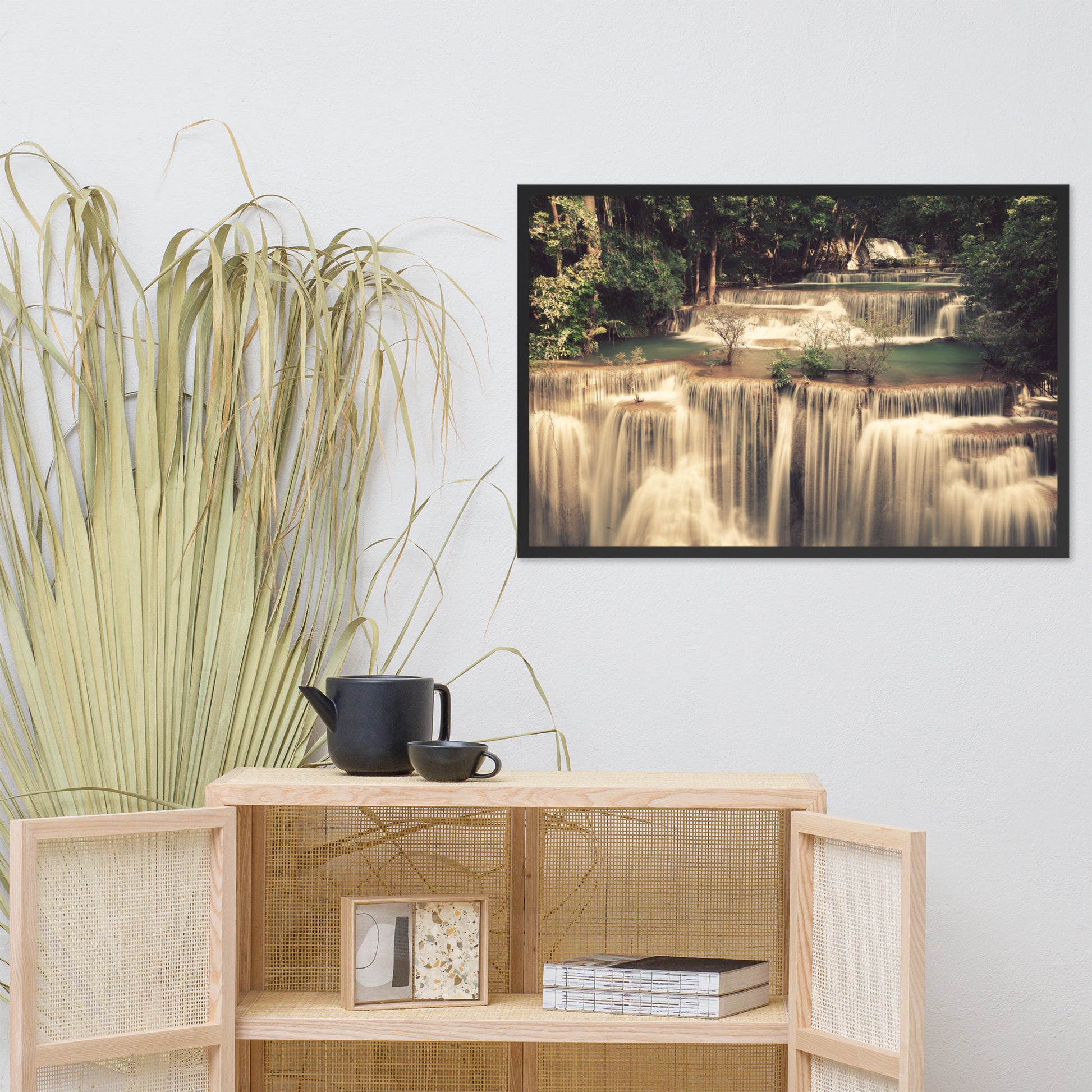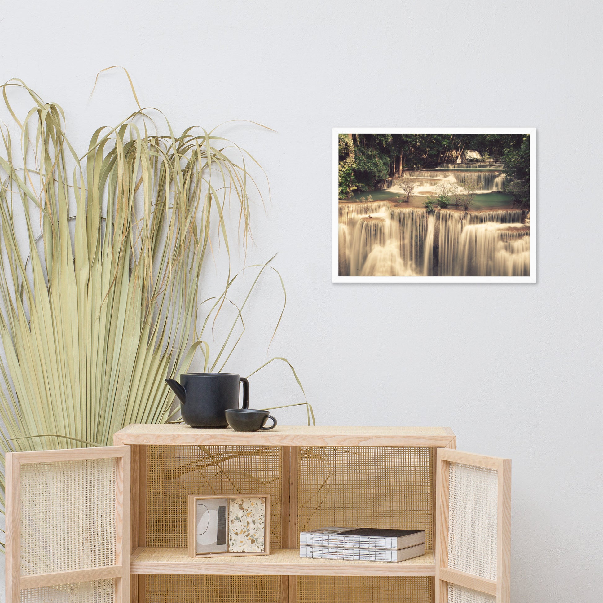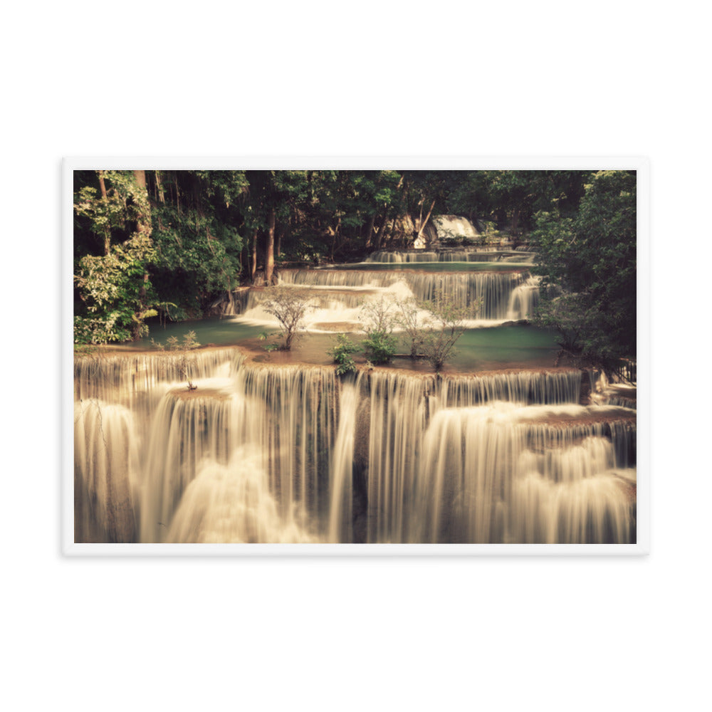 About this rustic style wall art: Bring the tranquility of Thailand's hidden gem into your home with this stunning wall art print. Capturing the ethereal beauty of the Huay Mae Khamin waterfall, this photograph showcases the cascading tiers of water in a breathtaking display. The long exposure technique transforms the scene into a dreamlike fantasy, with the soft, warm tones creating a sense of peace and serenity.