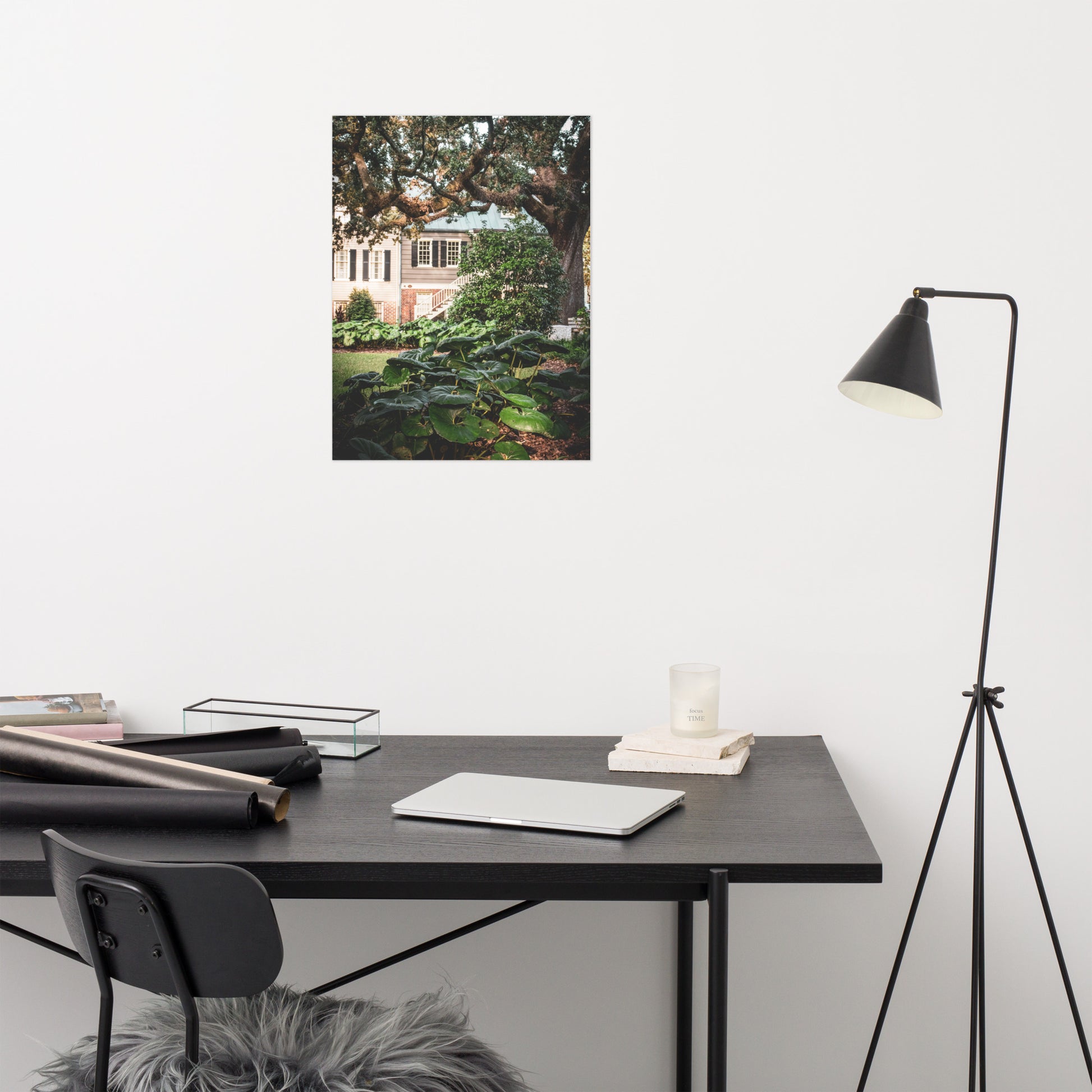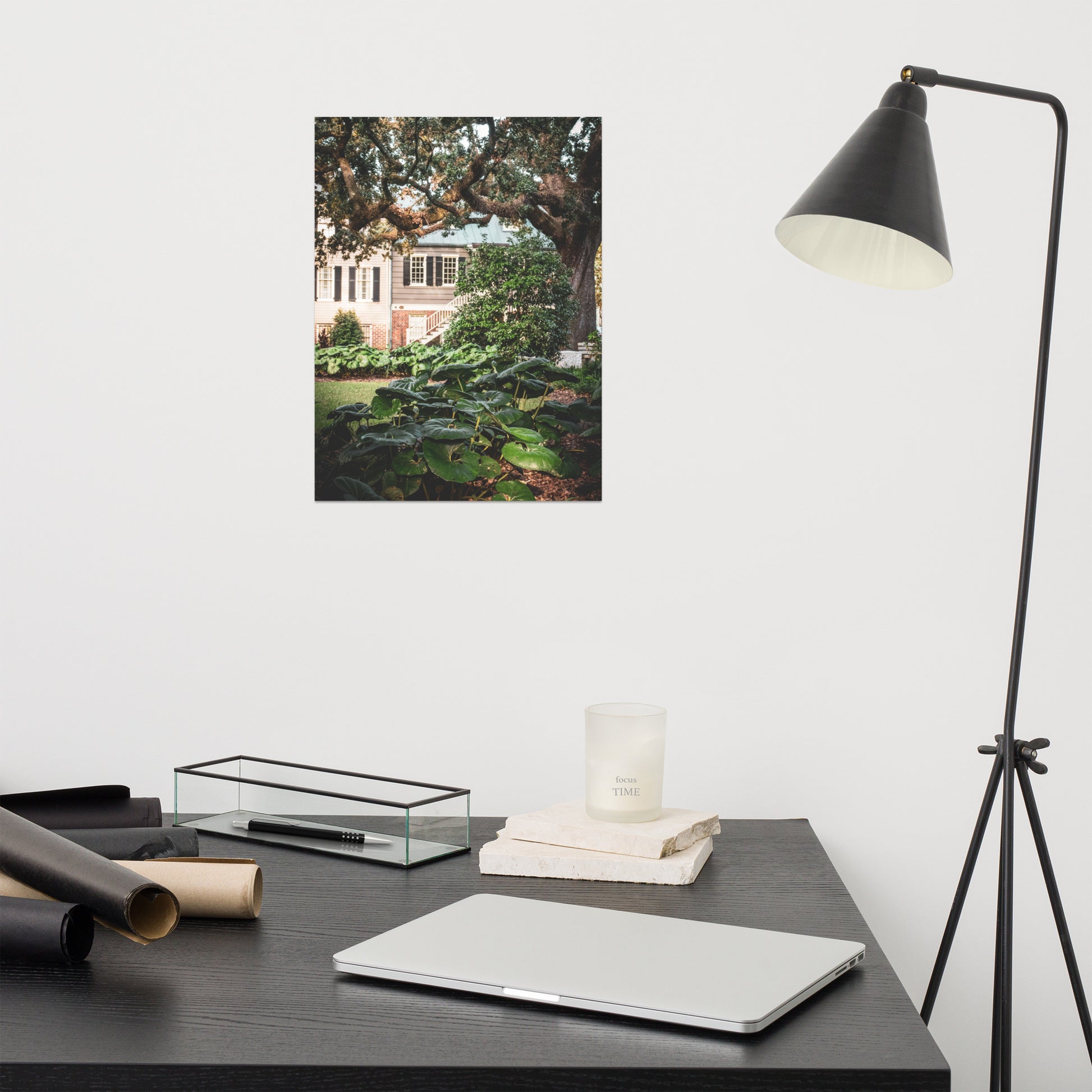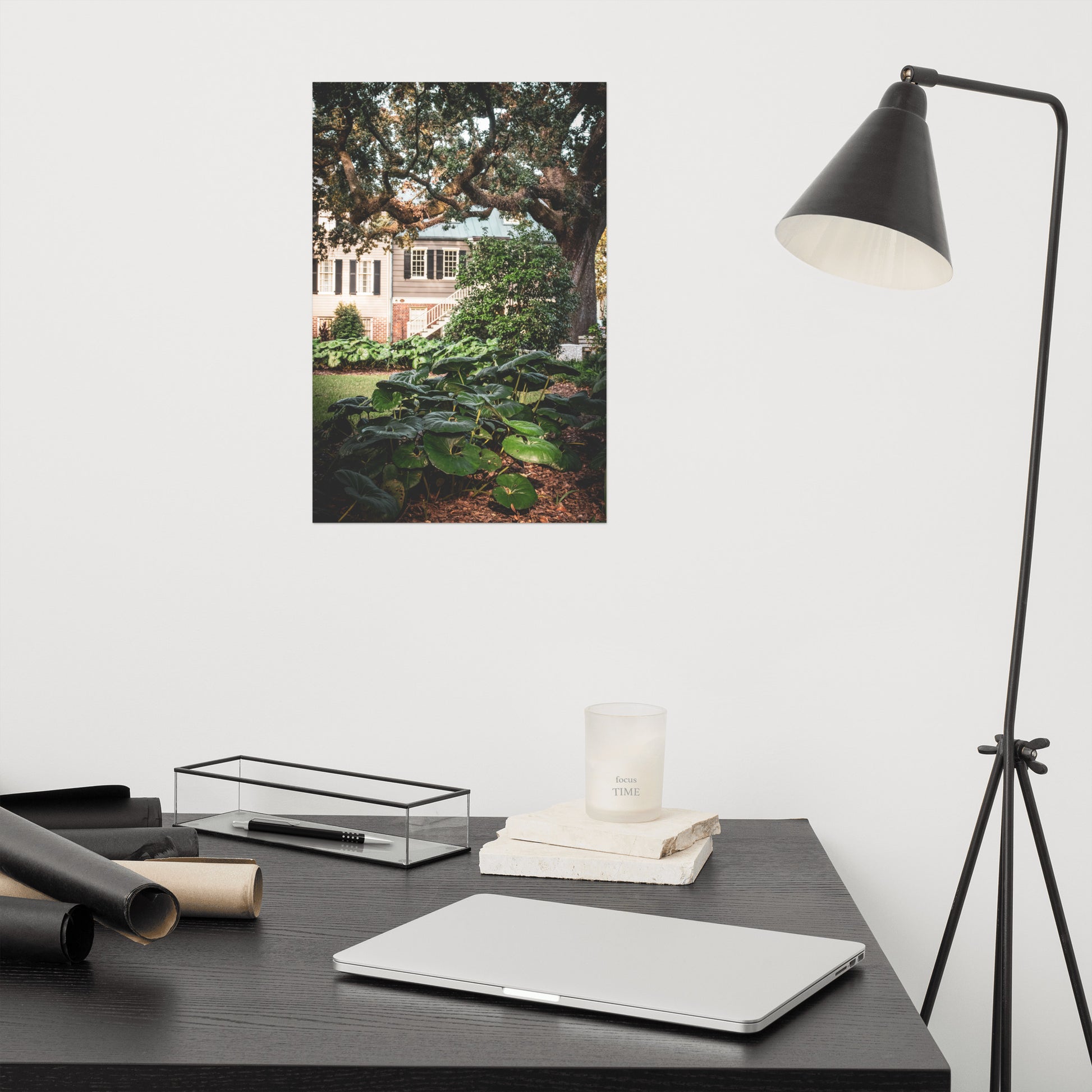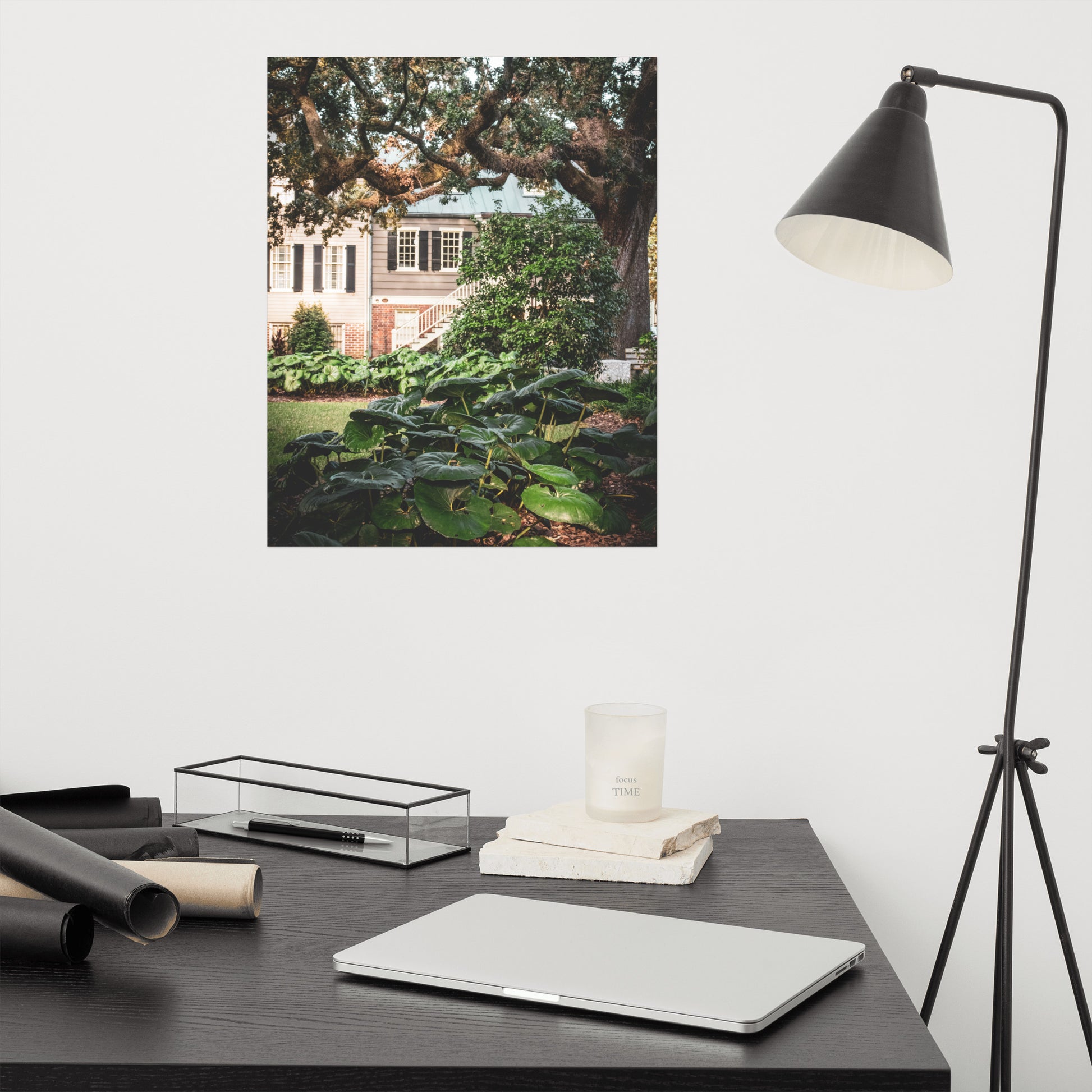 About this rustic tree art and plant art: This captivating modern wall art showcases a beautiful nature landscape photograph, capturing the essence of southern charm. A majestic Live Oak tree and vibrant Giant Leopard Plants grace Washington Square, with the historic Simon Mirault House (built in 1852) and the Joachim Hartstene House (originally built in 1803, rebuilt in 1964) adding a touch of history to the background. This unframed print is perfect for adding a touch of elegance and warmth to any space.