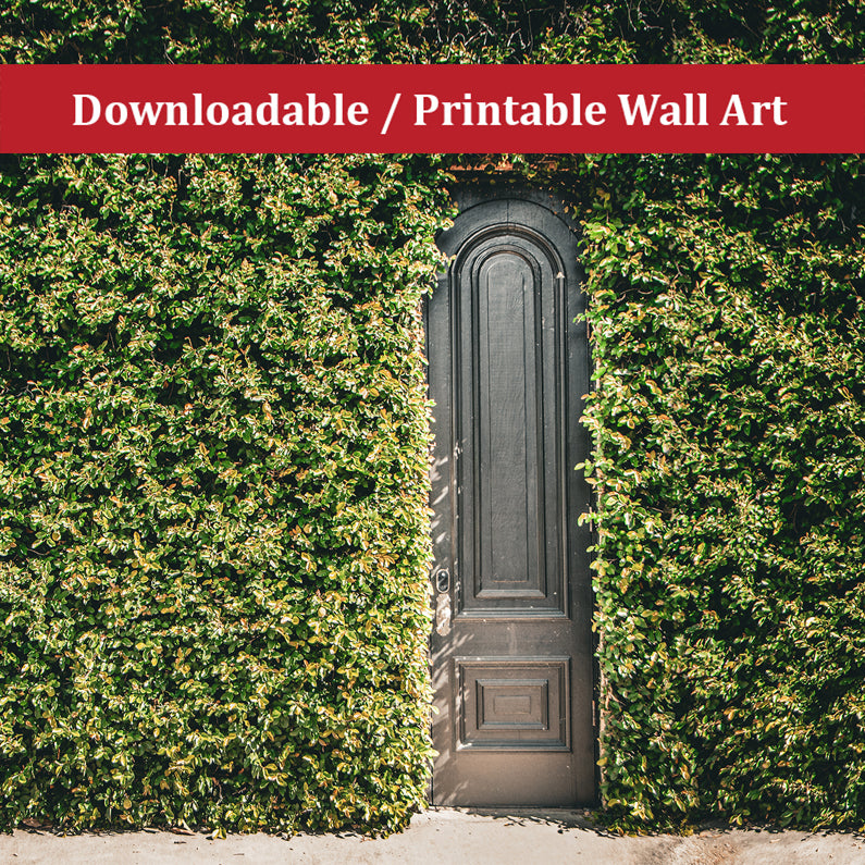 "Old Wooden Door and Ivy" invites you to bring the enchanting allure of Savannah, Georgia, into your home. This captivating photograph, available as DIY downloadable/printable art, captures the essence of Southern charm, showcasing a weathered wooden door nestled within a wall completely enveloped in lush ivy.