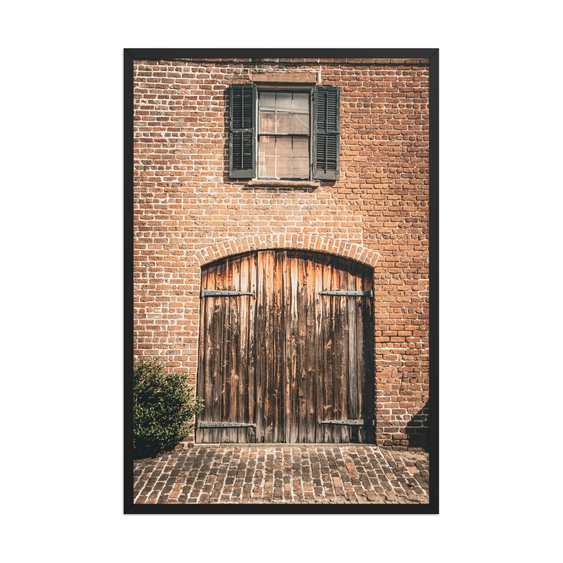 "Old Wooden Door" transports you to the heart of Savannah, Georgia, where history whispers from every brick and weathered facade. This captivating photograph captures the essence of Southern charm, showcasing a grand old wooden door set against a backdrop of timeworn brickwork.