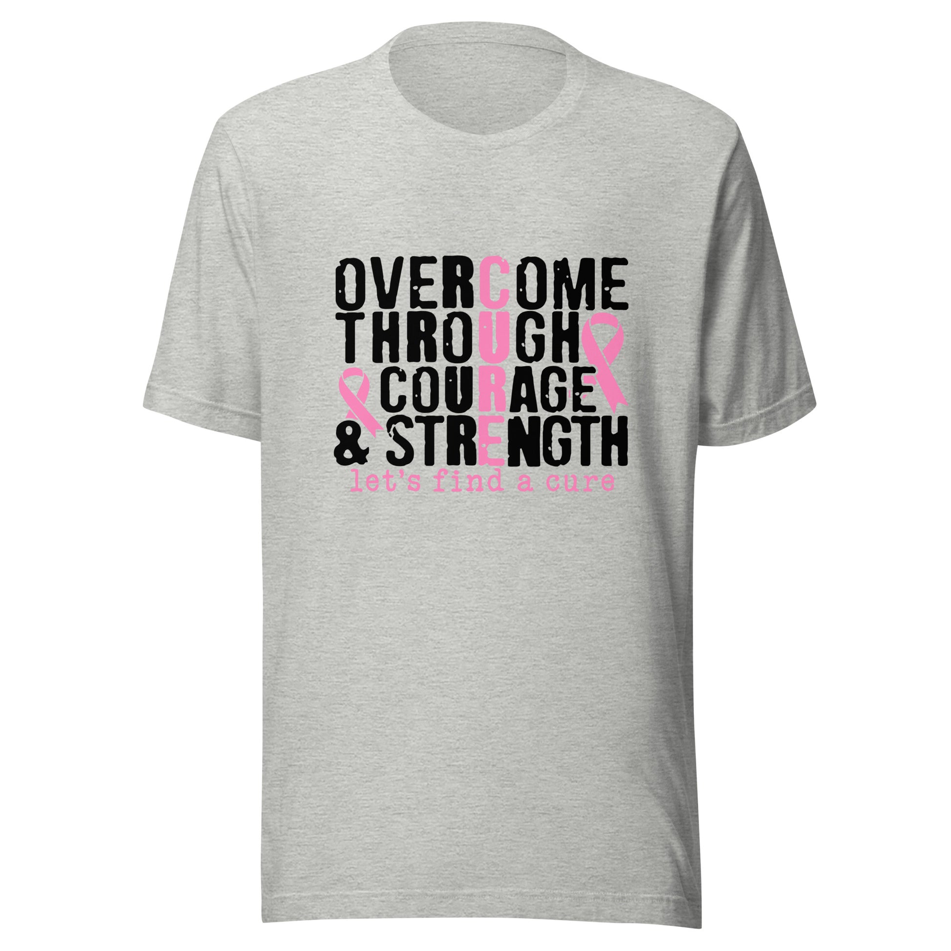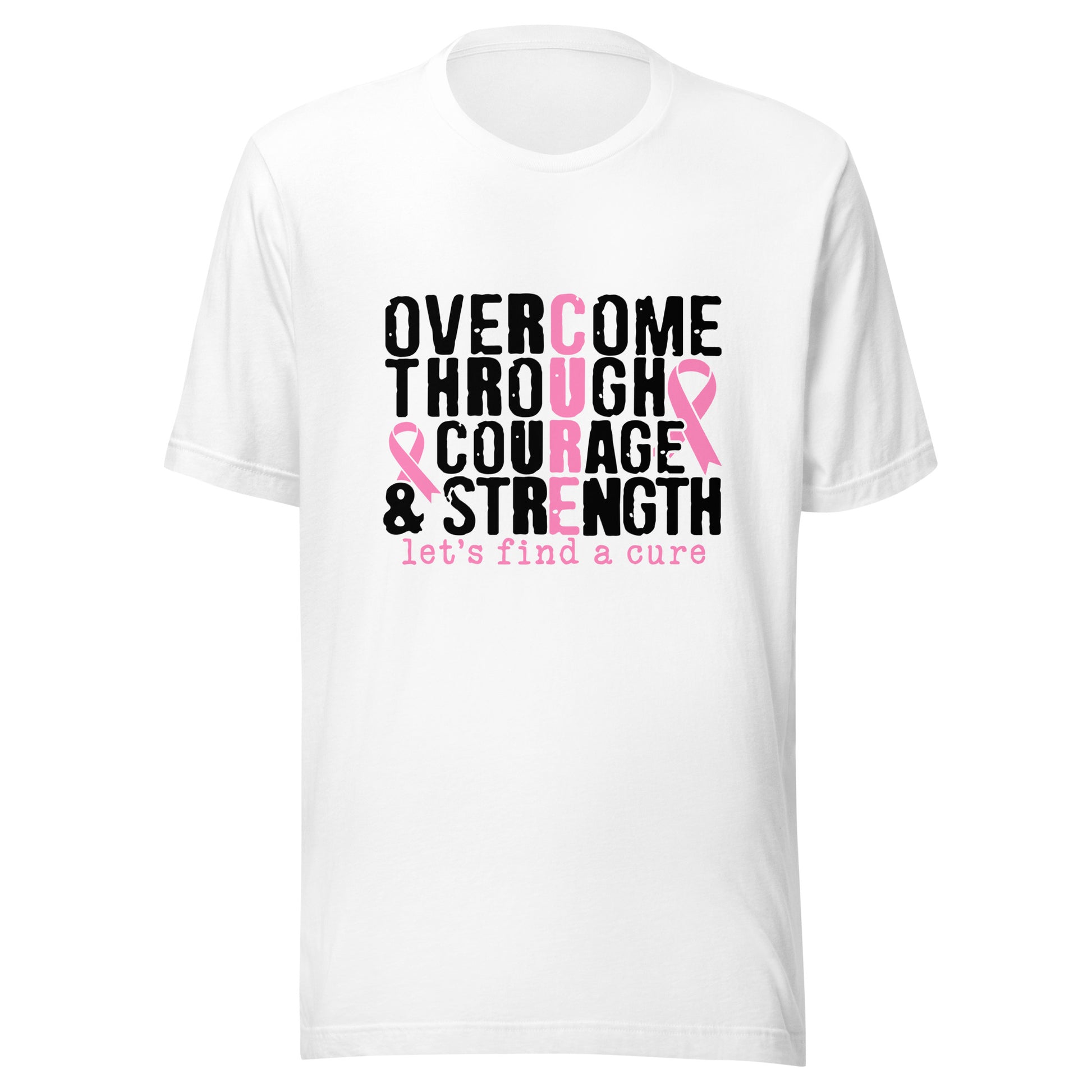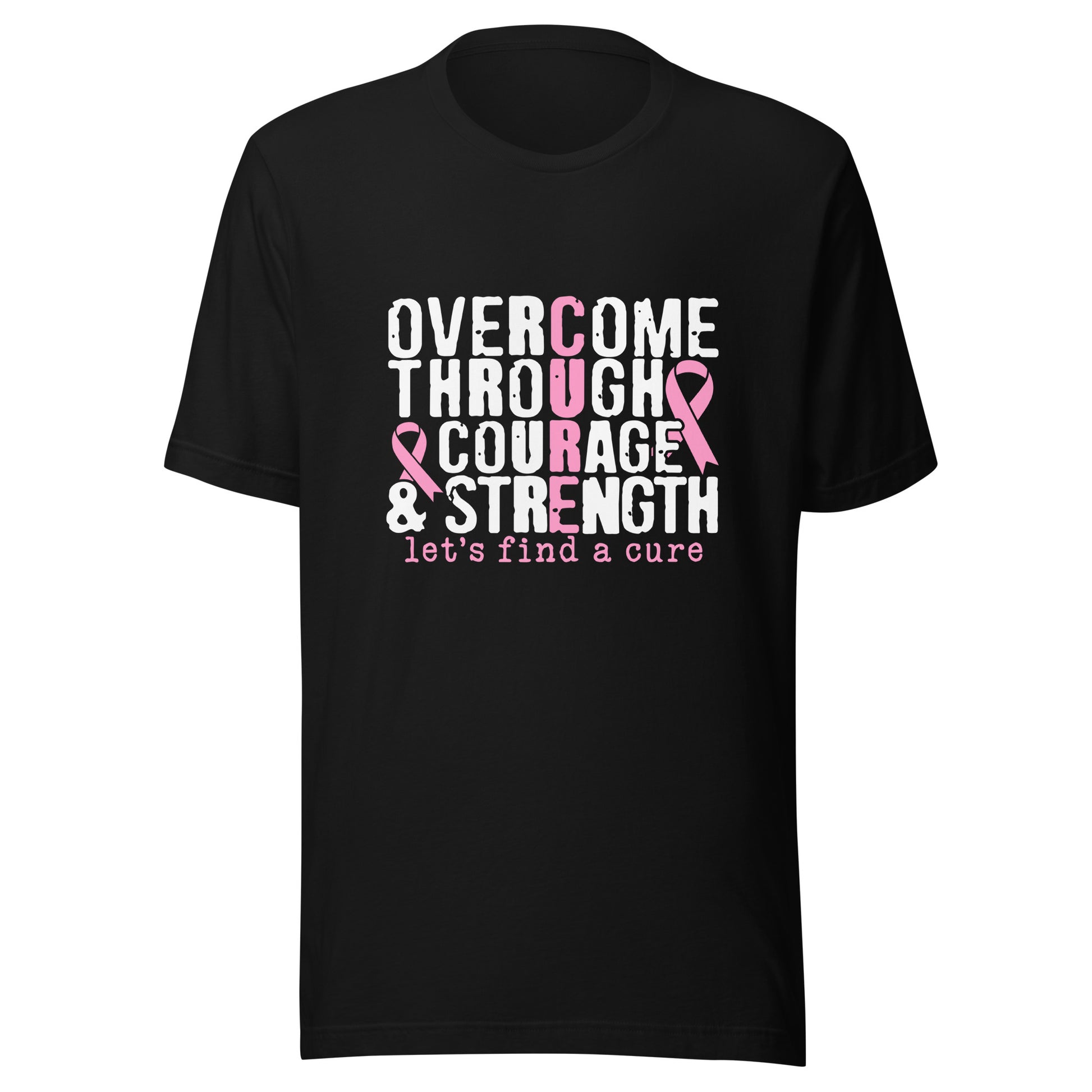 Overcome Through Courage Strength - Breast Cancer Awareness Pink Cancer Ribbon Support Unisex T-shirt