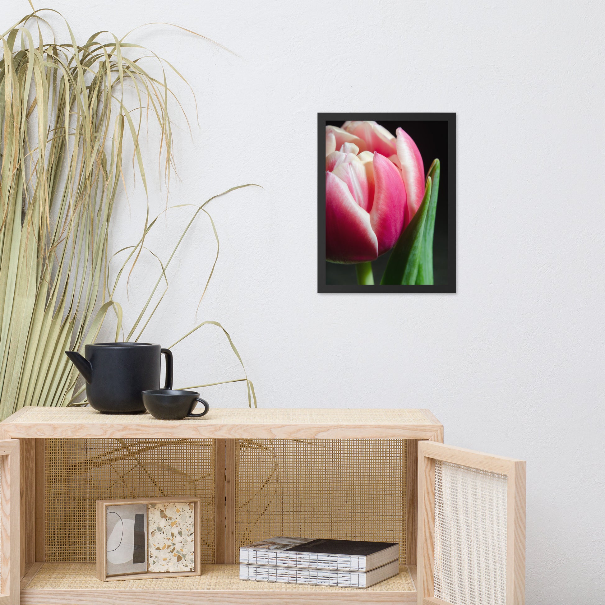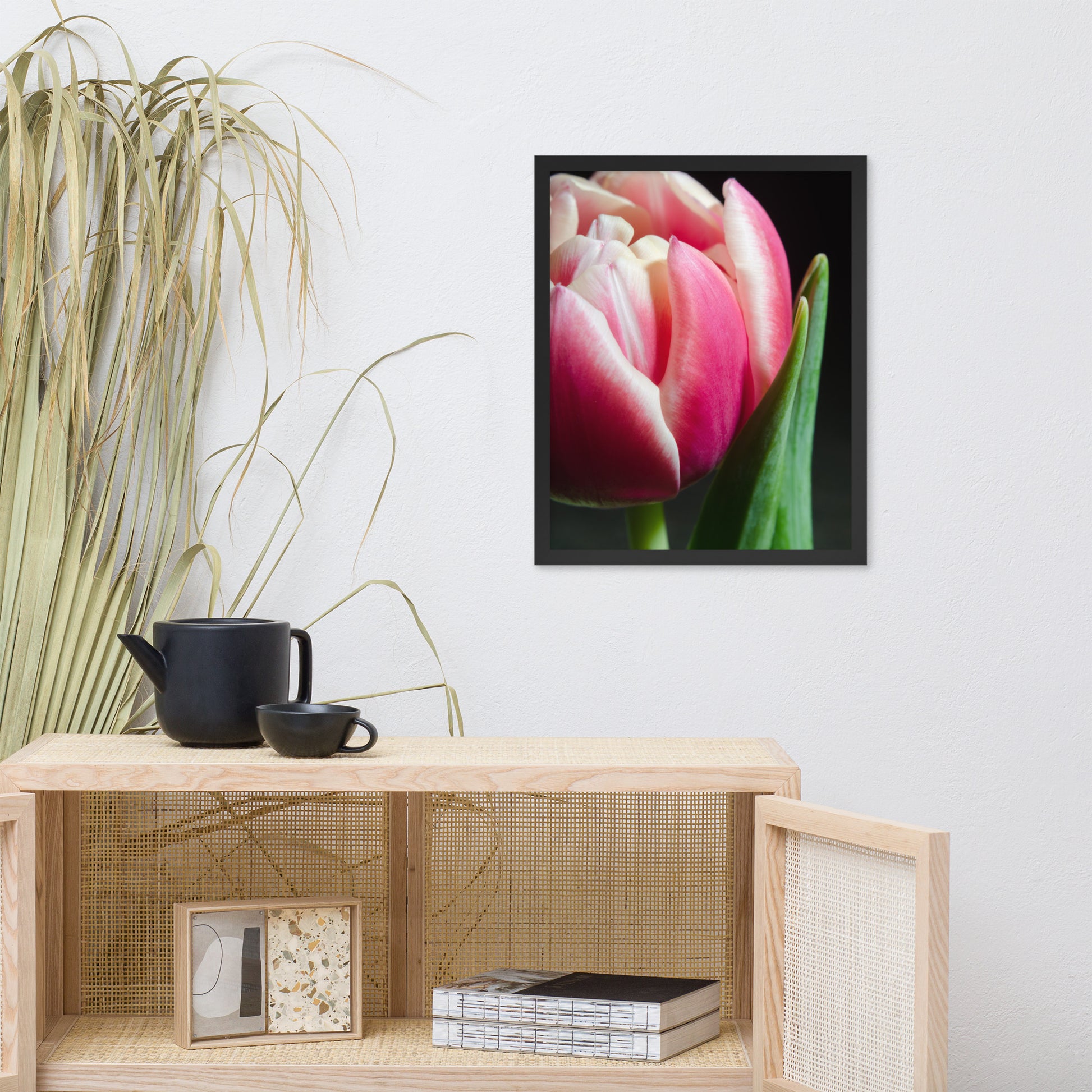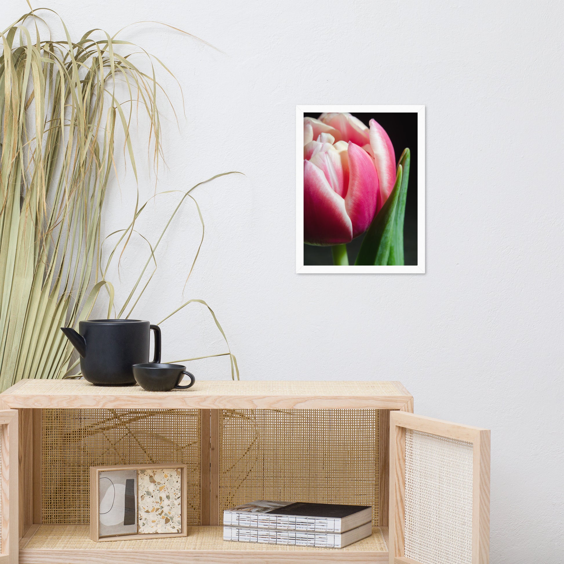 Pink and White Tulip Floral Nature Photo Framed Wall Art Print