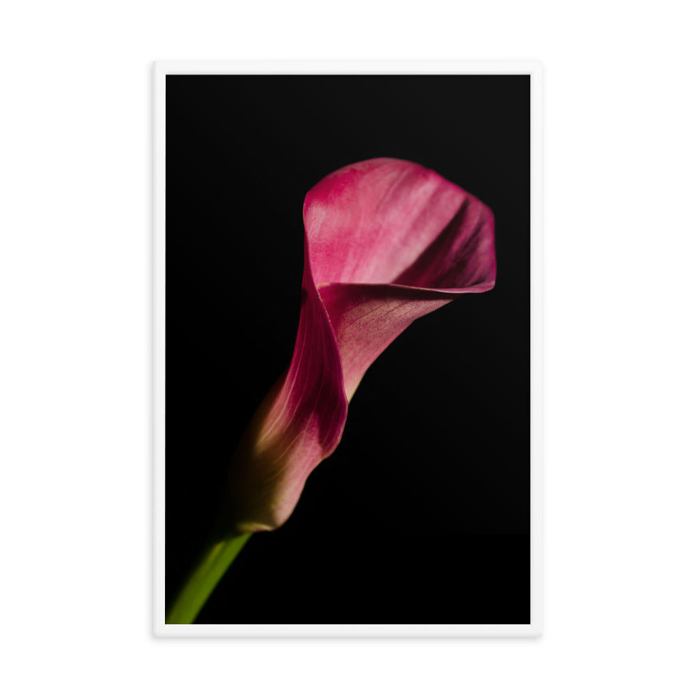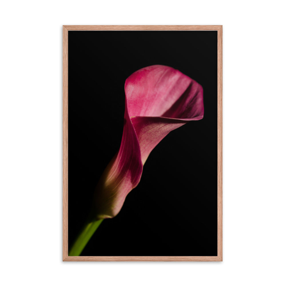 Order your framed wall art print of a pink calla lily flower on black today!
