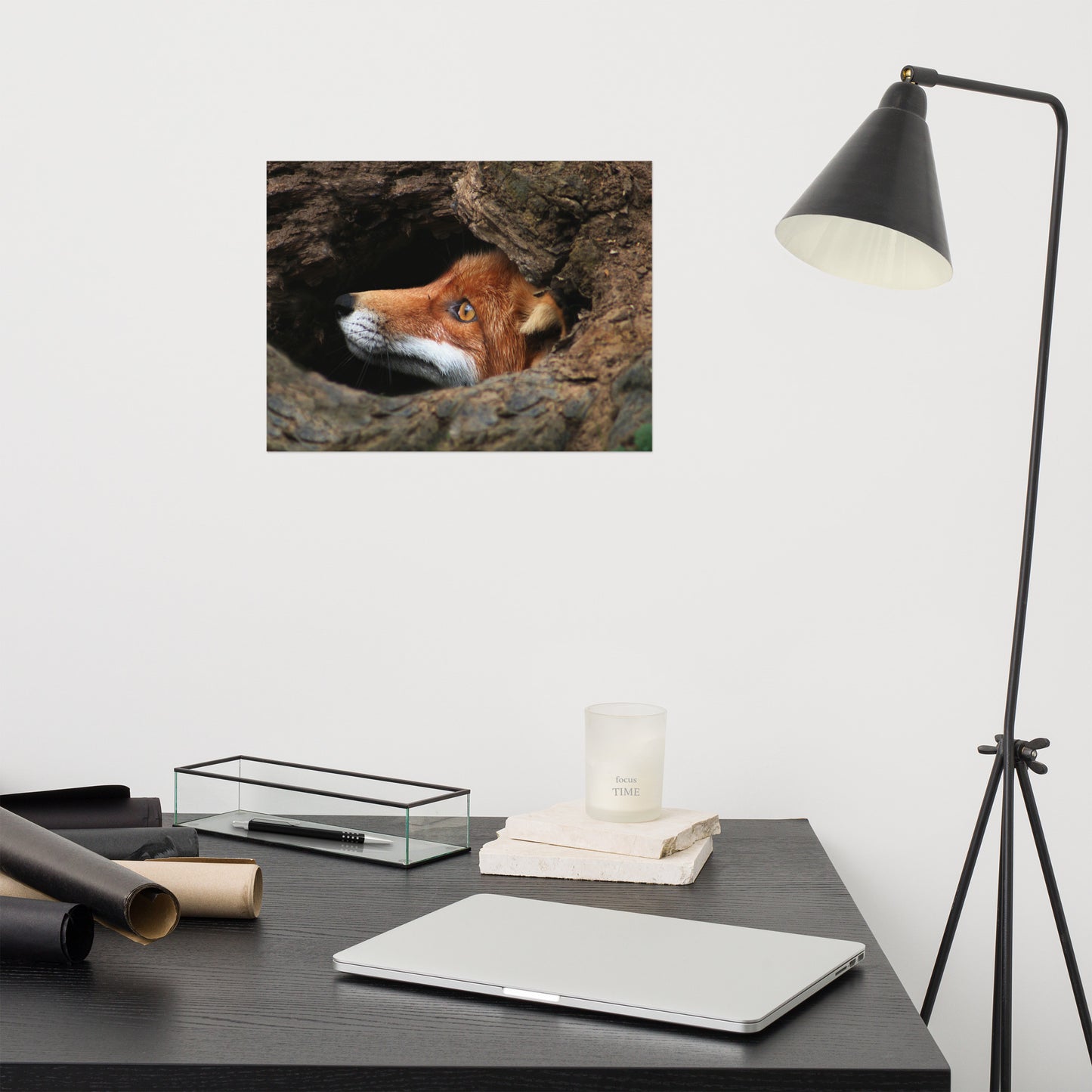 Woodland Creatures Wall Art: Portrait of Adult Red Fox Face In Den - Animal / Wildlife / Nature Photograph - Loose / Frameable / Unframed / Frameless Wall Art Print - Artwork