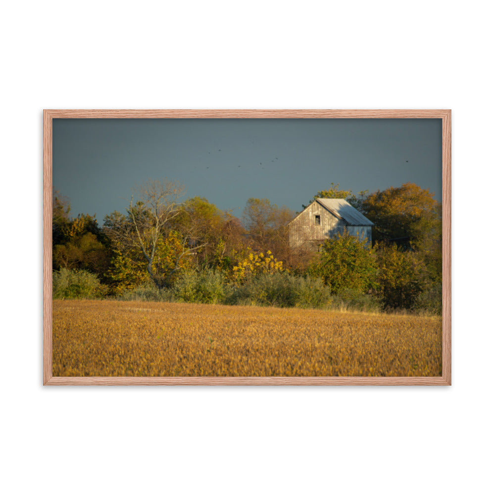 About this farm style wall art: Infuse your home with the captivating charm of the countryside with this stunning "Abandoned Barn in the Trees" framed photo wall art. This exquisite landscape photograph captures the timeless beauty of a weathered barn nestled amidst vibrant autumn foliage, evoking a sense of serenity and nostalgia.