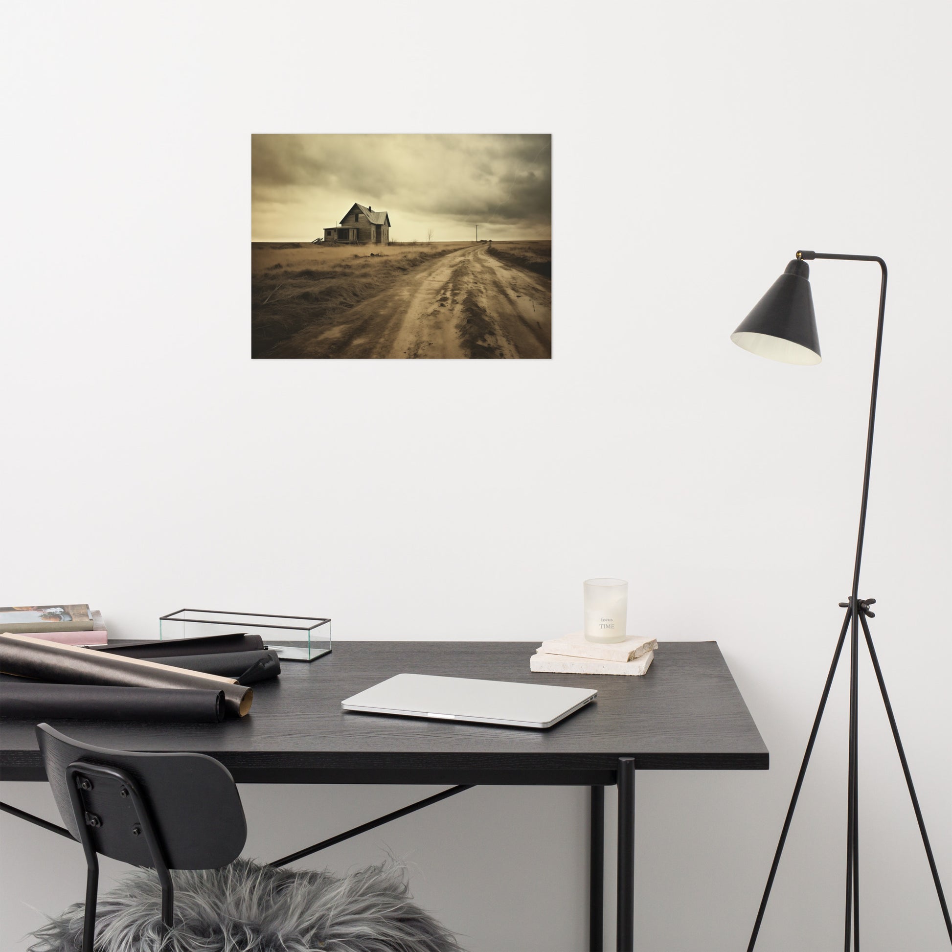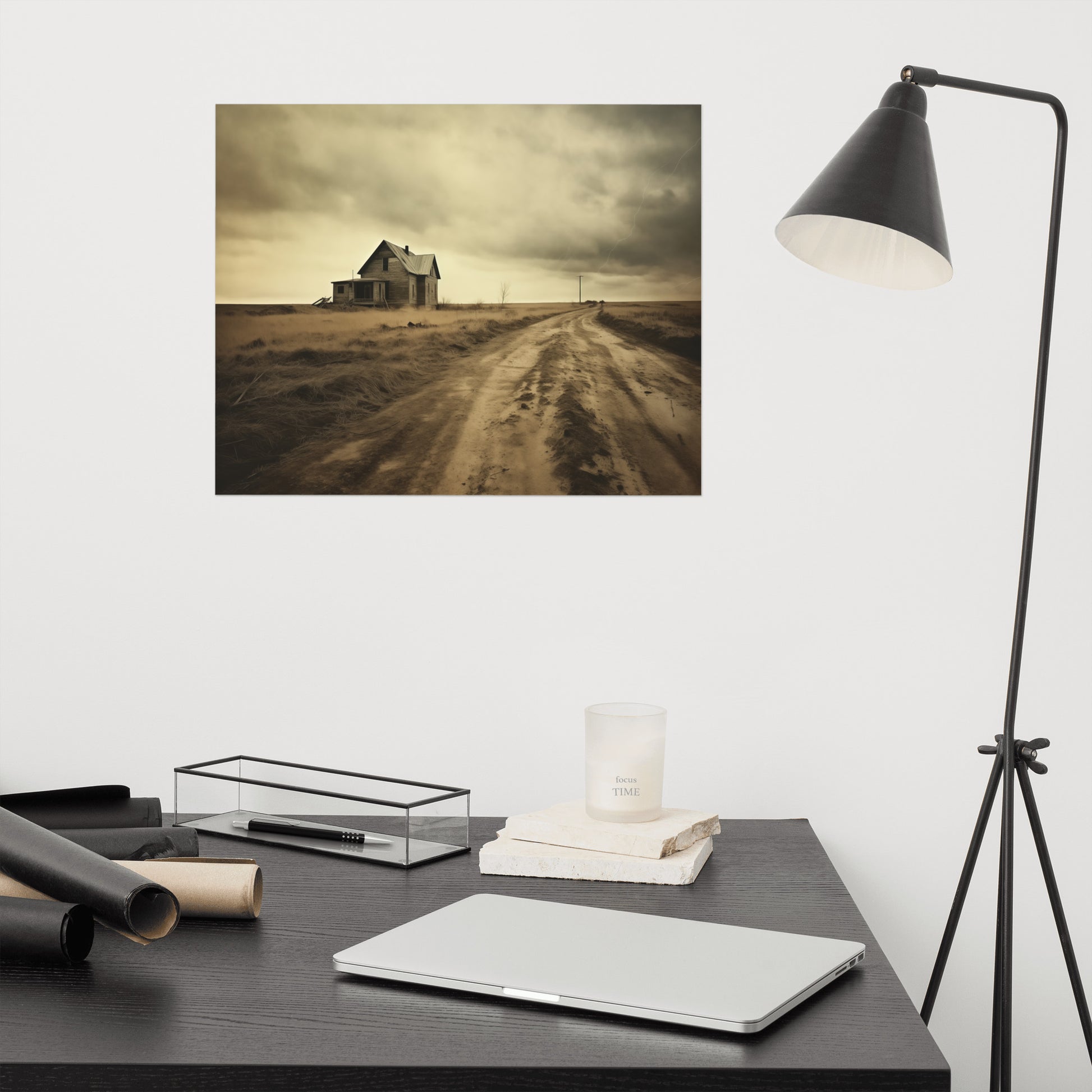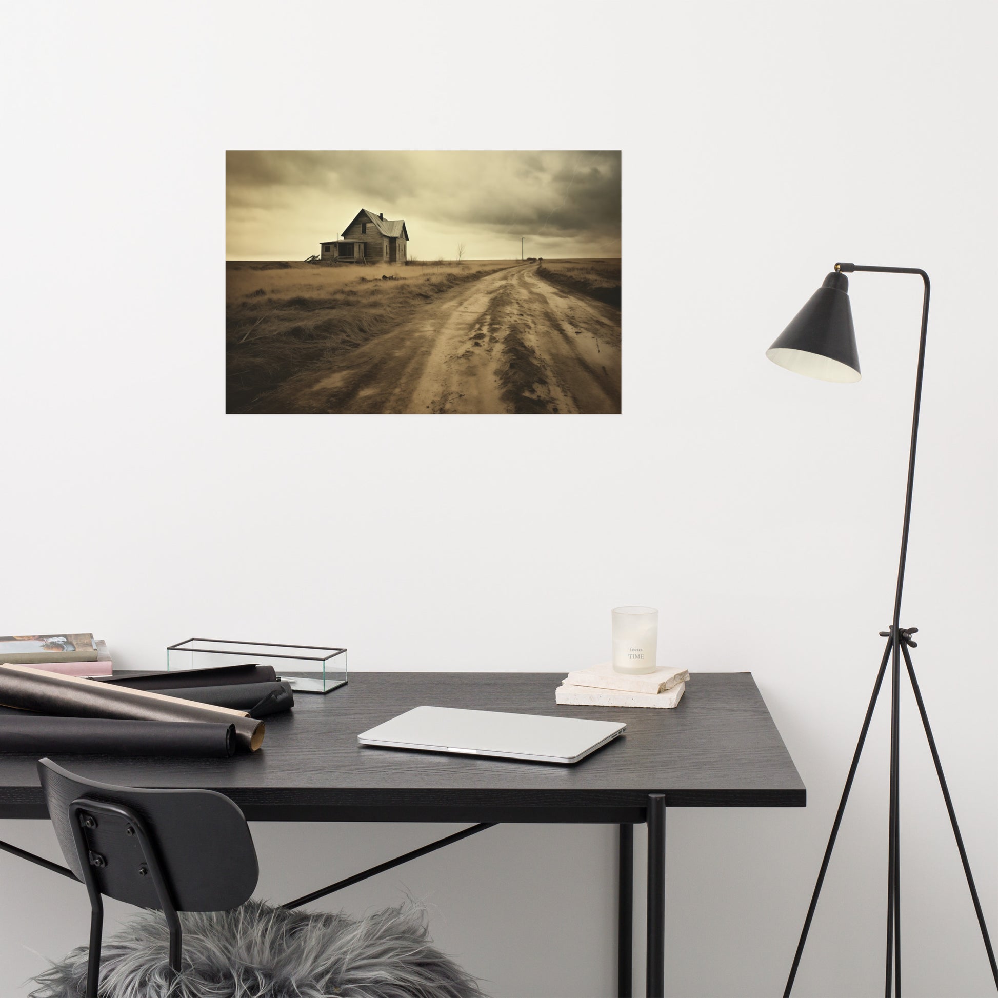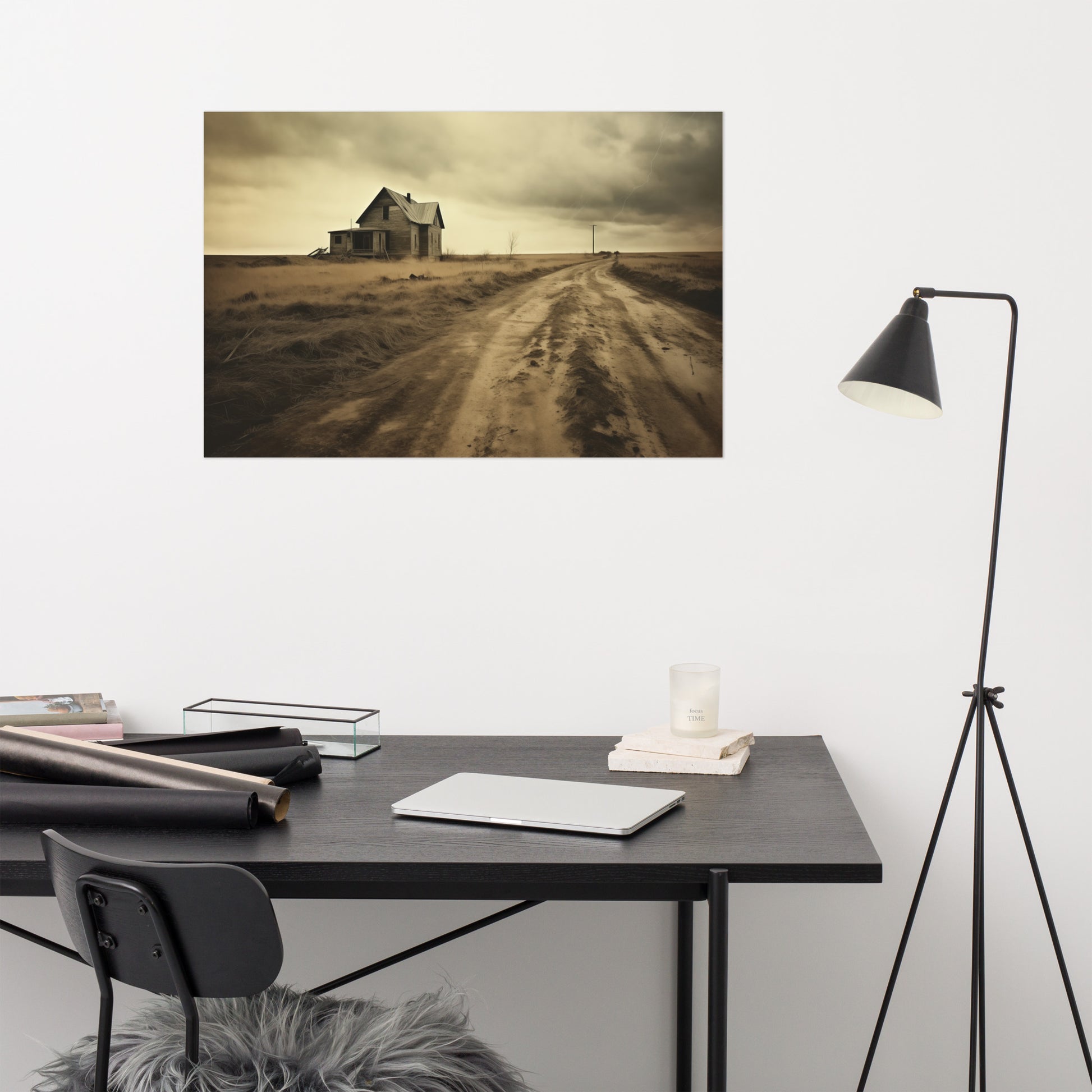This artwork would complement a variety of decorating styles, including rustic, farmhouse, or even gothic-inspired spaces. Its stark imagery and somber color palette would fit seamlessly into rooms with dark, moody tones and antique furnishings. The desolate landscape could also add a touch of dramatic beauty to a minimalist or industrial-style loft. The artwork could serve as a focal point in a living room, bedroom, or study, bringing a sense of quiet contemplation and solitude to the space.