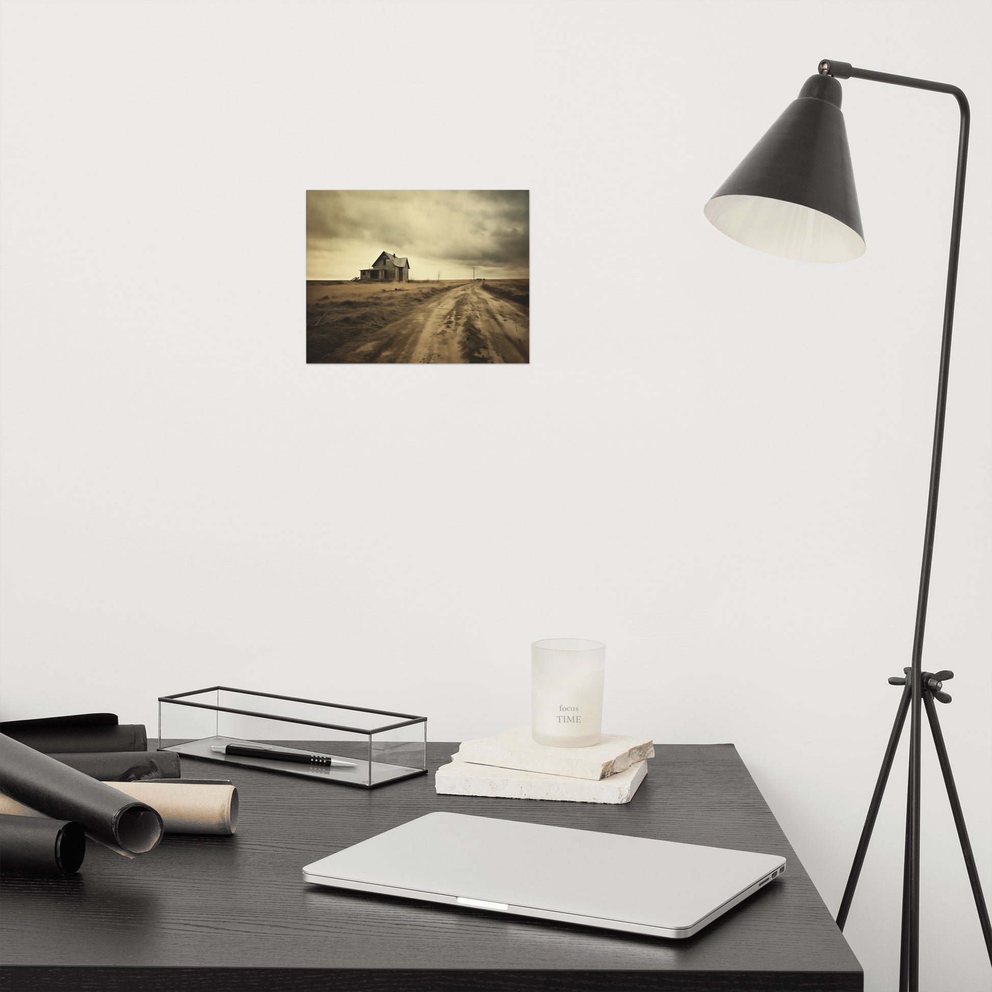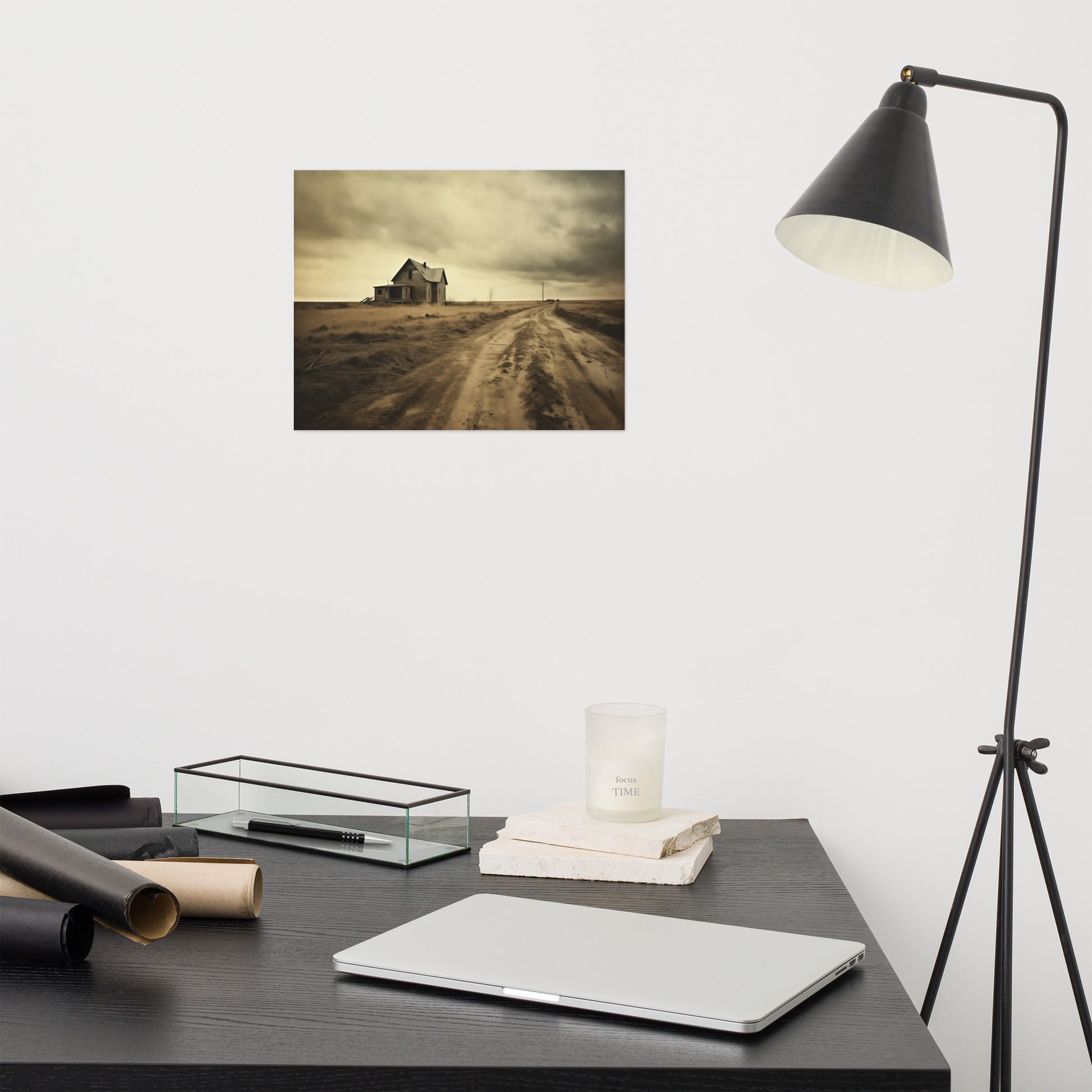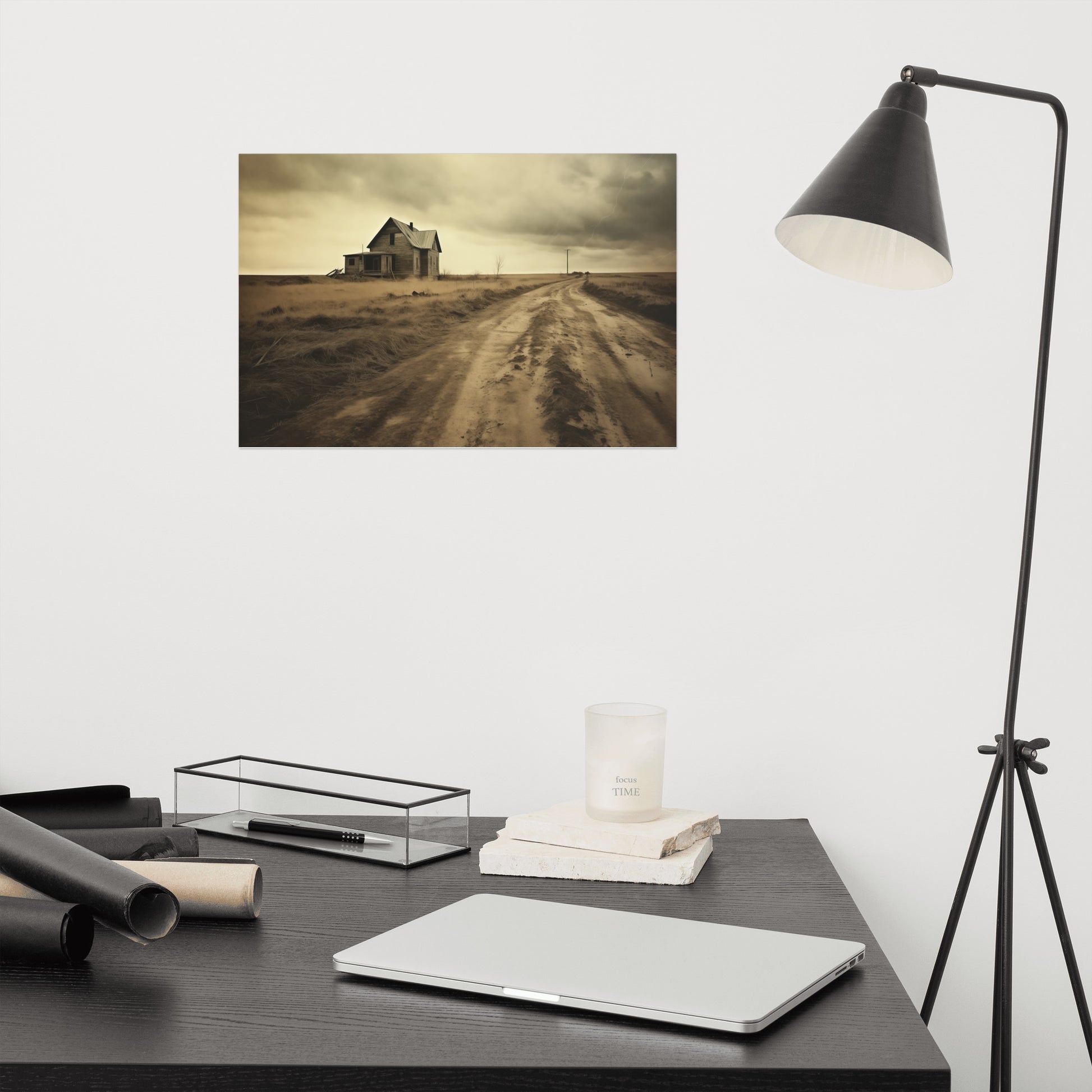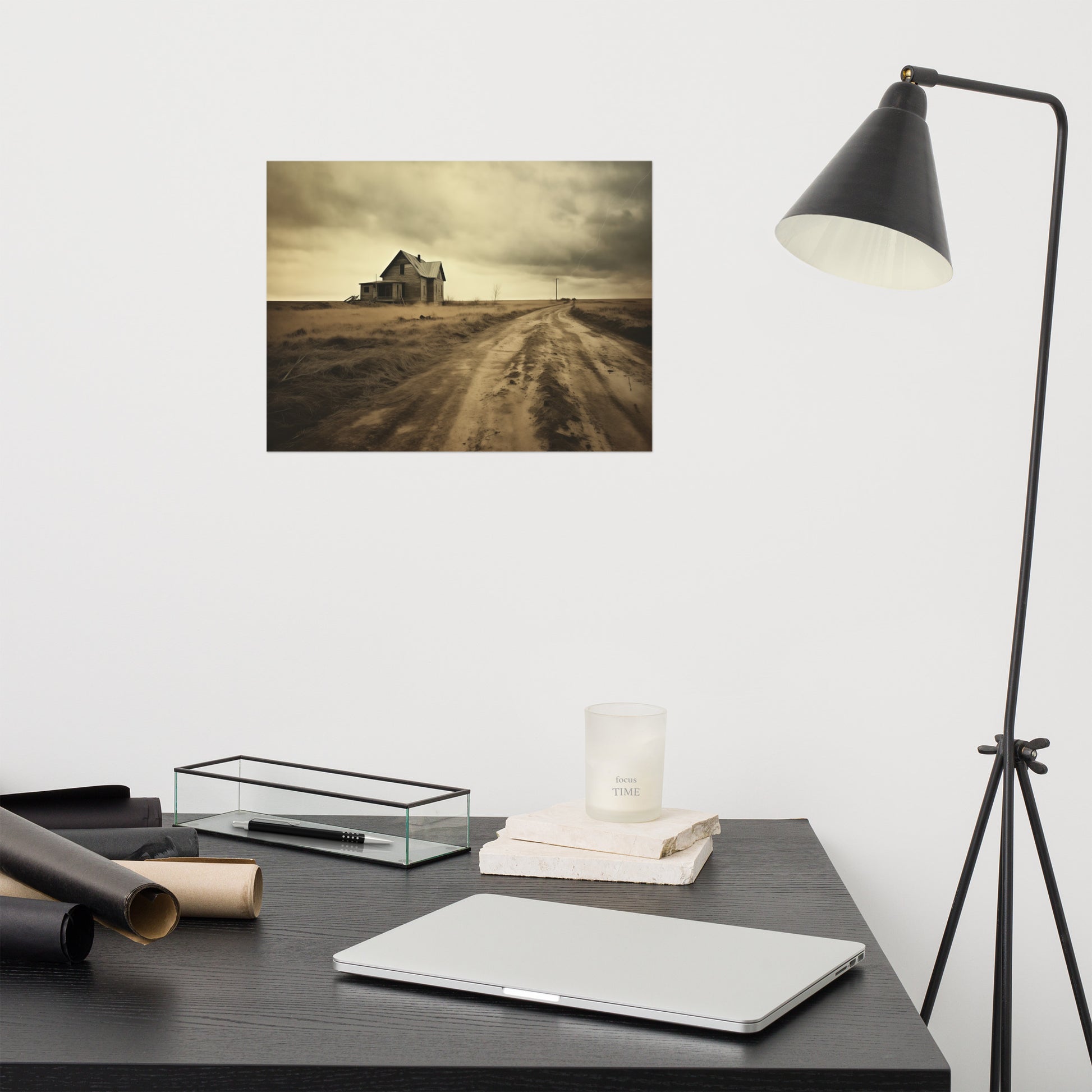 This artwork would complement a variety of decorating styles, including rustic, farmhouse, or even gothic-inspired spaces. Its stark imagery and somber color palette would fit seamlessly into rooms with dark, moody tones and antique furnishings. The desolate landscape could also add a touch of dramatic beauty to a minimalist or industrial-style loft. The artwork could serve as a focal point in a living room, bedroom, or study, bringing a sense of quiet contemplation and solitude to the space.