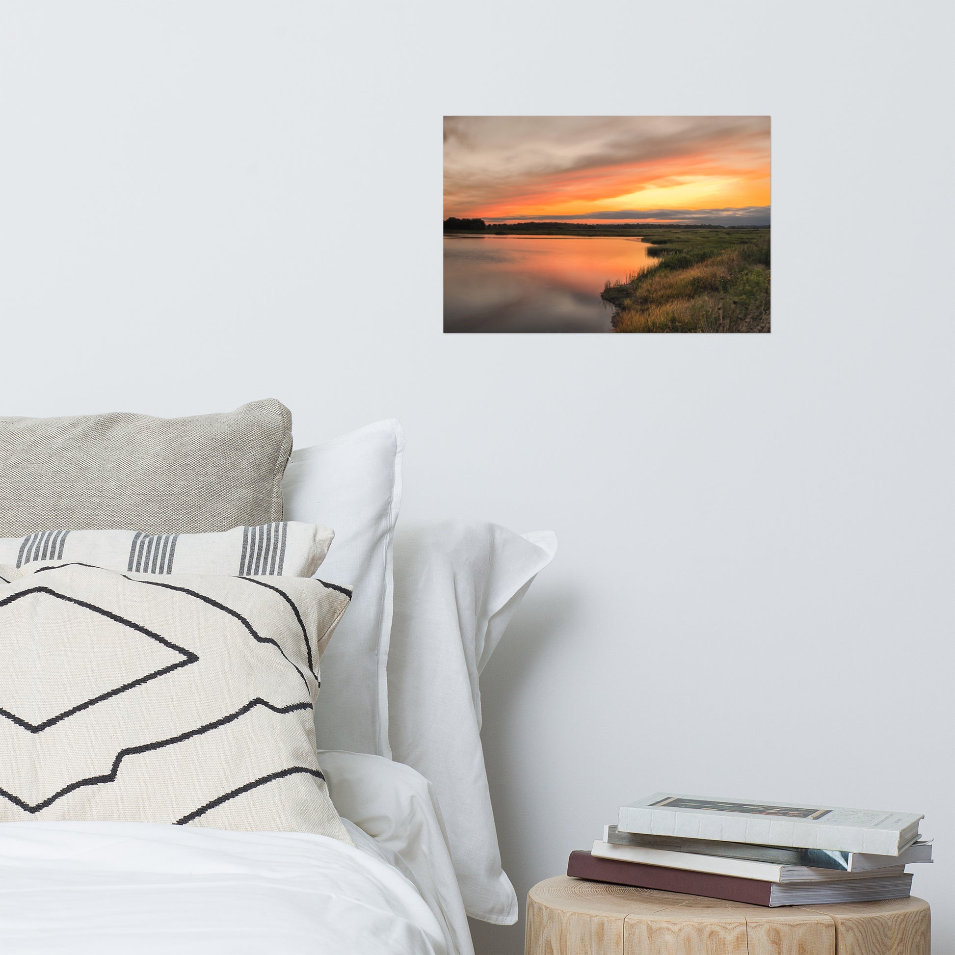 Coastal Marsh Wall Art: Sunset Over Woodland Marsh - Beach / Seascape Nature / Landscape Photograph - Loose / Frameable / Unframed / Frameless Print - Artwork