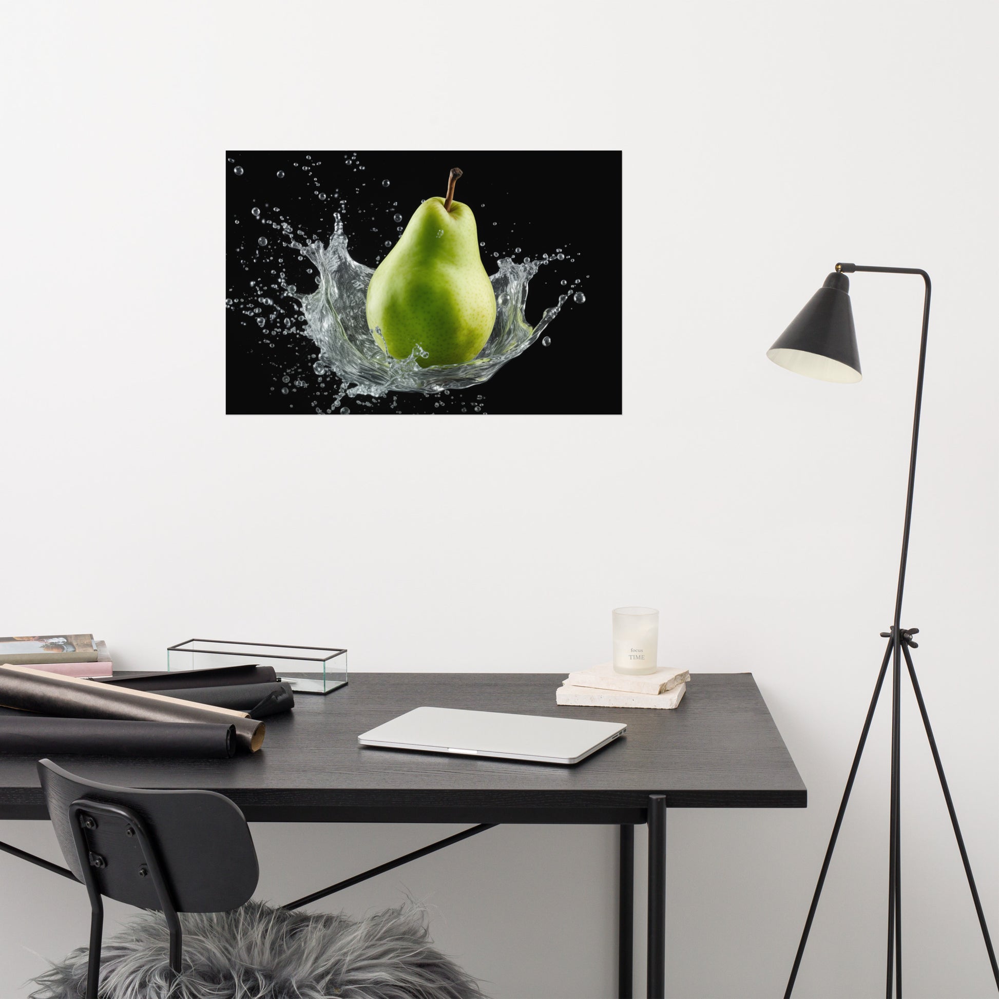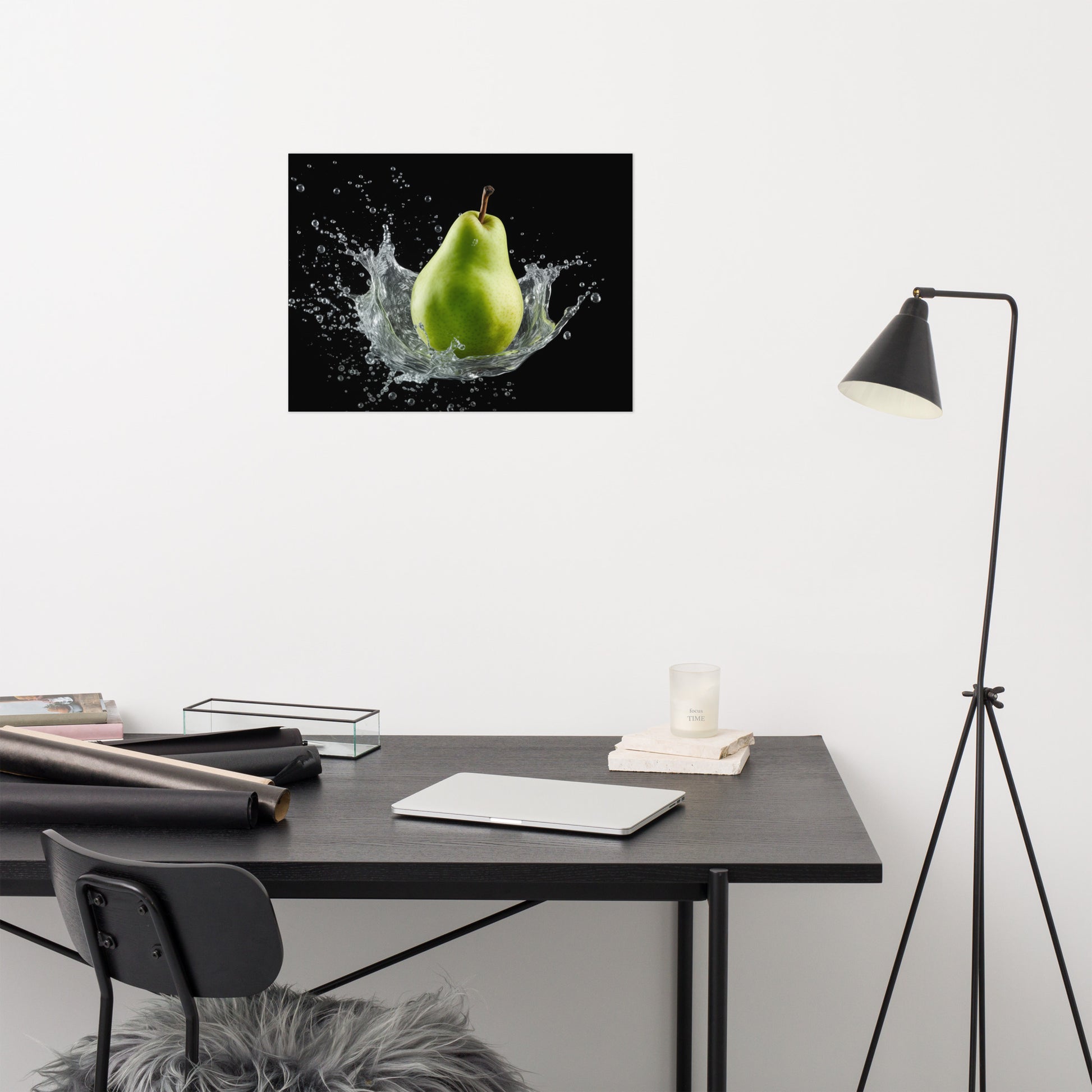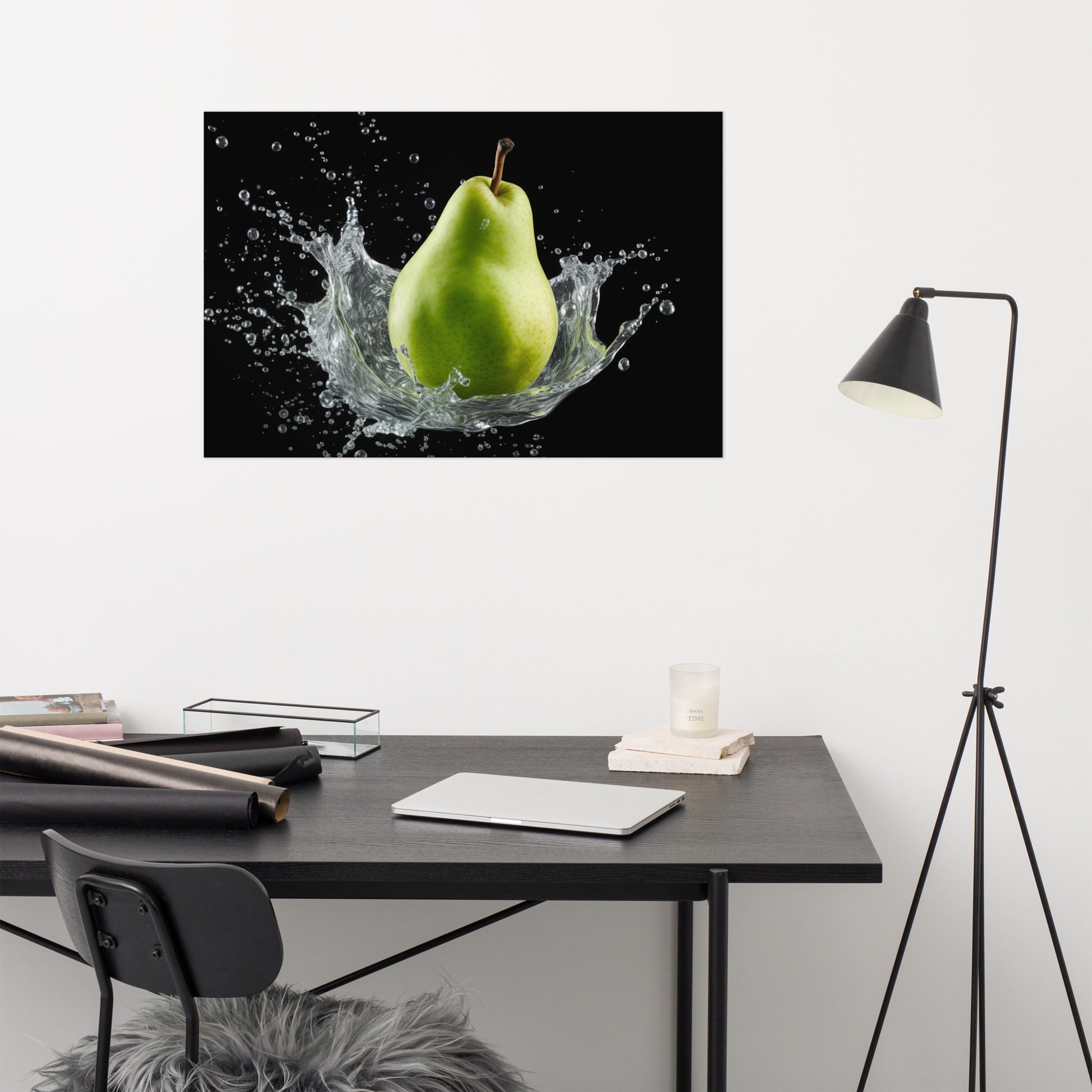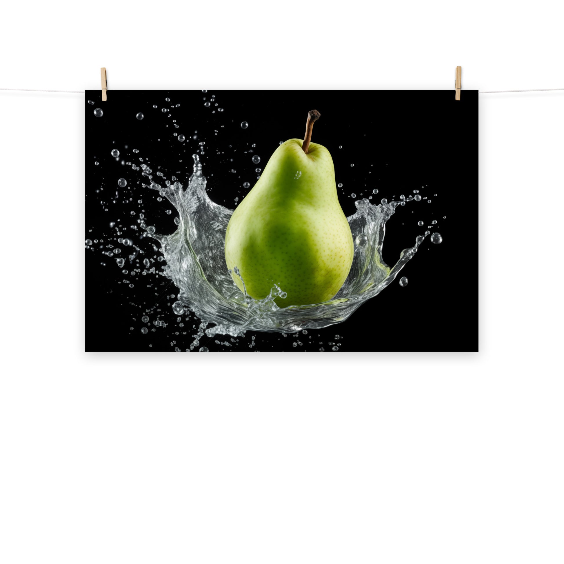 The Crisp Awakening Pear in Water Photorealism - Digital Artwork Loose Art Print