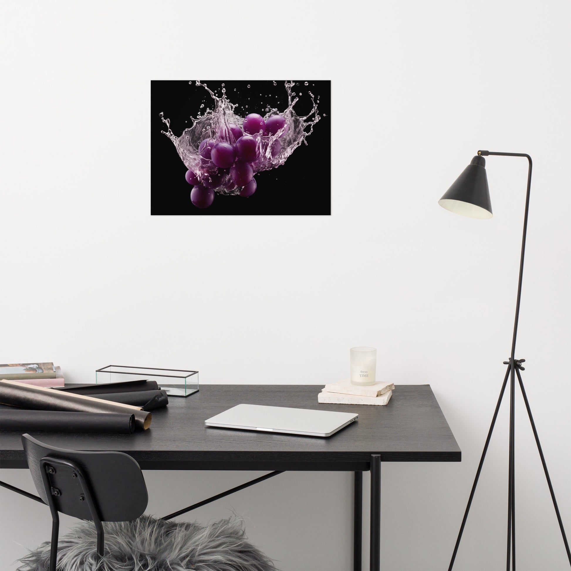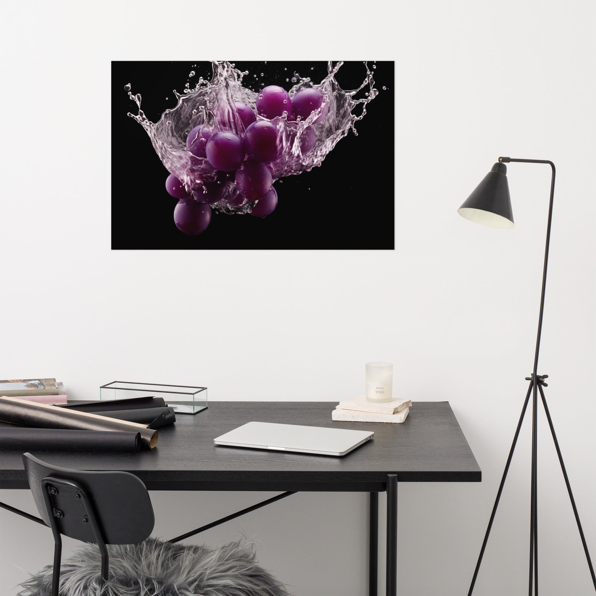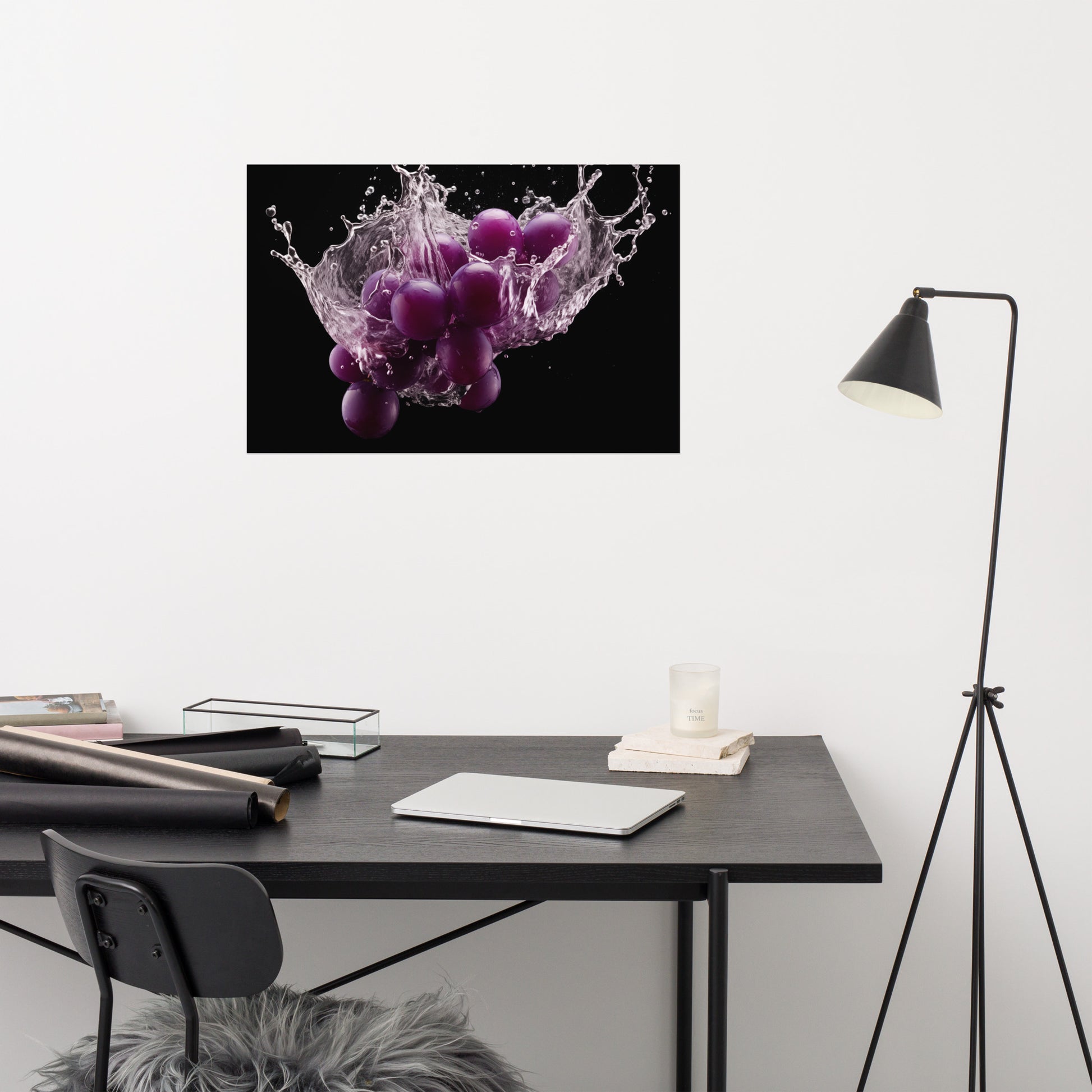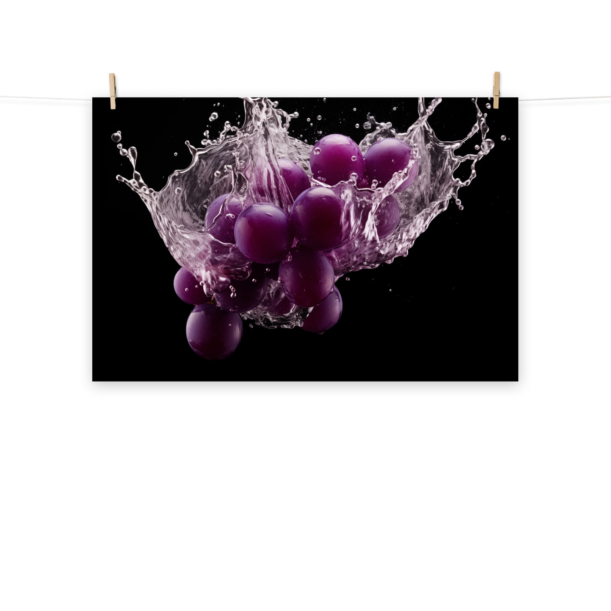 The Juicy Explosion Purple Grapes in Water Photorealism - Digital Artwork Unframed Art Print