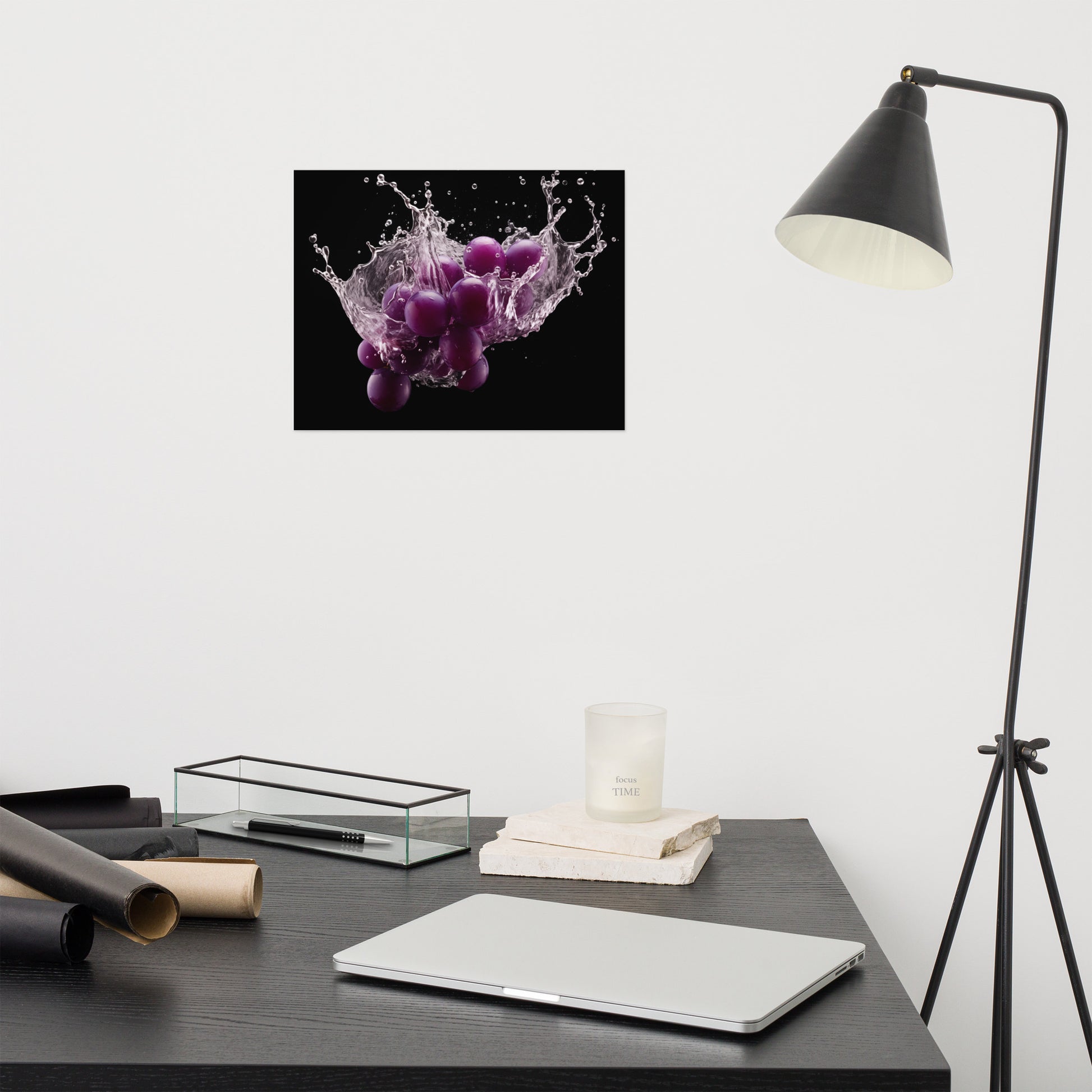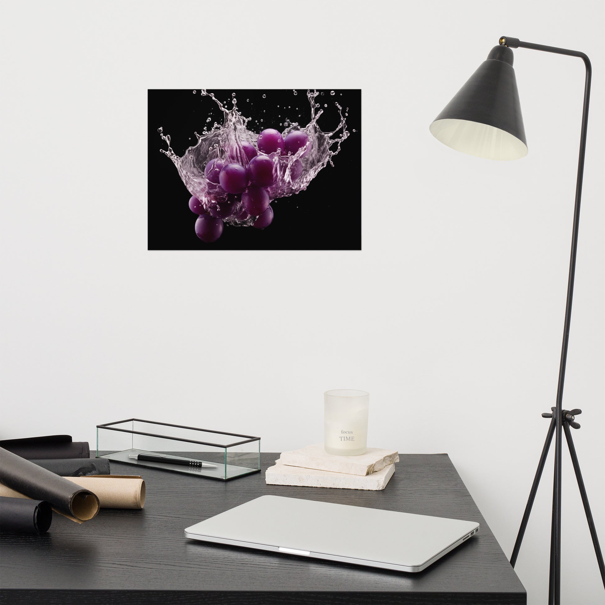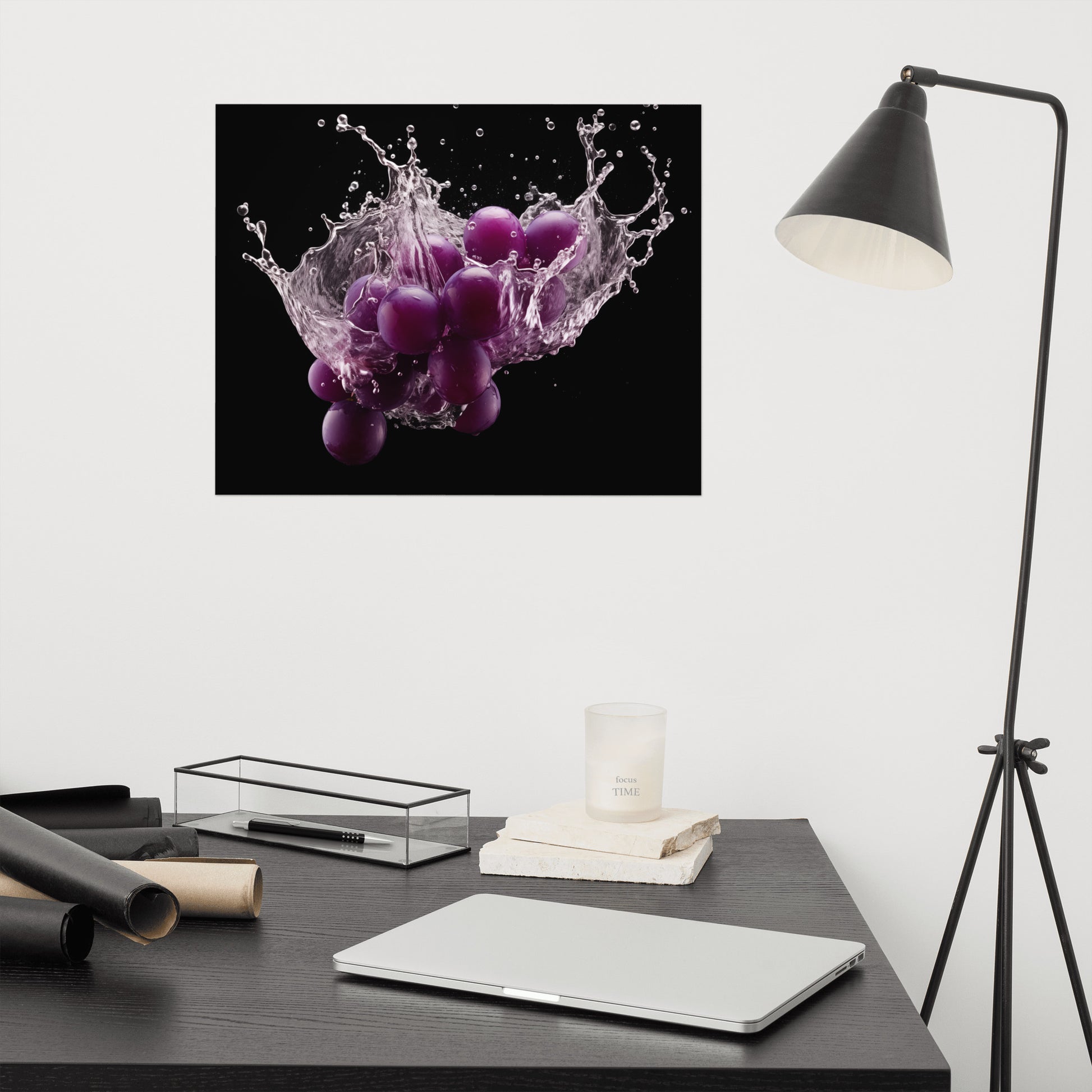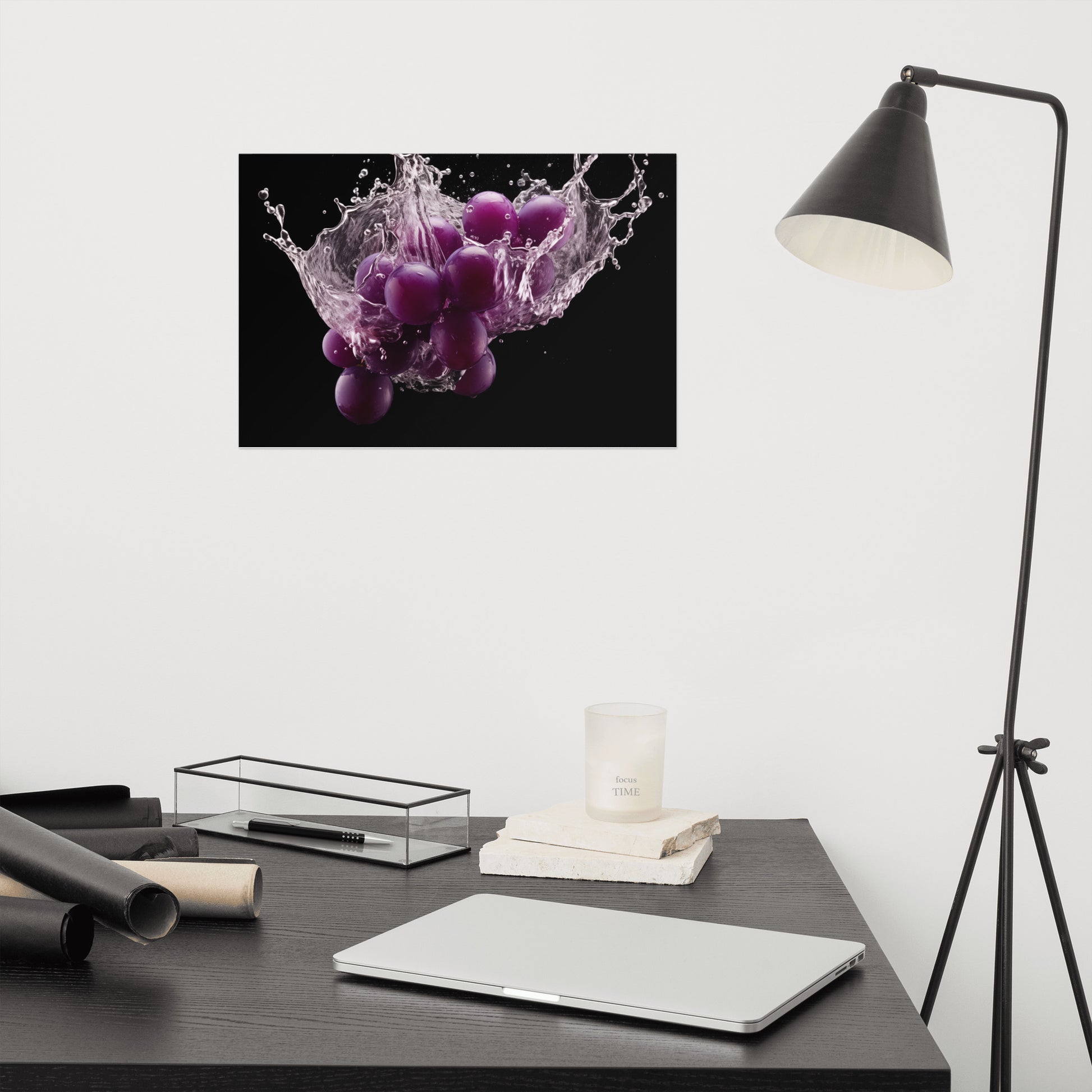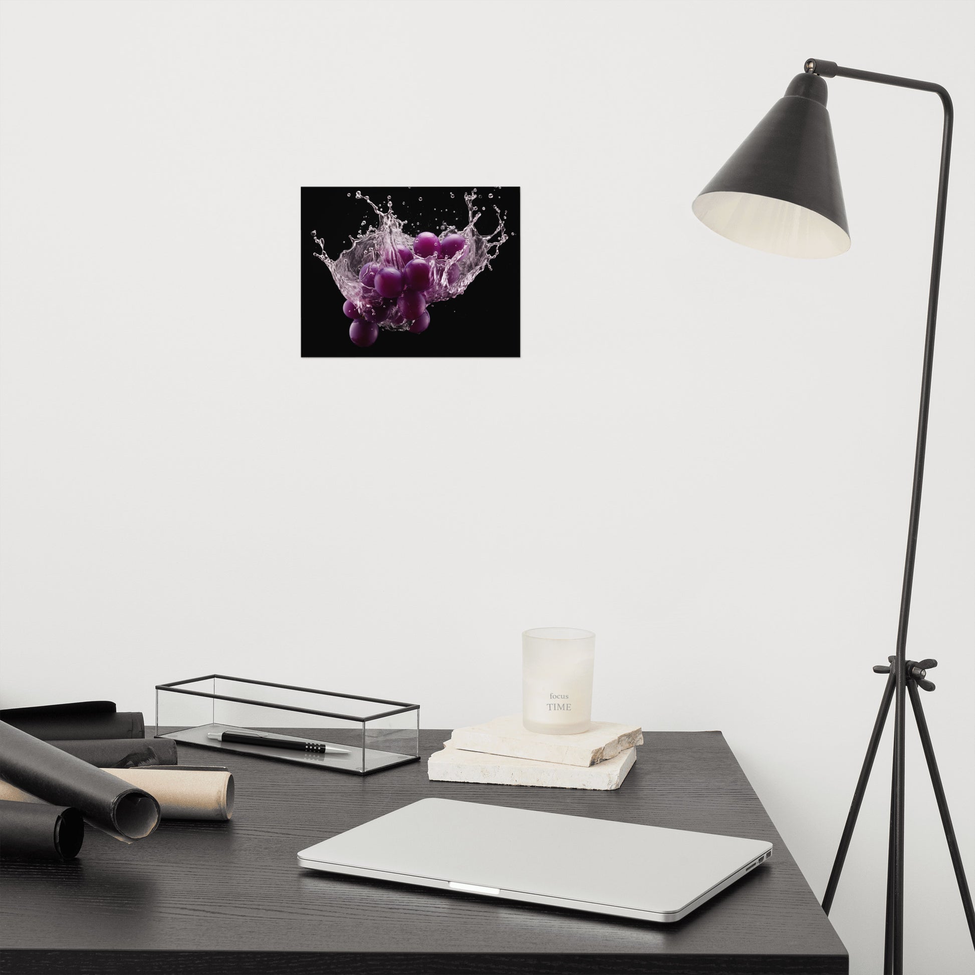 The Juicy Explosion Purple Grapes in Water Photorealism - Digital Artwork Unframed Art Print