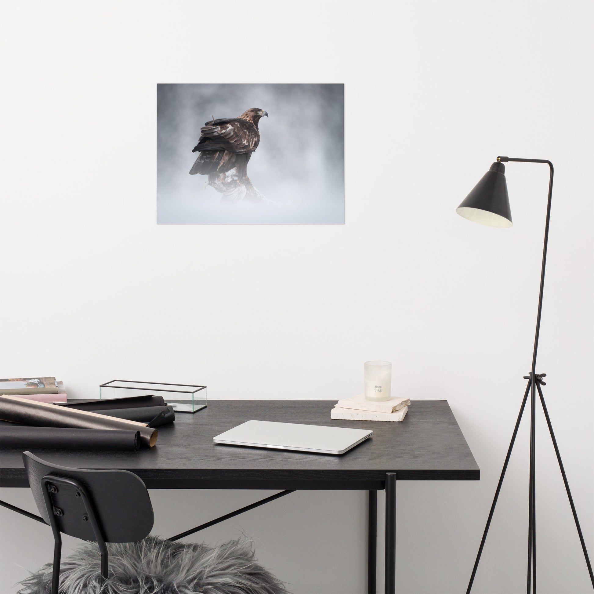Rustic Bird Wall Art: Watchful Brown Golden Eagle In The Mist - Animal / Wildlife / Nature Photograph - Loose / Frameable / Unframed / Frameless Print - Artwork