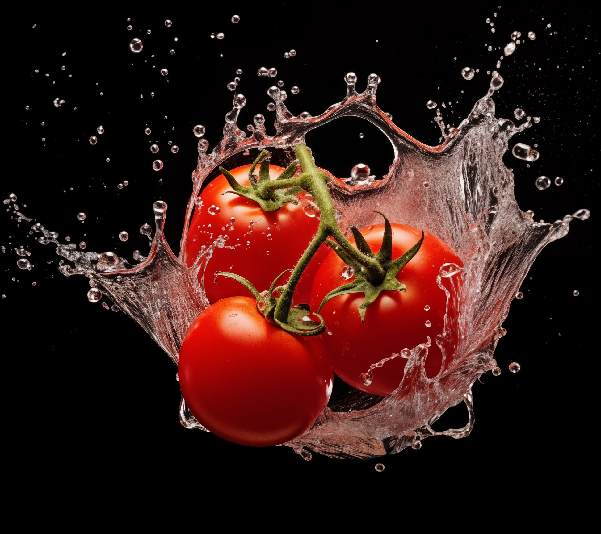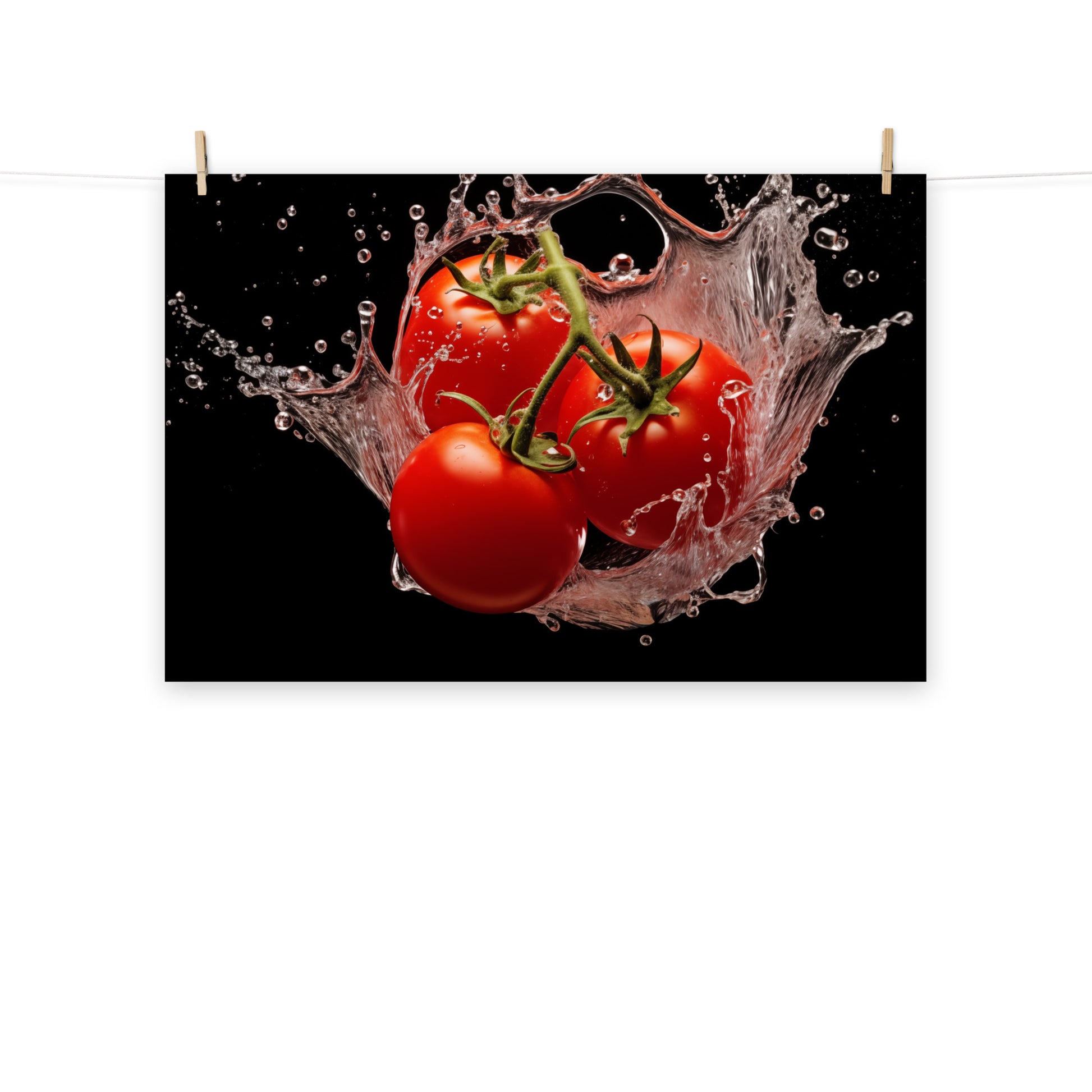 Tomato Splash - Tomatoes in Water Photorealism - Digital Artwork Loose Art Print