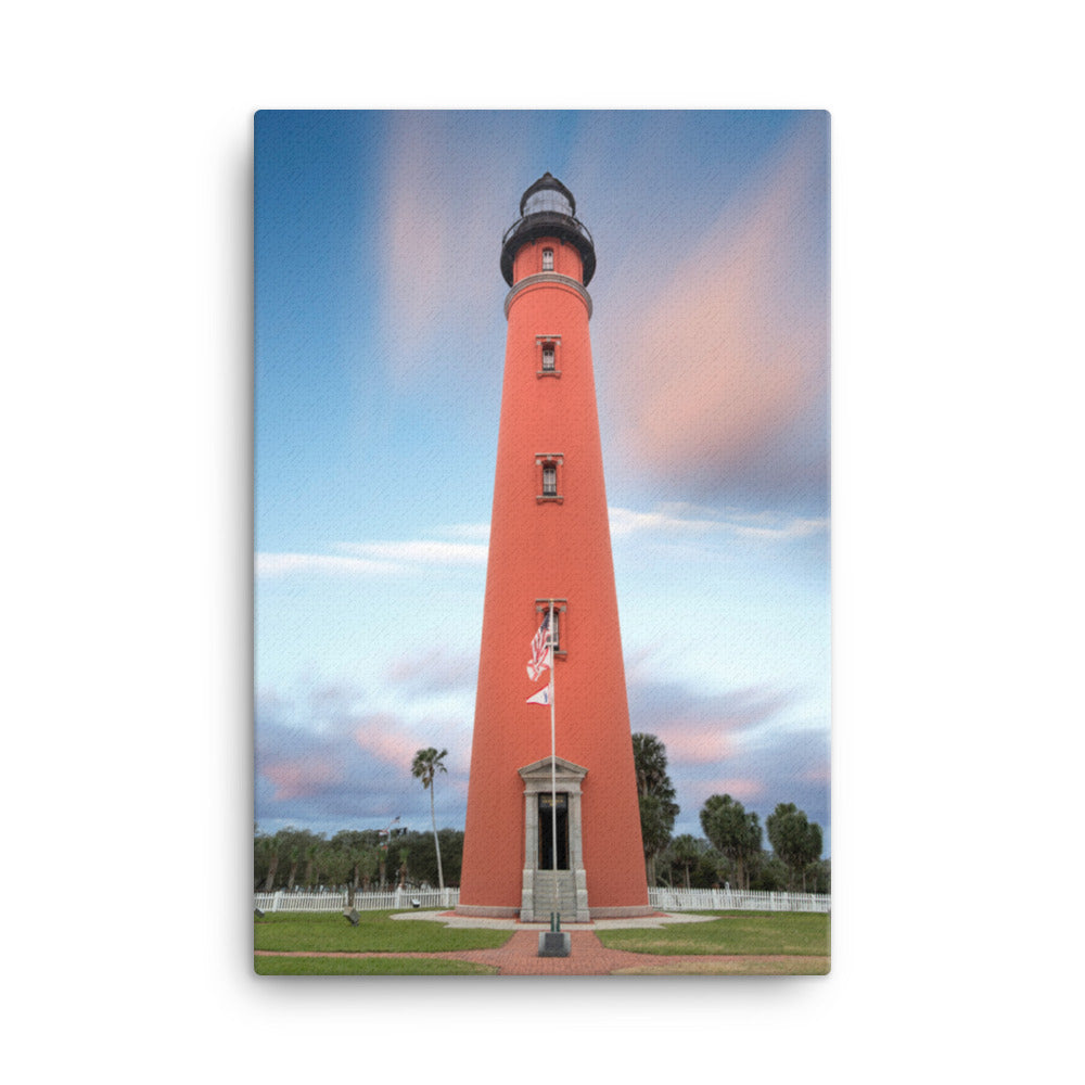 Whether you're a lover of lighthouses, coastal landscapes, or simply appreciate photography, this print is sure to captivate your senses and transport you to the tranquil shores of the Atlantic Coast. Bring the magic of the sunset and the timeless allure of the Ponce De Leon Lighthouse into your space with this exquisite canvas print.