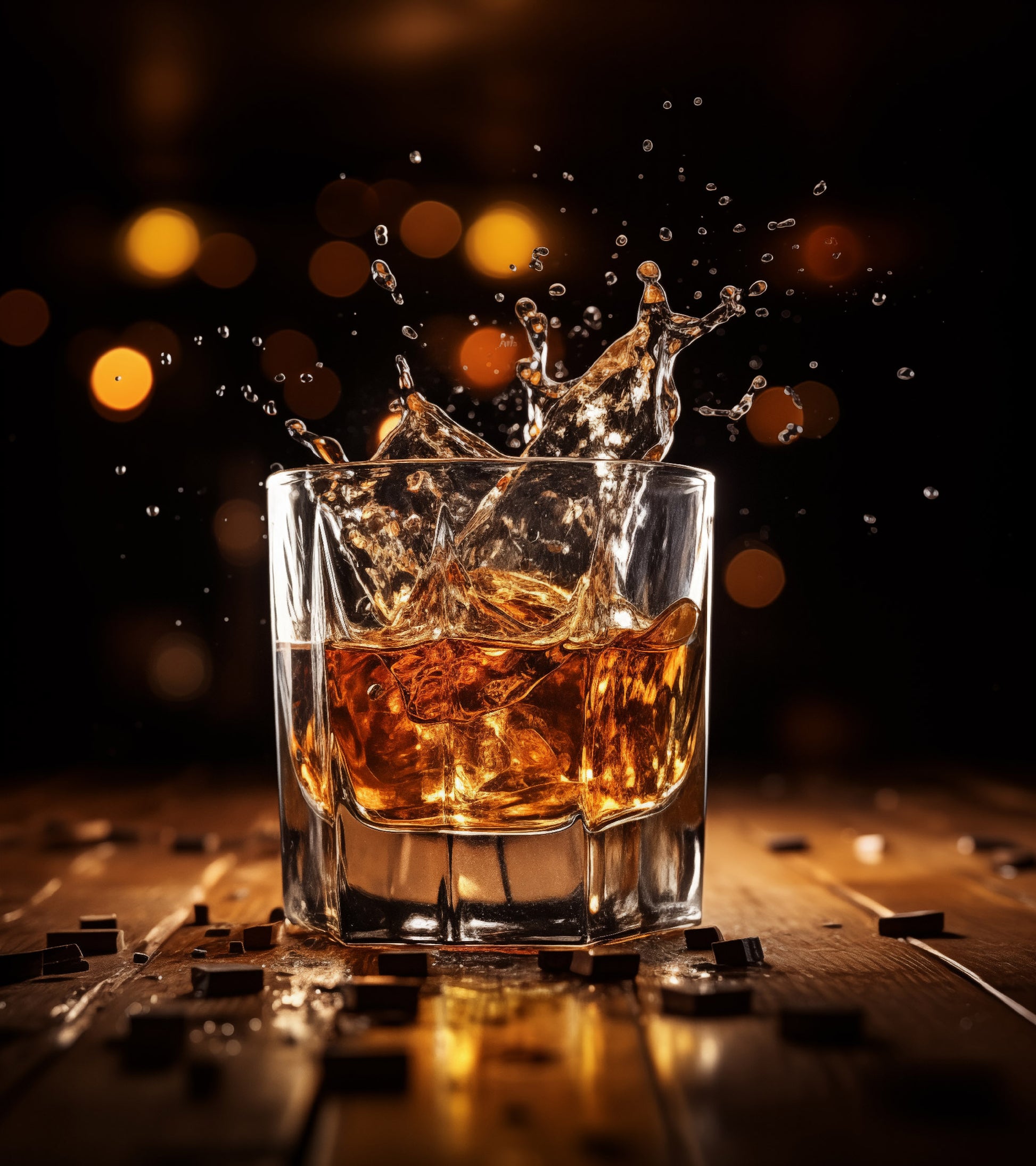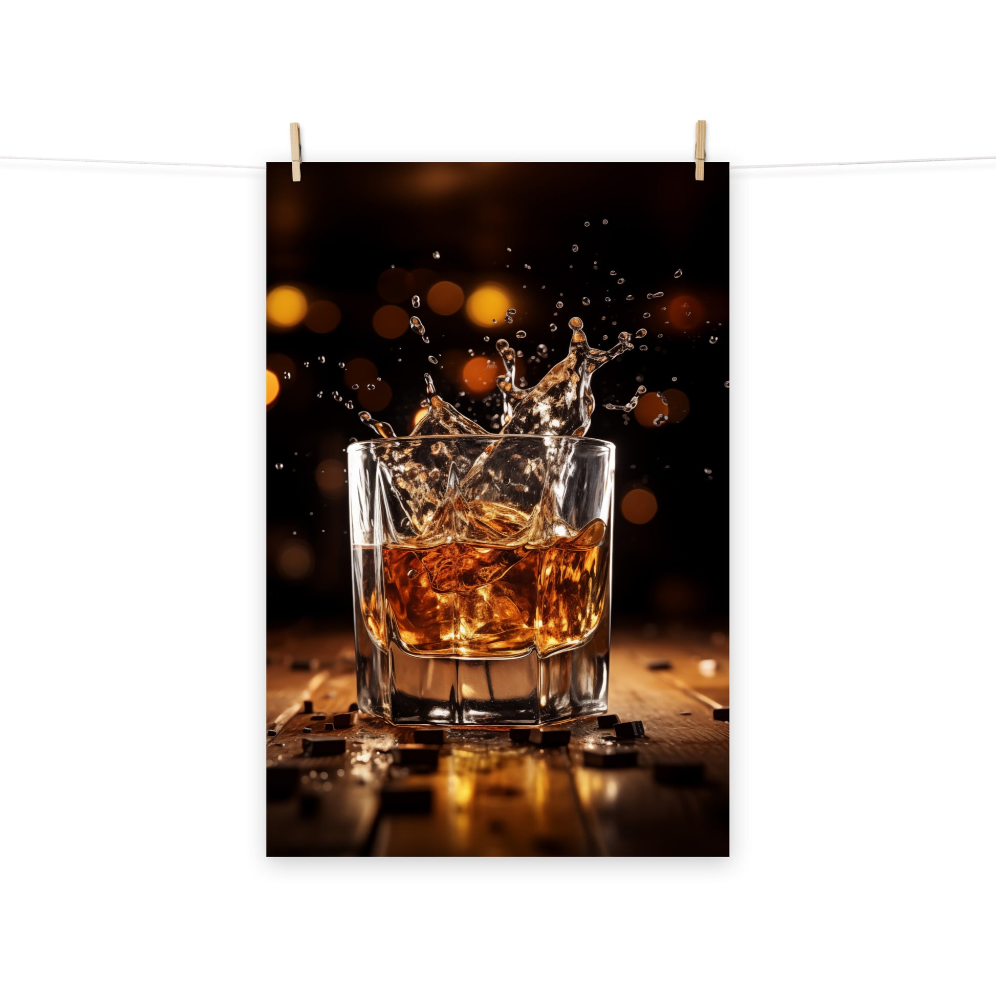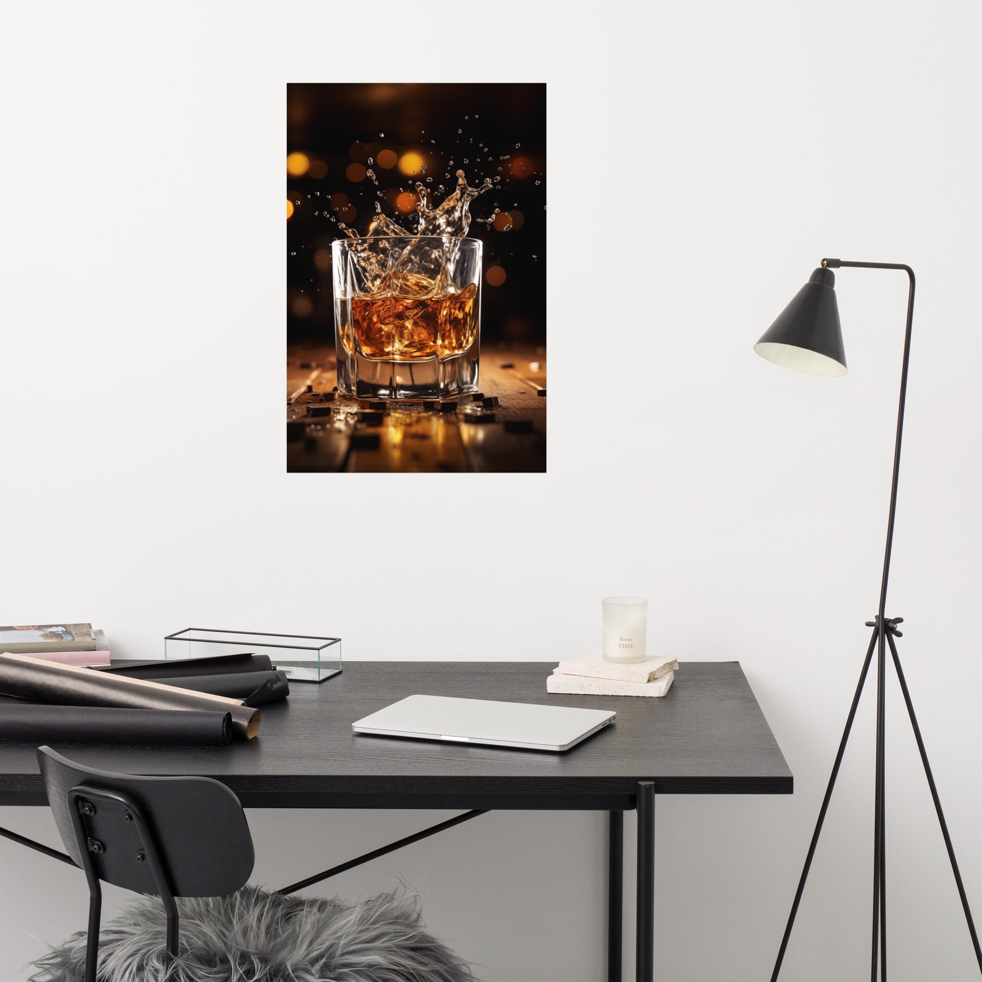 "Whisky Splash" is a digitally created, photorealistic artwork that captures the dynamic energy of a whisky glass in motion. The image showcases a crystal tumbler filled with amber liquid, as ice cubes collide and create a dramatic splash. The artist's meticulous attention to detail is evident in the realistic depiction of the liquid, ice, and the subtle reflections and refractions of light. This captivating artwork adds a touch of excitement and sophistication to any space.