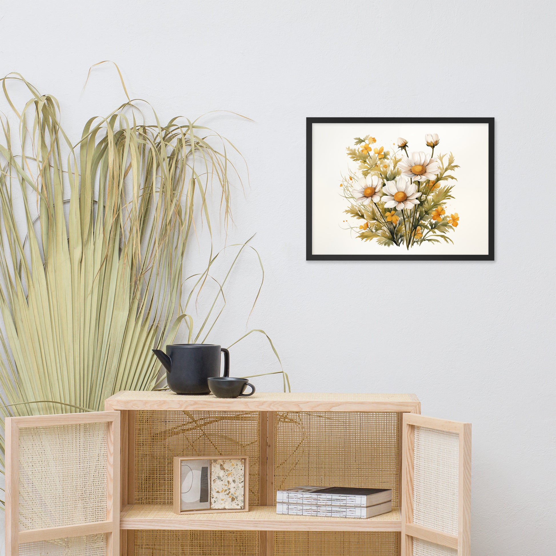 This framed art print is a testament to the enduring appeal of floral art, offering a timeless elegance that transcends trends. Its high-quality printing and framing ensure that it will be a cherished piece for years to come, bringing a touch of nature's harmony to your home. Let "Harmony Daisies" transform your space into a sanctuary of peace and beauty, where the simple elegance of wildflowers can be enjoyed every day.