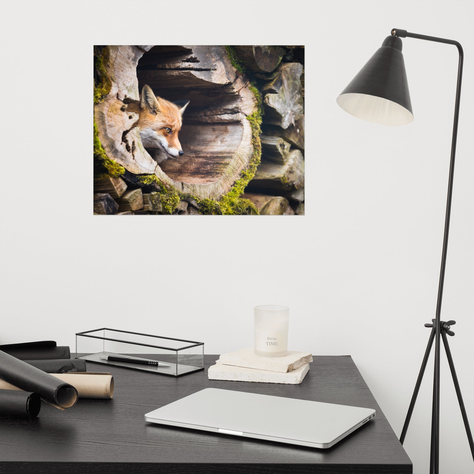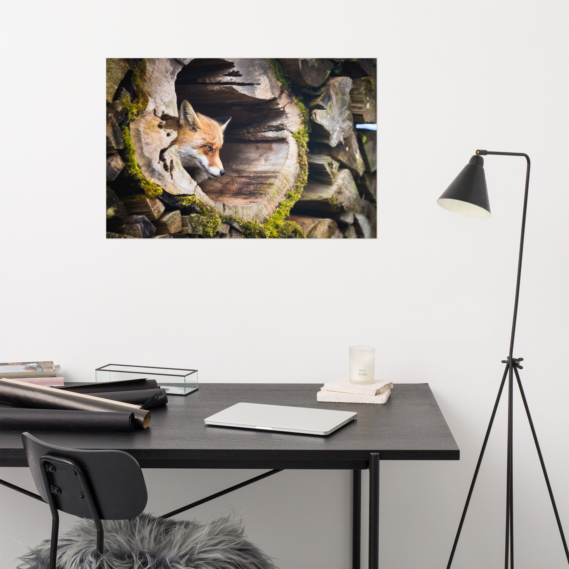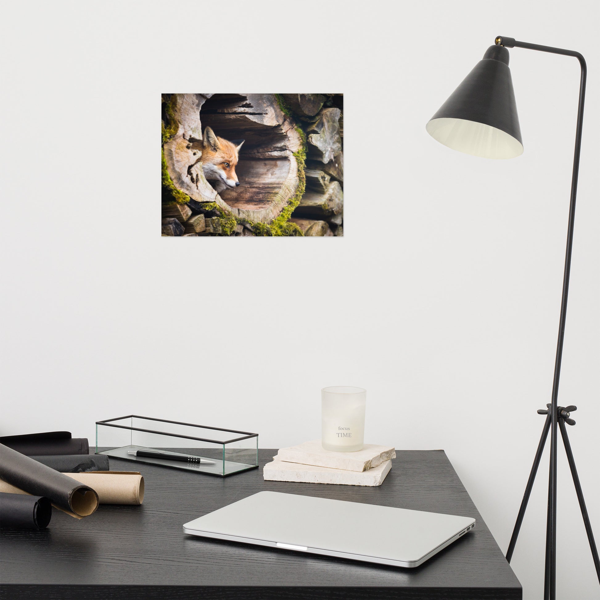 Wall Art Wildlife: Red Fox In Log Mossy Den - Animal / Nature Photograph - Loose / Frameable / Unframed / Frameless Print - Artwork