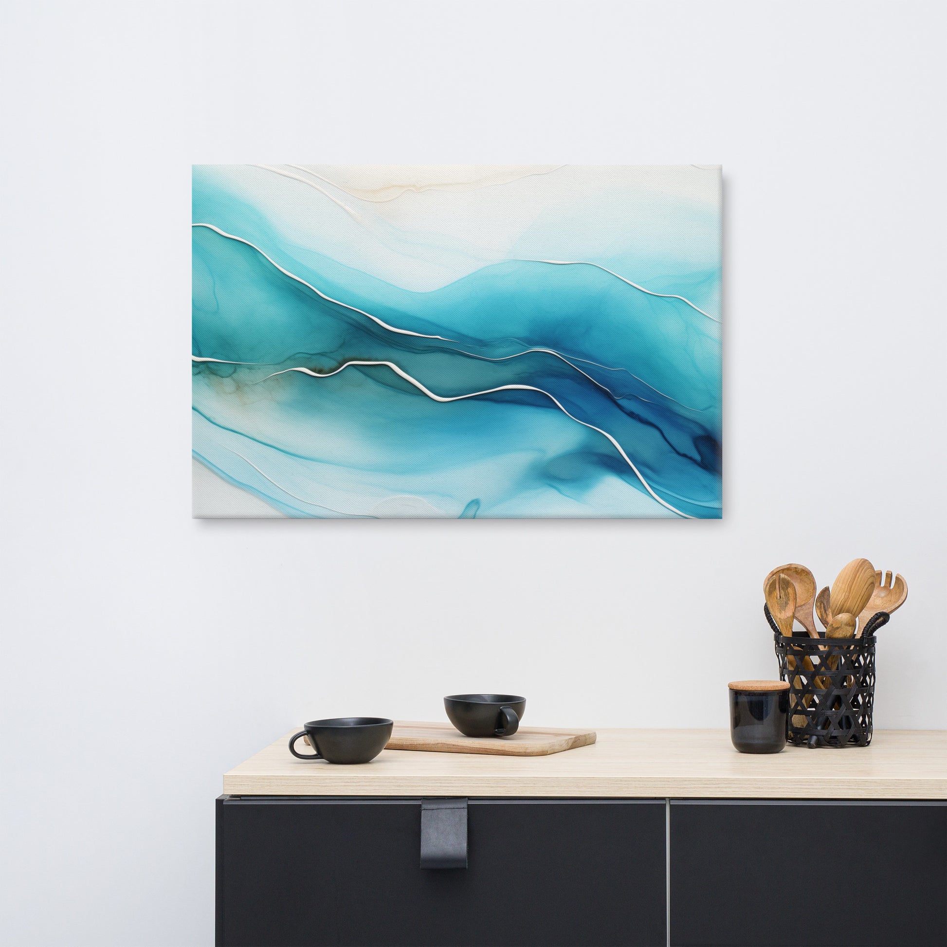 Abstract Wall Art: "Sapphire Serenity Alcohol Ink Fluid Art" - Minimal Canvas Print
