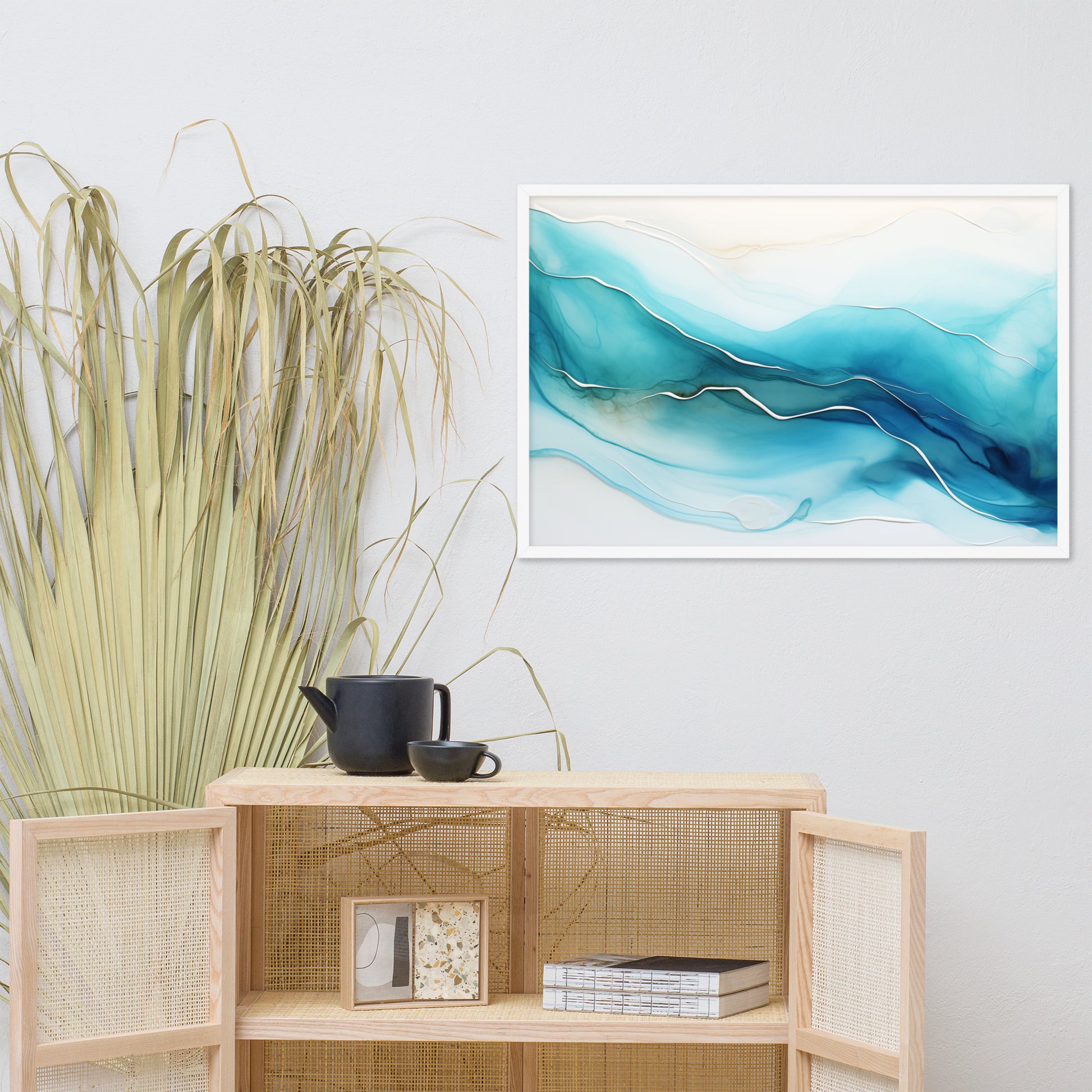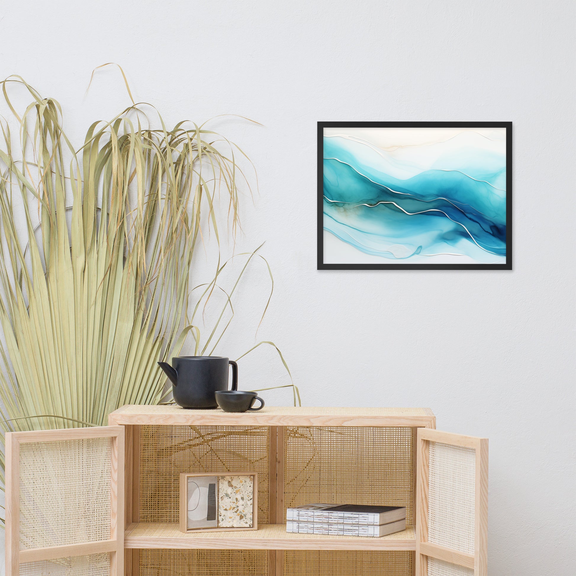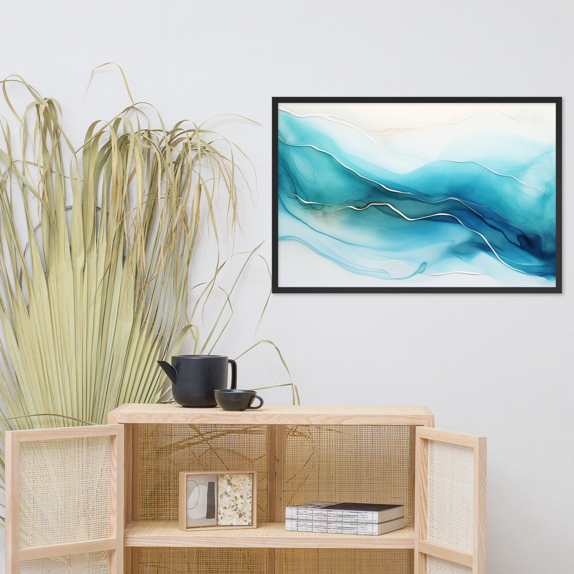 Indulge in the soothing embrace of "Sapphire Serenity" and elevate your space with this exquisite framed wall art print.
