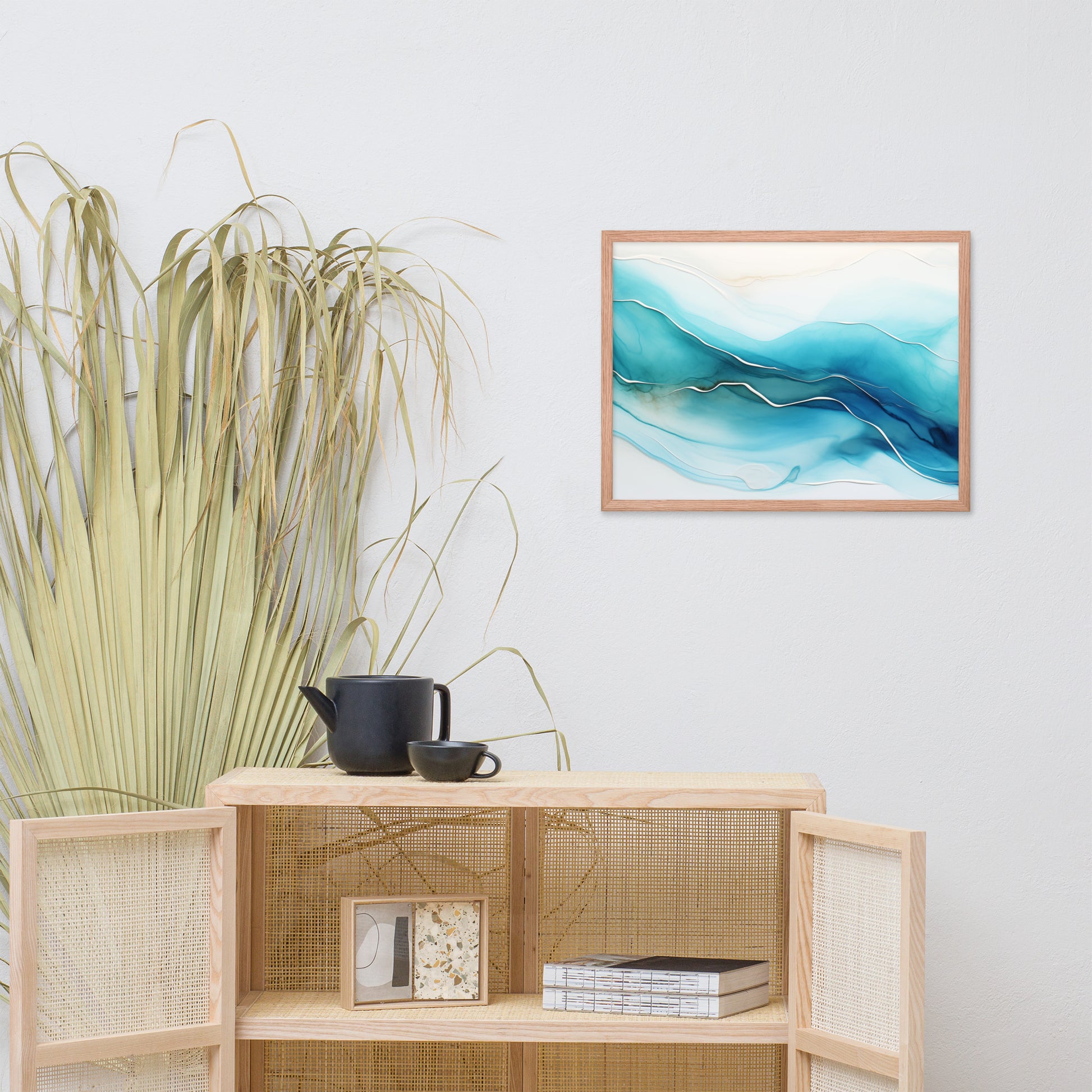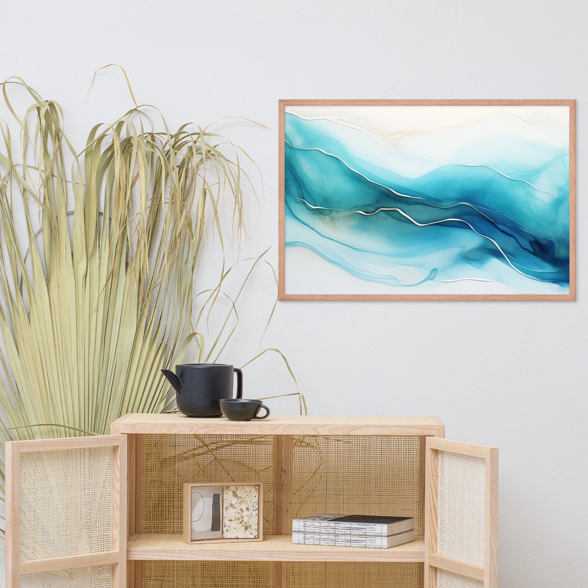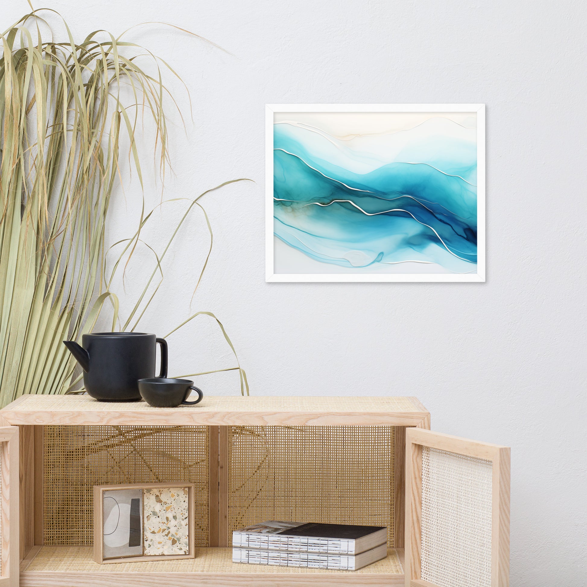 Indulge in the soothing embrace of "Sapphire Serenity" and elevate your space with this exquisite framed wall art print.