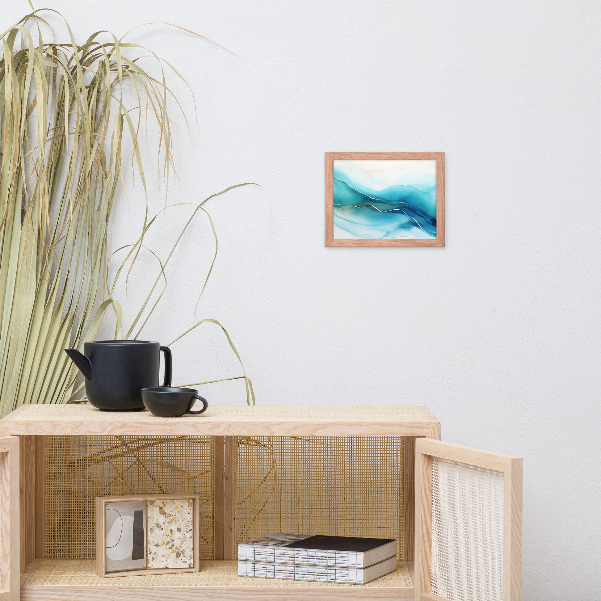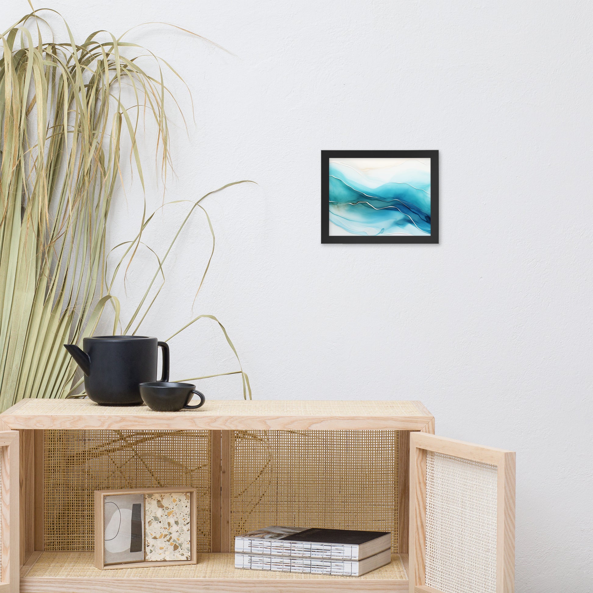 Framed Abstract Art: "Sapphire Serenity" Alcohol Ink Fluid Art Minimal Print