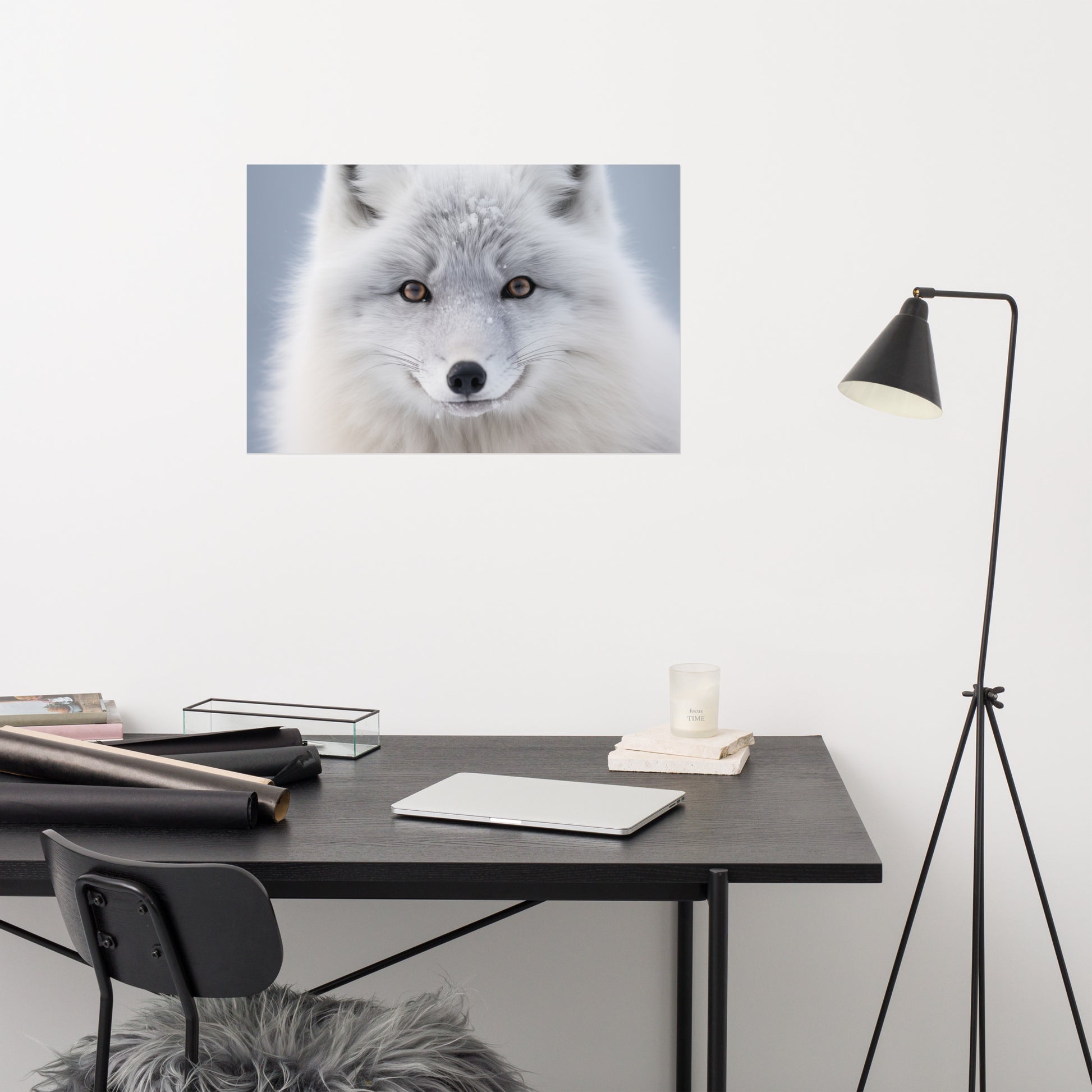This stunning, digitally created artwork captures the captivating gaze of an Arctic Fox in its pristine winter coat. The artist's meticulous attention to detail brings to life the fox's thick, fluffy fur, expressive eyes, and gentle smile. The subtle hints of snowflakes dusting its coat add a touch of realism and wintery charm. Printed on high-quality photo paper with premium ink, this art print will add a touch of elegance and tranquility to any room in your home.
