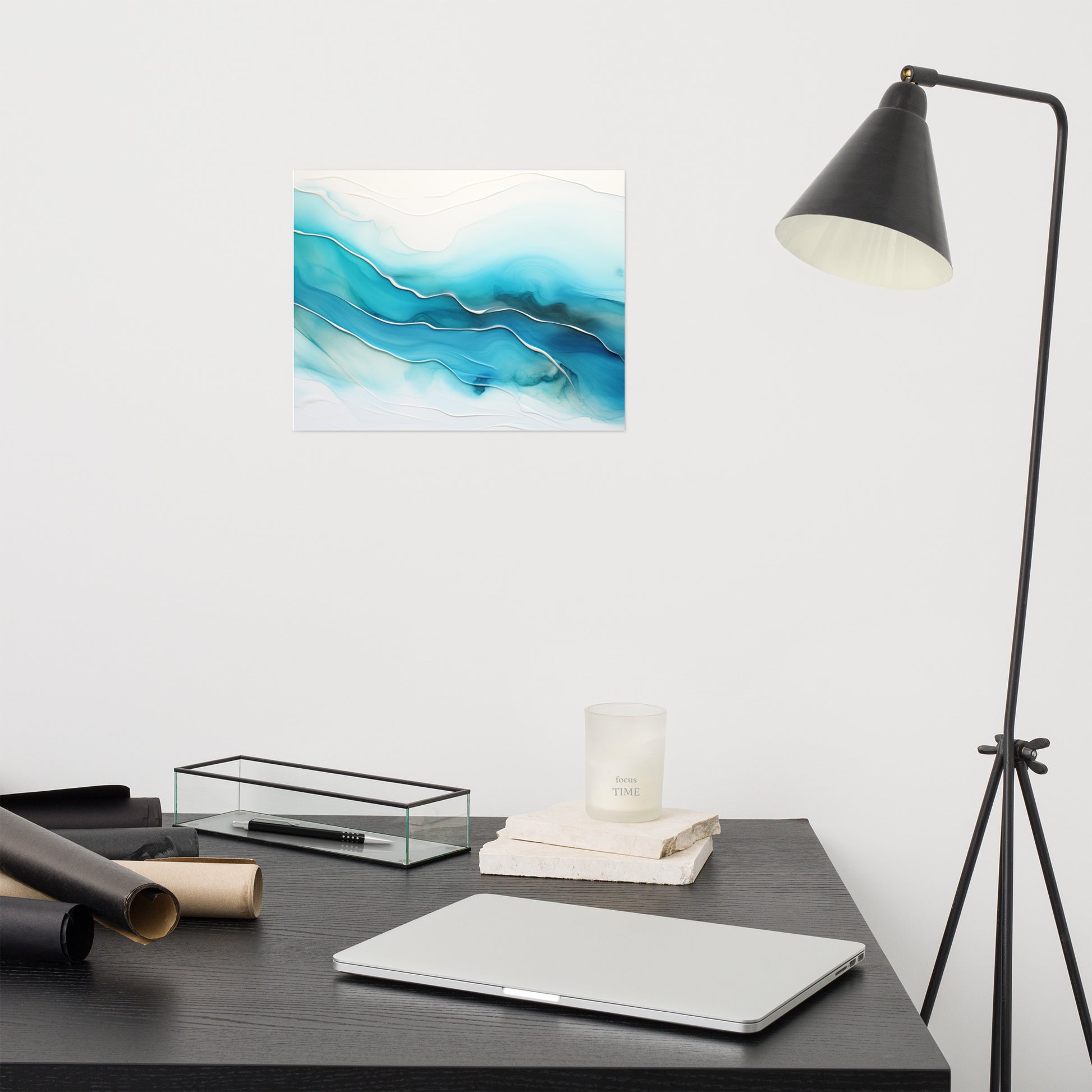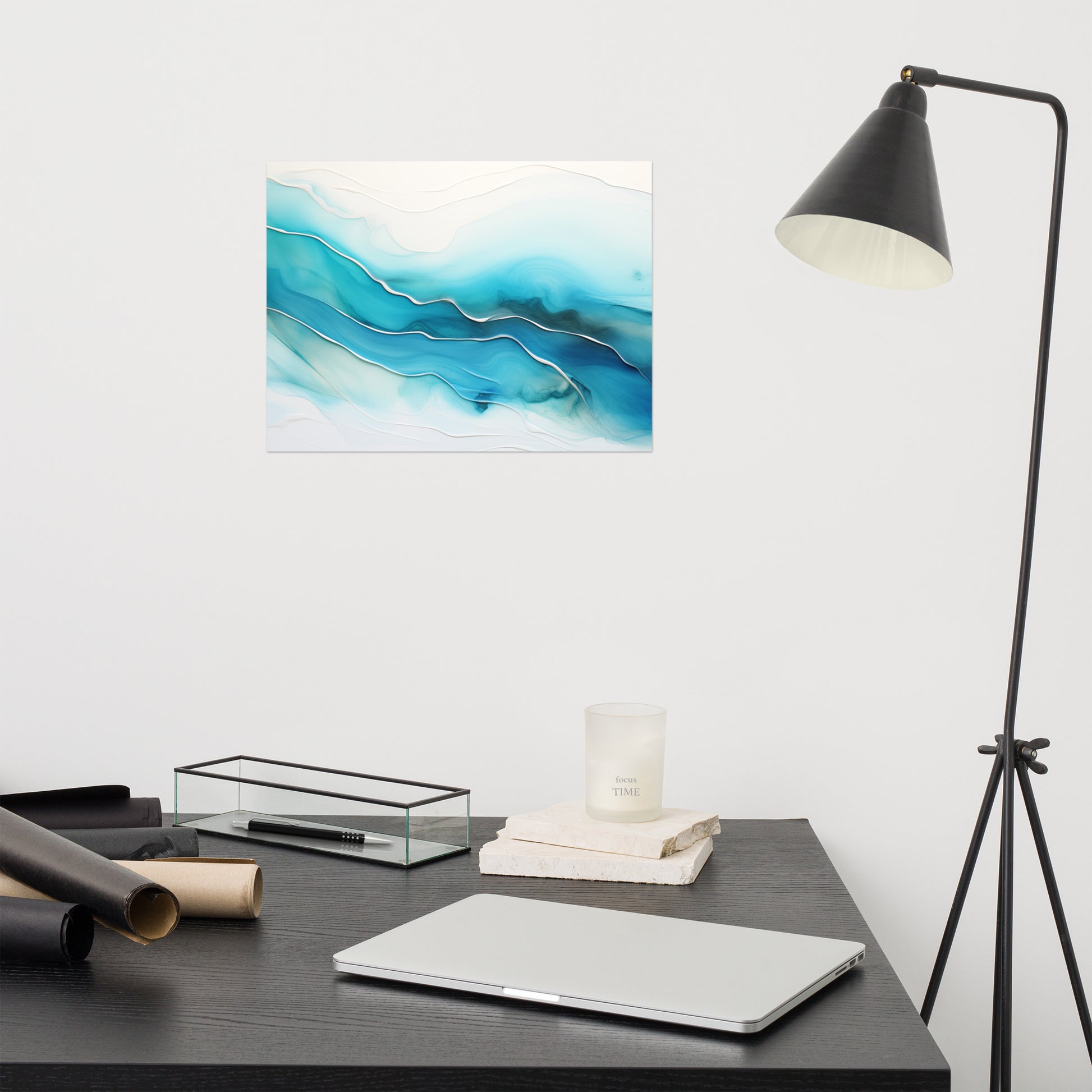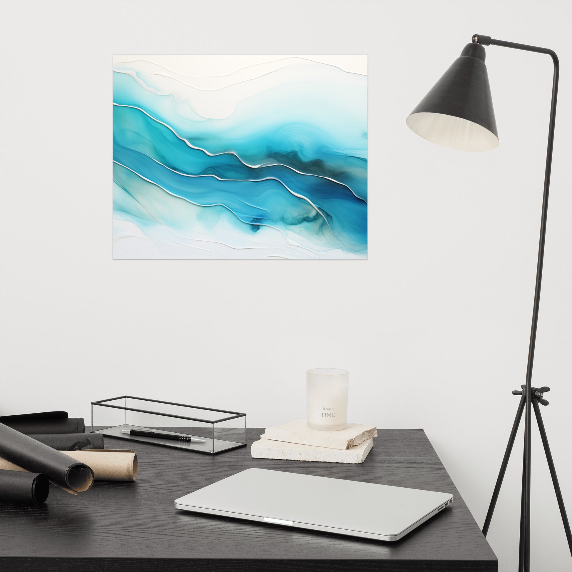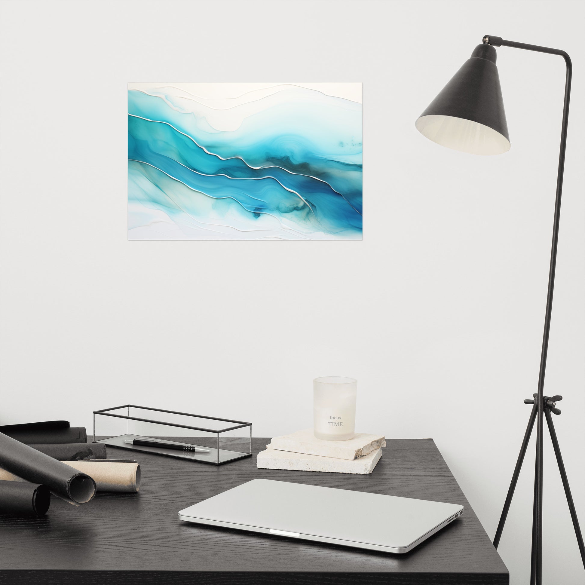 Printed on high-quality photo paper, this unframed artwork effortlessly enhances any living space. Hang it in your living room to create a serene and inviting atmosphere, adorn your bedroom with a touch of tranquil elegance, or add a calming presence to your office space. The versatility of "Azure Currents" also makes it suitable for dining rooms, bathrooms, and beyond.