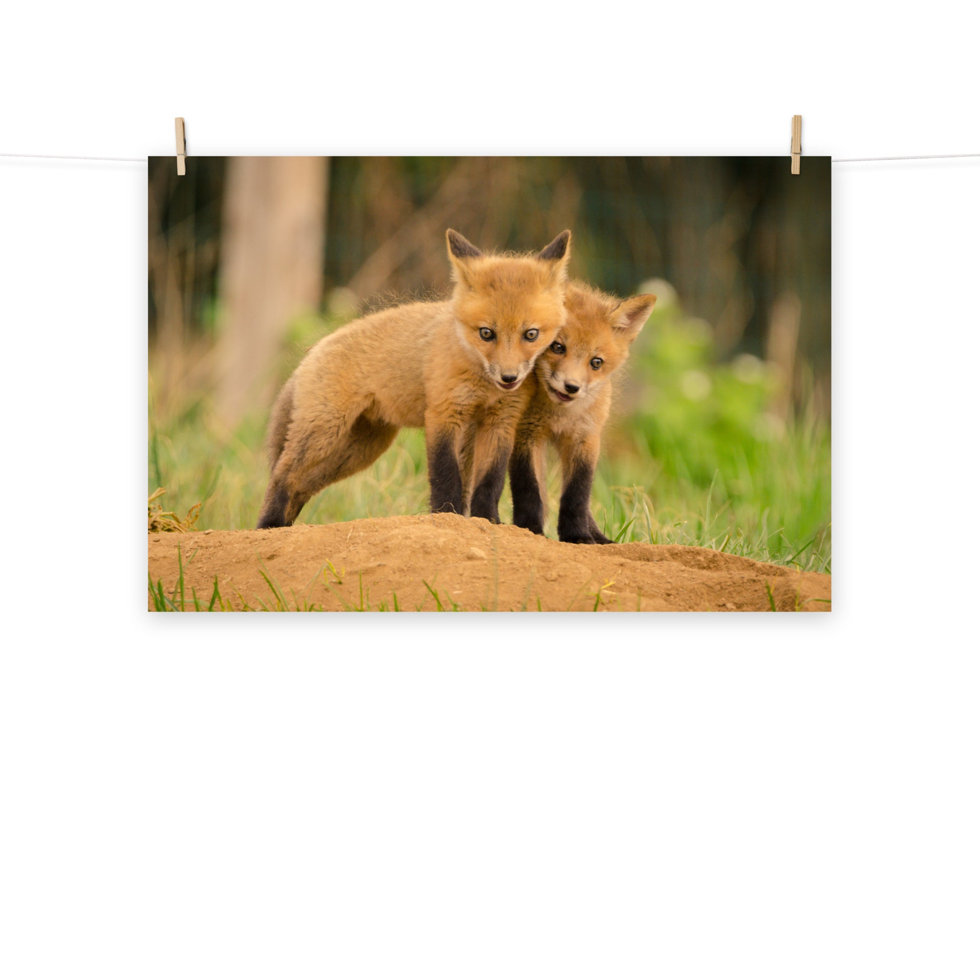 About this country wall decoration: Bring the heartwarming charm of nature into your child's space with this captivating photograph of two baby red foxes sharing a tender moment. This piece is more than wall art; it's a conversation starter, an invitation to explore the beauty of wildlife, and a reminder of the importance of connection.