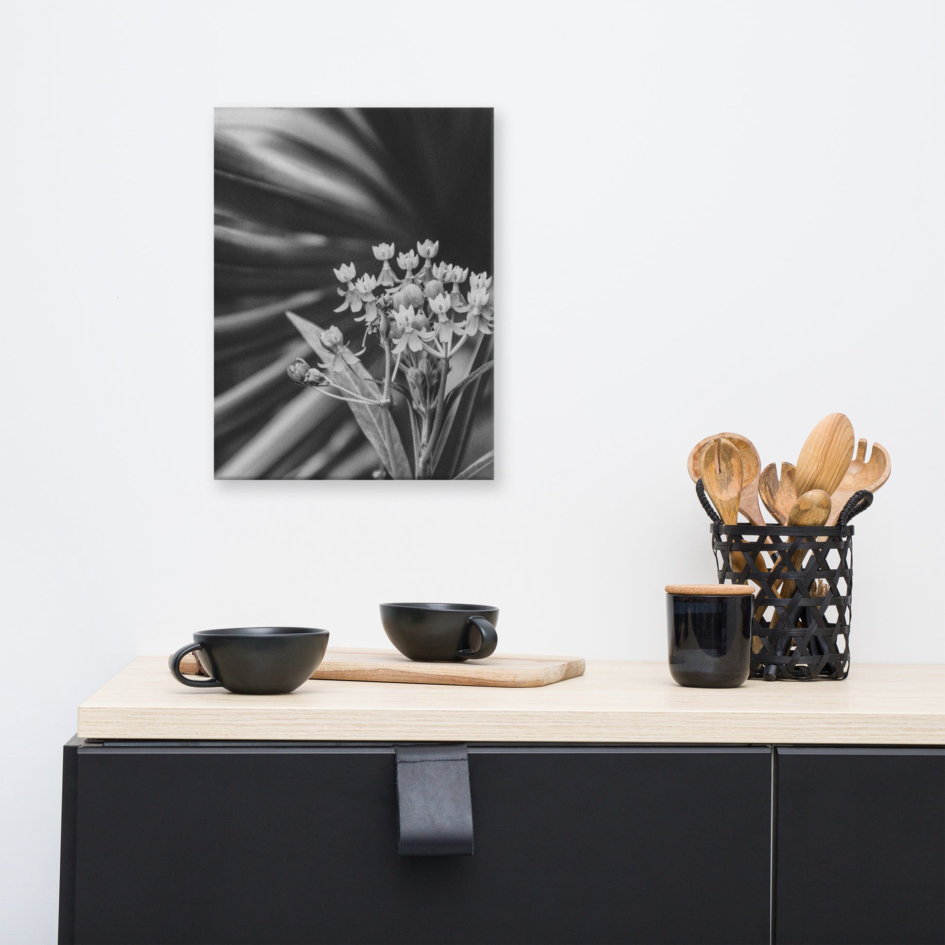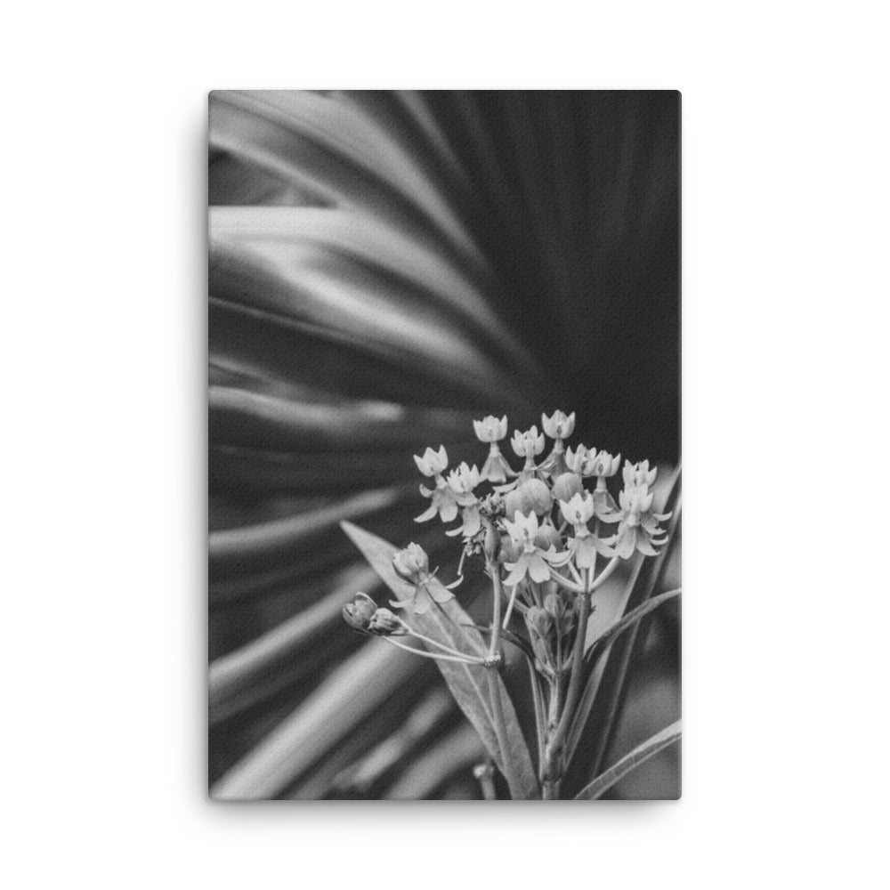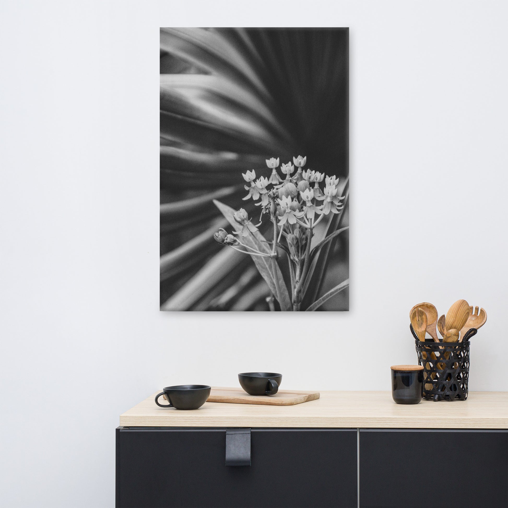 Bloodflowers and Palm Black and White Floral Botanical Nature Photograph Canvas Wall Art Prints