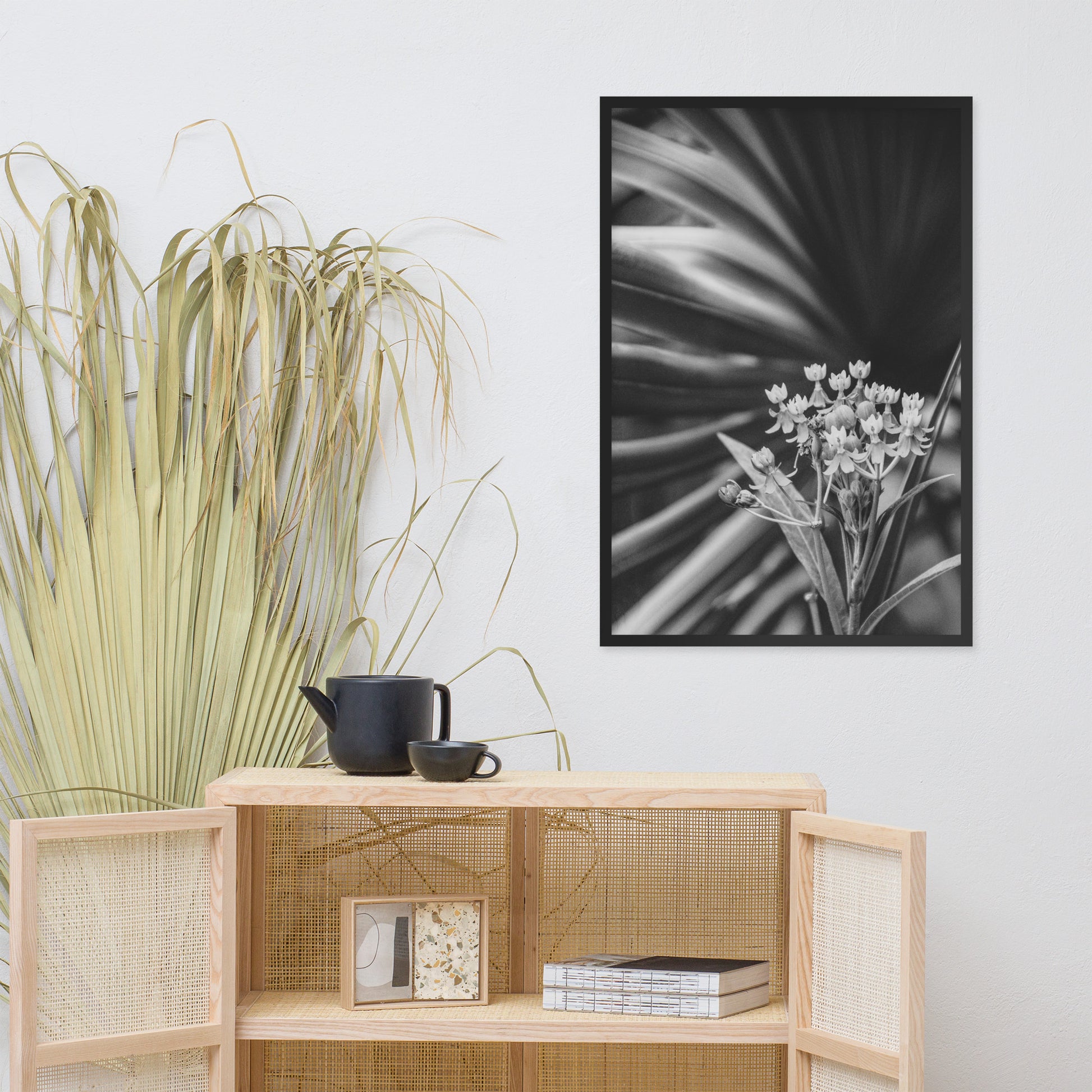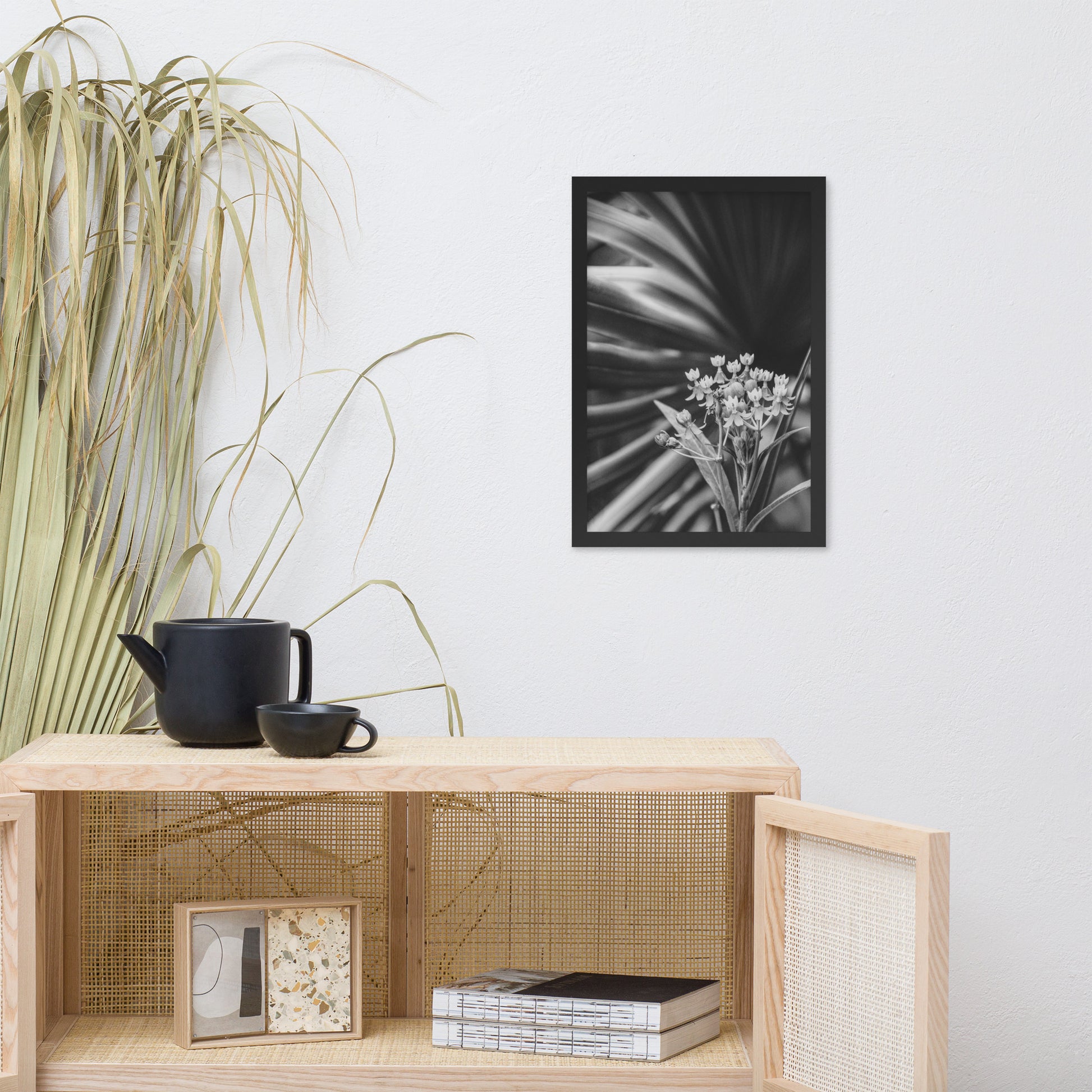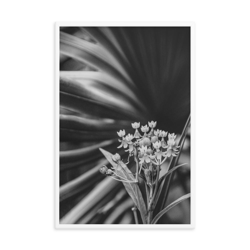 Bloodflowers and Palm Black and White Framed Wall Art Print